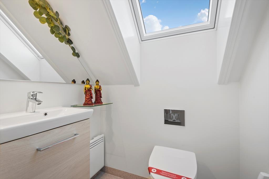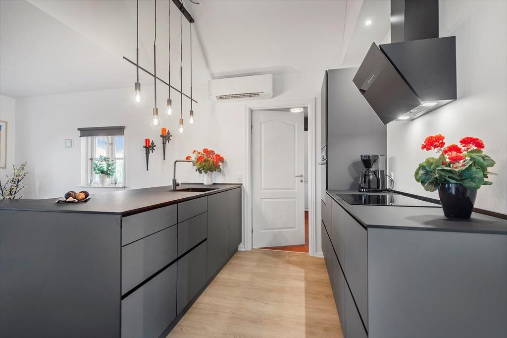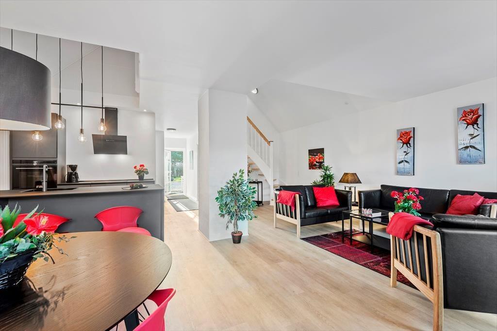 Takket være den charmerende arkitektur, der vækker minder om svensk skærgårdsidyl, emmer huset af ro og hygge. Den rare atmosfære kan mærkes, så snart I ankommer til huset og står foran den kønne træfacade – og inden døre er stemningen også helt i top. Her kan I folde ferielivet ud på 120 m2 fordelt på to plan, og planløsningen er perfekt afstemt til seks feriegæster med tre soveværelser, et badeværelse og en stor stue med åbent køkken. Hvis I gerne vil holde ferie udenfor sommersæsonen, er det rart, at huset er helårsisoleret. Det samme kan siges om badeværelsets spabad og sauna, for efter en feriedag ude i den friske luft, føles det velgørende med et varmt bad og en saunatur.