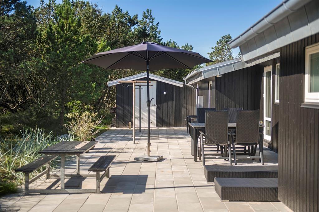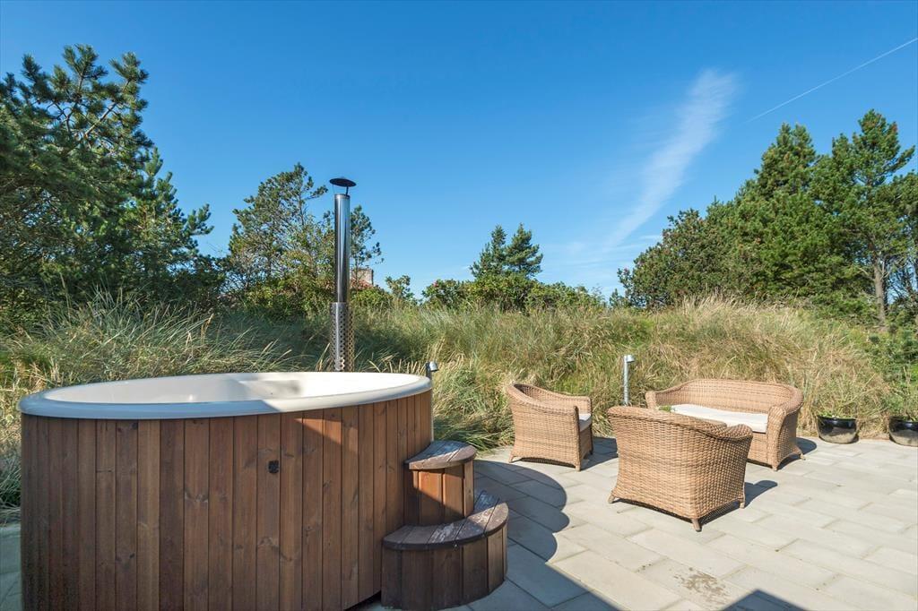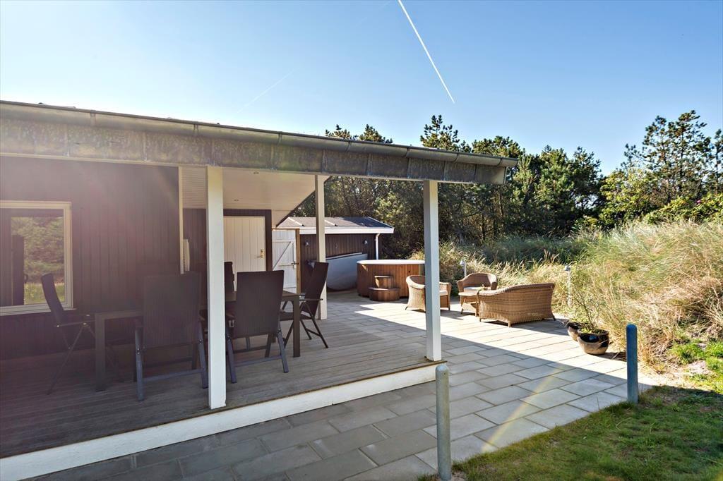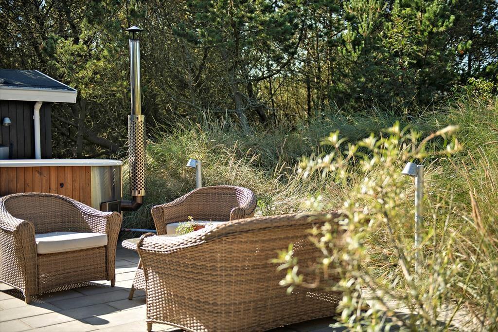 På Gl. Hovej bor I i fredelige og naturskønne omgivelser tæt på den åbne klithede, tætte plantager og nogle af de dejligste strande langs den jyske vestkyst. I har halvanden kilometer til Hvidbjerg Strand, som er et godt valg for både børnefamilier og windsurfere, og I har også nem adgang til halvøen Skallingen, der hører med til Nationalpark Vadehavet. Fra sommerhuset har I kort gåafstand til Tirpitz-museet og til Blåvand Zoo, og der er blot et par kilometer ind til Blåvands bymidte, der har et godt udvalg af helårsåbne butikker og spisesteder.