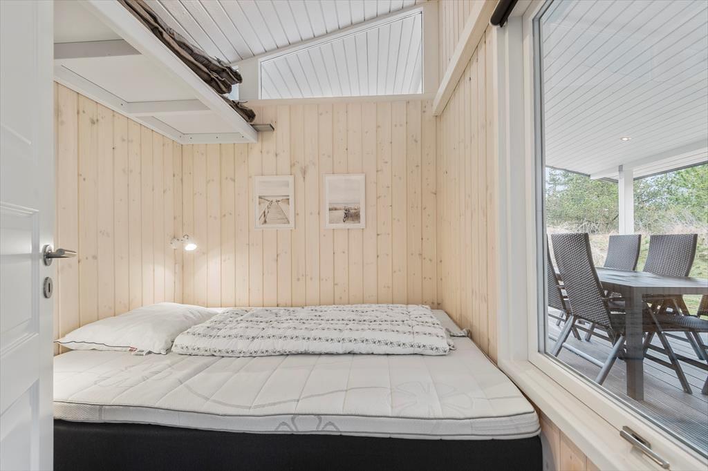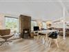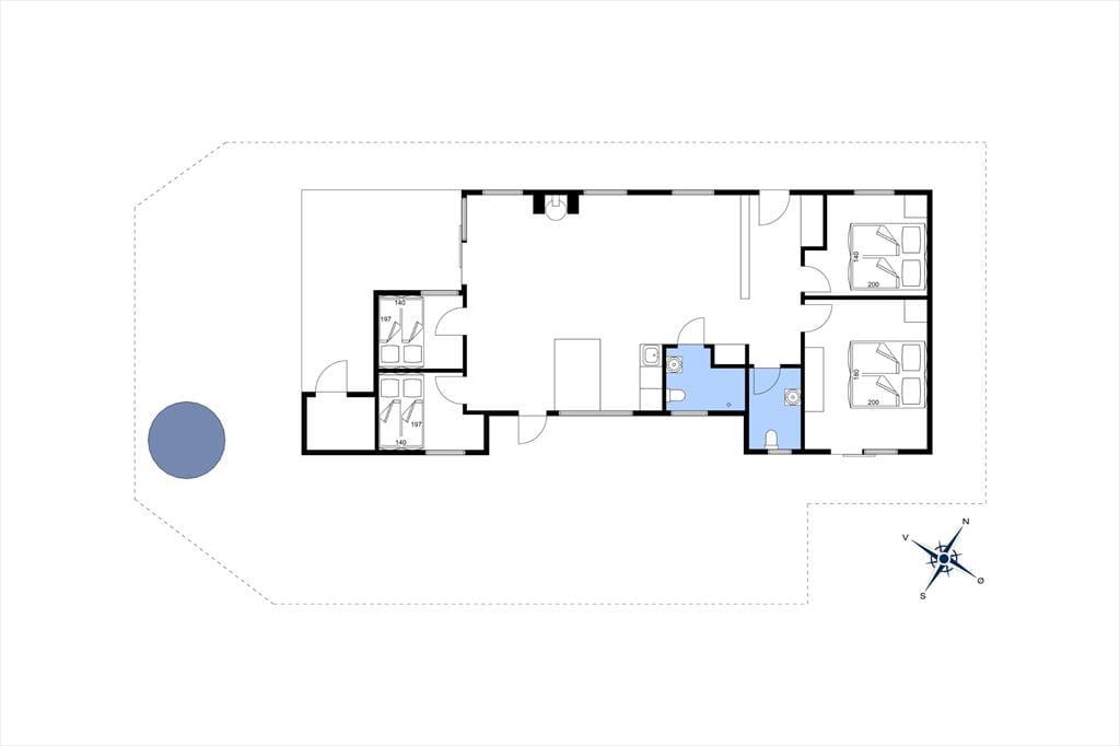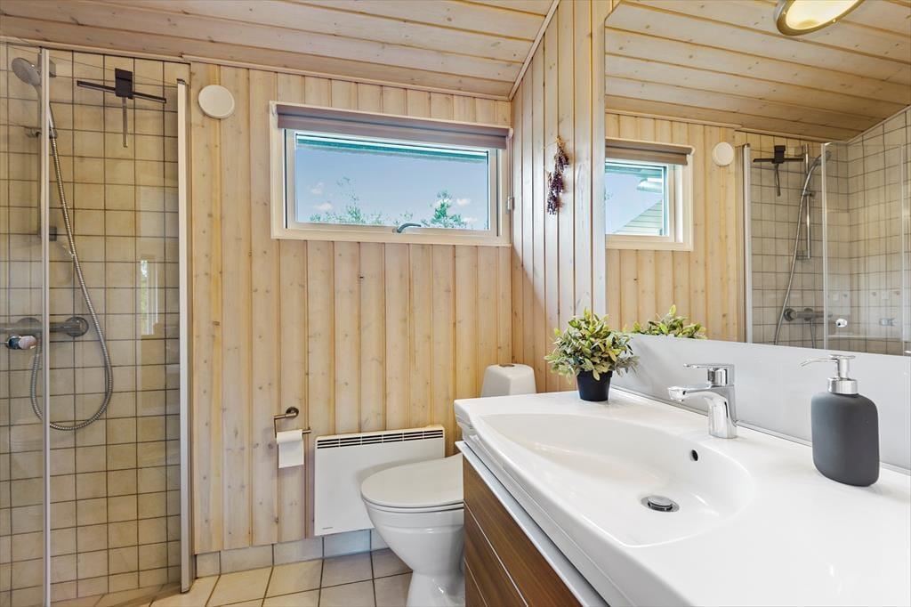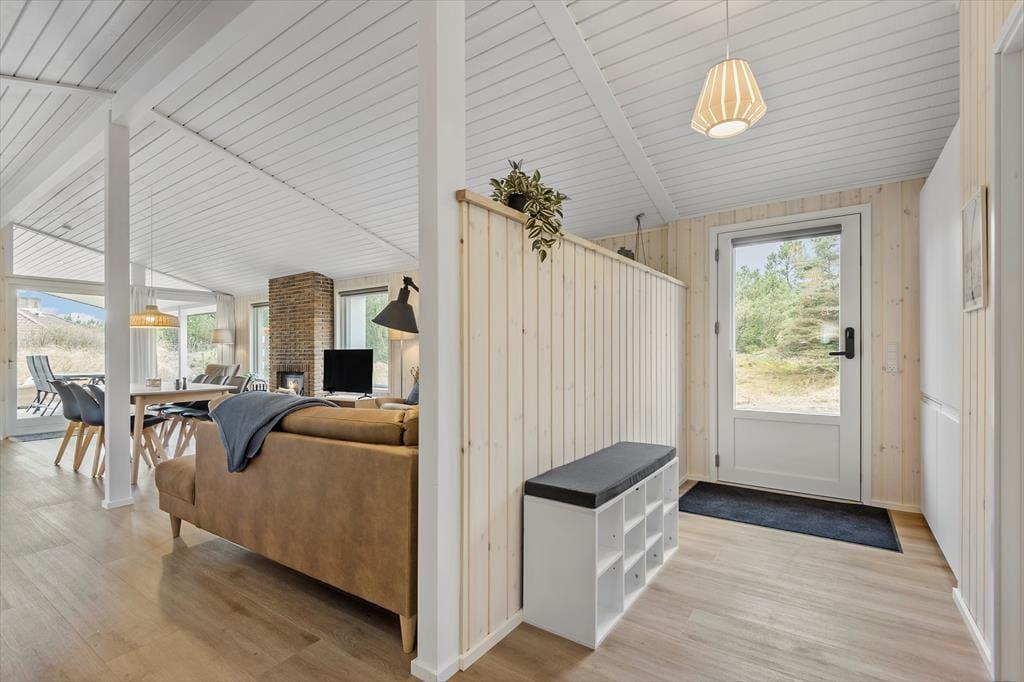Sommerhuset er ikke bare blevet renoveret, men også tilbygget i 2023, så der nu er 102 flotte kvadratmeter at brede ferielivet ud på. Blandt andet kan I se frem til at kokkerere i et lækkert køkken med stilfuldt interiør og gode hvidevarer – og det er for øvrigt godt integreret med stuen, så I kan hyggesnakke med resten af selskabet, selvom der skal røres i gryderne. En af de klassiske detaljer, der er bevaret i stuen, er indbygningspejsen, så I kan nyde varmen og skæret fra flammerne, når I slapper af i sofaen. Fladskærms-tv’et står klar til at levere underholdningen, hvis ikke I bare laderne tankerne flyve, mens I kigger ud på naturgrunden gennem stuens store vinduer. De fire soveværelser, der alle er udstyret med dobbeltseng, er fordelt i begge ender af huset, og planløsningen fuldendes af et brusebadeværelse og et gæstetoilet.