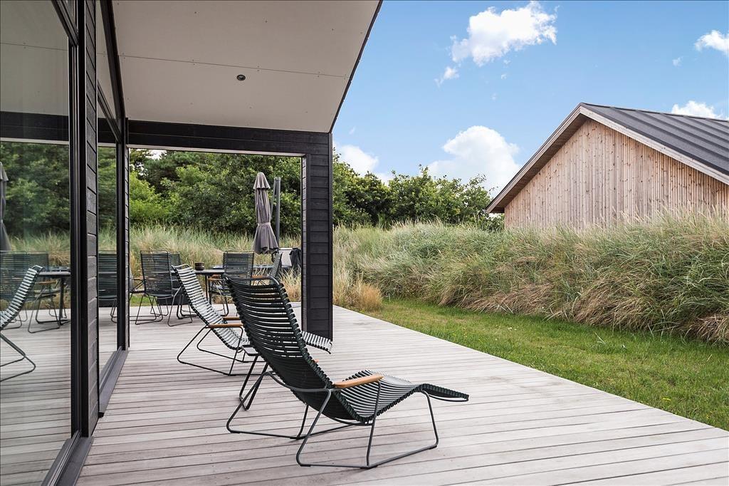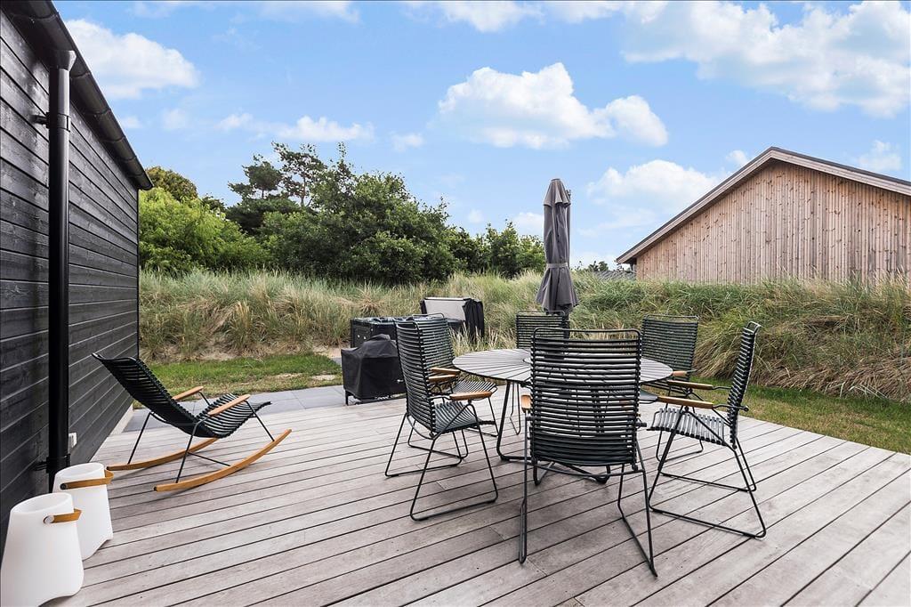 Skinner solen over den jyske vestkyst, er det ingen sag at flytte livsnydertilværelsen ud i det fri. Her kan I grille, solbade og i det hele taget hygge jer på de skønne, delvist overdækkede terrasser, der ligger både syd og vest for huset. Foran sommerhuset har I god plads til at parkere, og på grunden er der et mindre græsareal til leg og havespil.