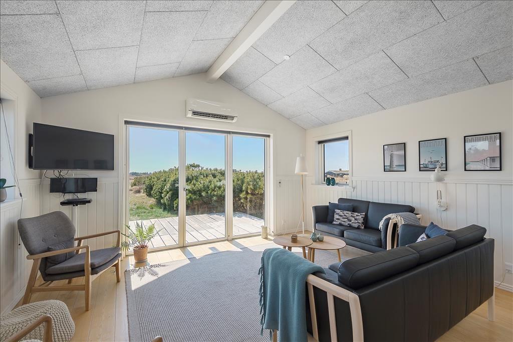 Den lyse indretning, de solrige terrasser og den herlige naturudsigt hører til fortræffelighederne ved dette sommerhus i Blåvand - og så er den korte afstand til stranden og bymidten selvfølgelig også med til at gøre det til et skønt sted at holde ferie.