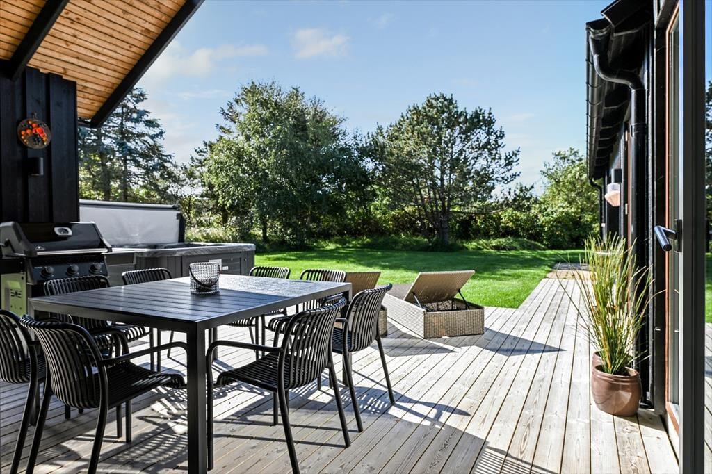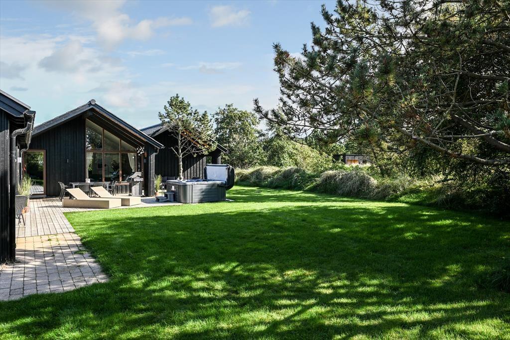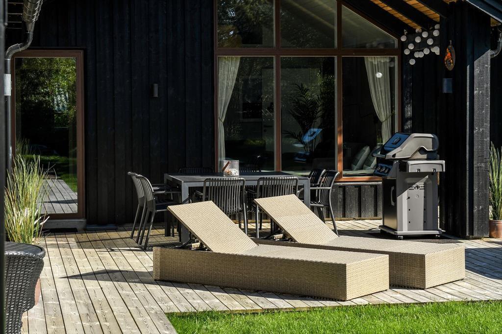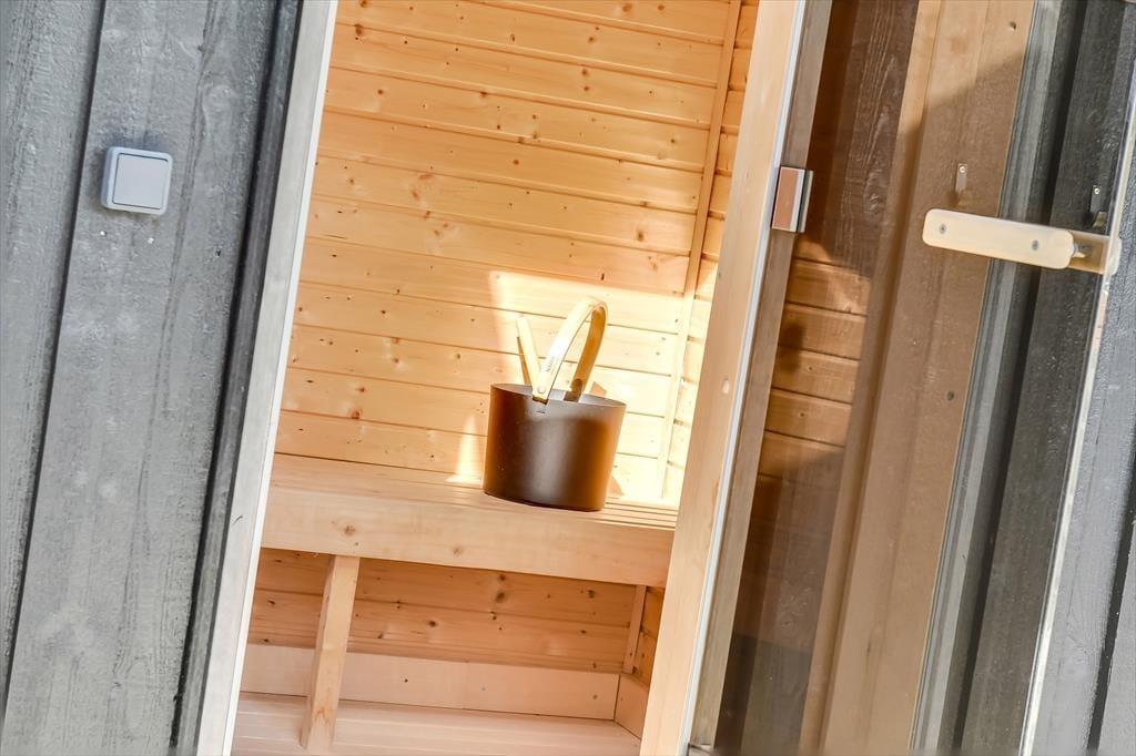 På den 1.562 m2 store grund kan I se frem til at nyde solskinstimerne og de lyse sommeraftner i fulde drag. På græsplænen er der god plads til at lege og spille bold, og de yngste børn har desuden både sandkasse og gynger at hygge sig med. Er I ikke i humør til havespil, men til solbadning eller grill, er det på terrassen, det foregår: Her har I både overdækkede og helt åbne opholdspladser at vælge imellem, og som prikken over i’et er der indrettet et rigtigt livsnyderhjørne med både udespa og sauna.