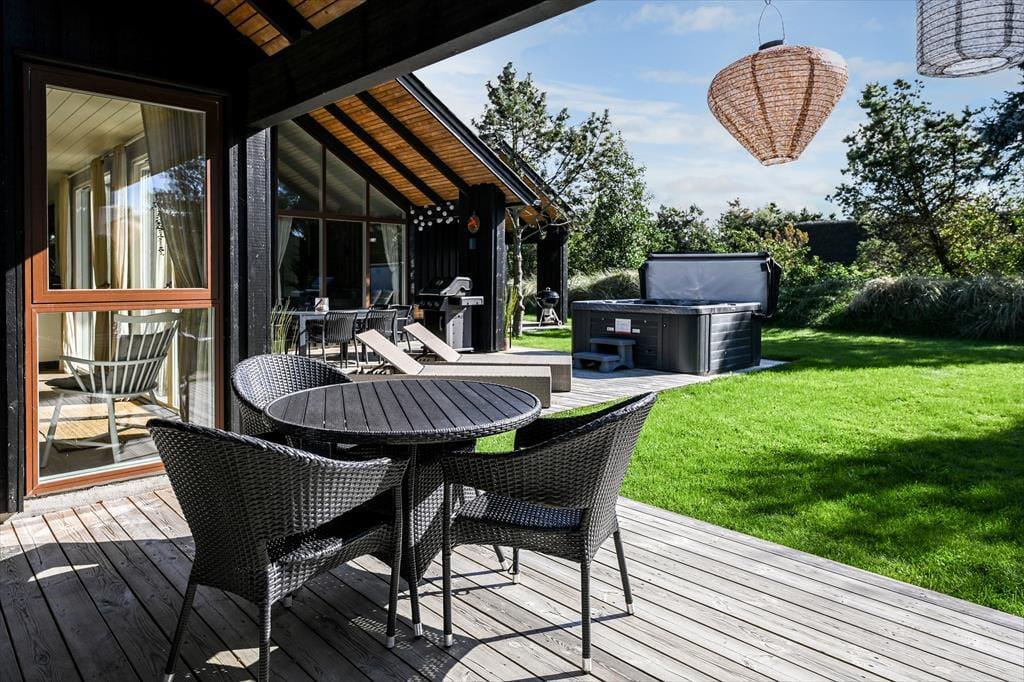 I får en lys og utroligt lækker ramme om ferielivet her på Sønder-Vasevej 44 midt i Blåvand. Her på adressen finder I nemlig dette velbyggede og smukt indrettede sommerhus fra 2021, der byder på en flot opholdsafdeling, fire gode soveværelser og endda et udendørs wellness-område med spa og sauna.