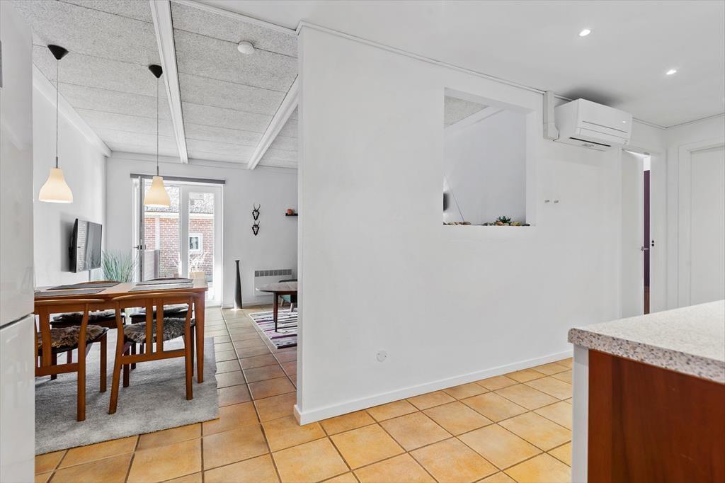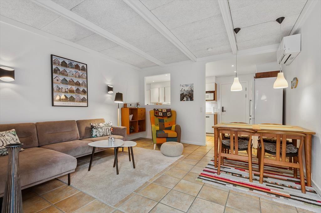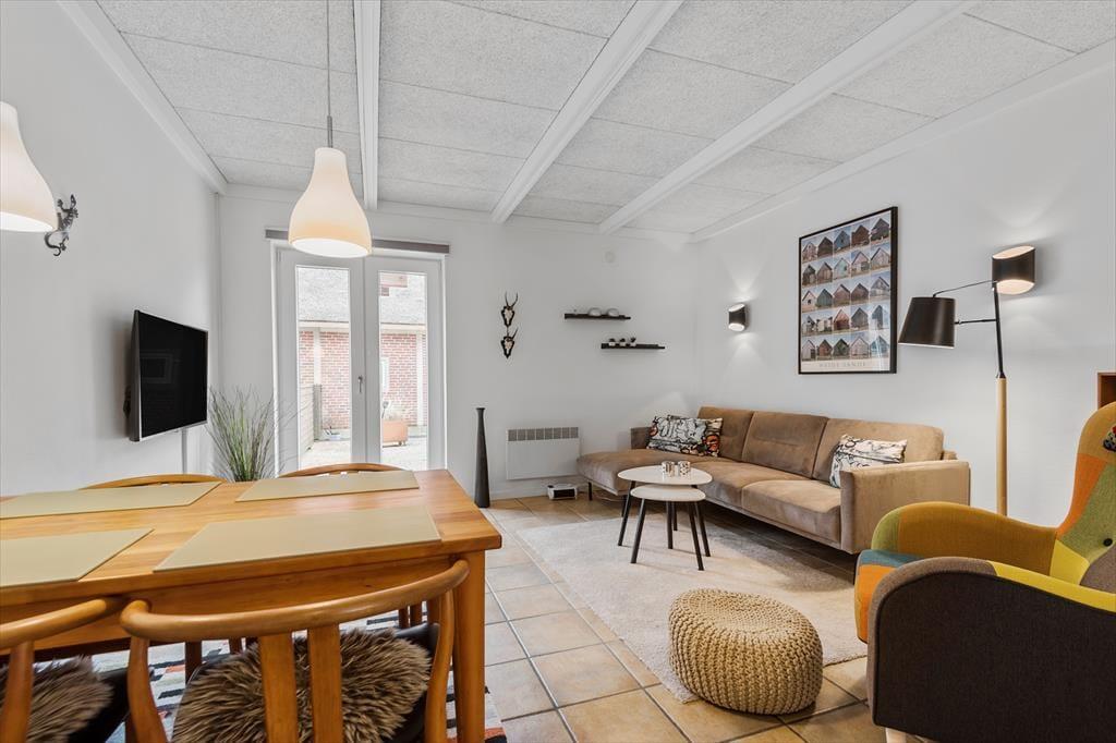 Lejligheden ligger i en køn murstensejendom med stråtag, der passer godt ind i Blåvands hyggelige gadebillede. Inden døre har I 66 m2 at gøre godt med, der blandt andet består af to soveværelser med dobbeltseng og et badeværelse med bruser og gulvvarme. Et køkken er her selvfølgelig også, og det ligger i åben forbindelse med stuen, så madlavningen kan foregå side om side med feriens øvrige hyggeaktiviteter. I stuen kan I samles omkring spisebordet eller slappe af i sofaen – og når vejret er godt, kan I åbne terrassedøren og træde lige ud i solgården.