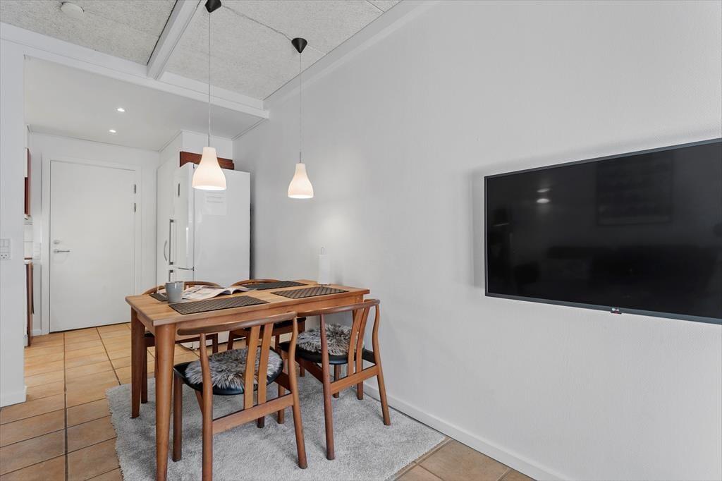Solgården er lukket, så det er en skøn og rolig oase. Med havemøbler og liggestole kan I sidde komfortabelt eller ligefrem få en middagslur ude i det fri, og der er også mulighed for at grille her på terrassen. Har I børn med på ferie, er det skønt at have en god legeplads i bebyggelsen meget tæt på lejligheden.