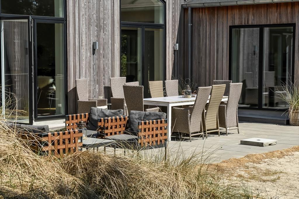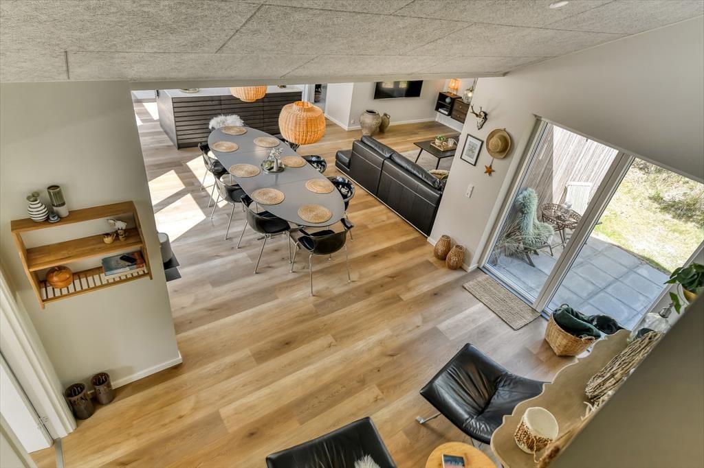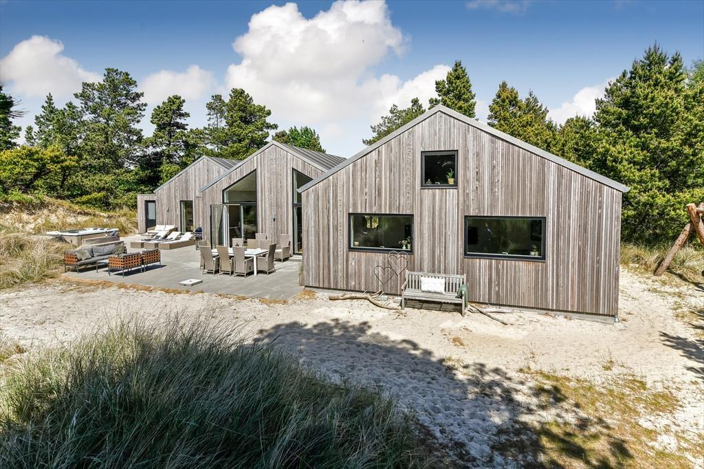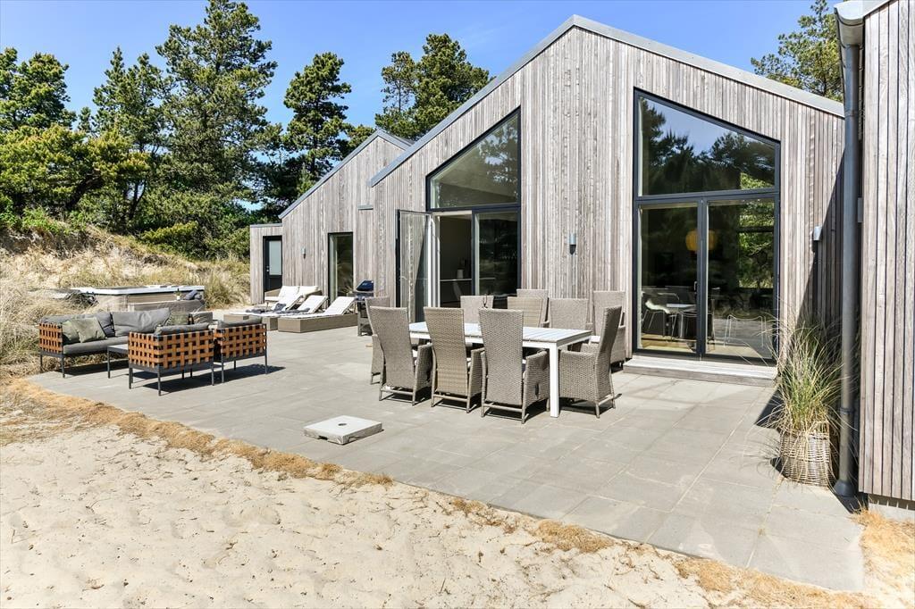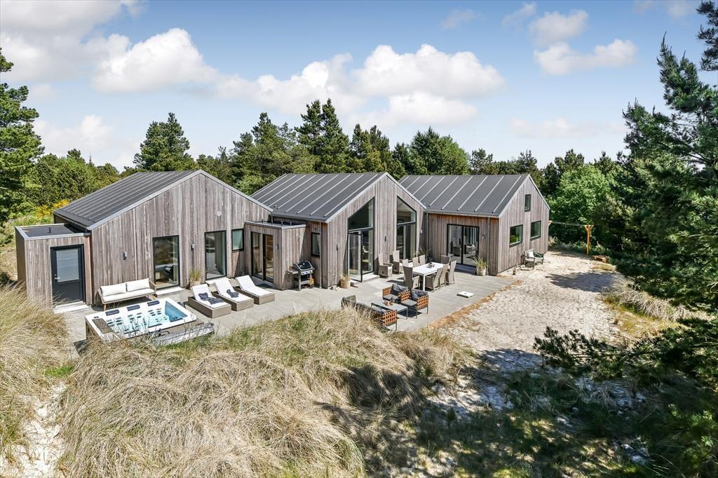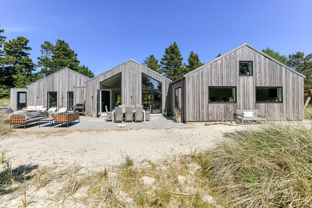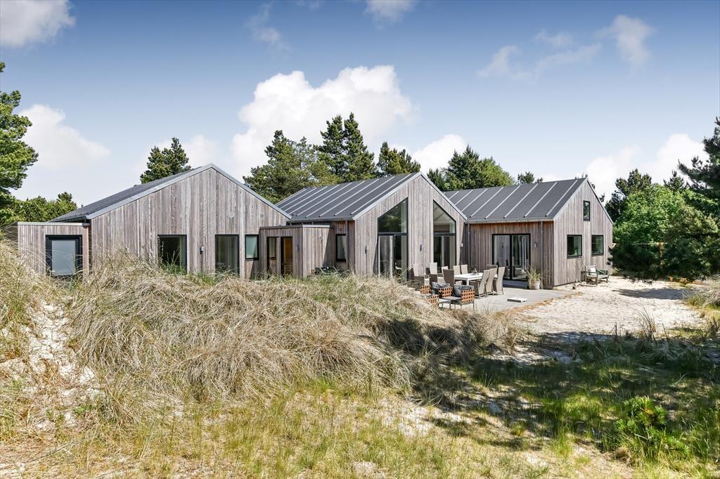 På en bakketop midt imellem Blåvands bymidte og Vesterhavet ligger dette store, smukke sommerhus. Det er en drøm af en feriebolig, for både arkitekturen og indretningen er i særklasse, og med hele 202 m2 og en gennemtænkt planløsning kan huset nemt rumme 10 personer.