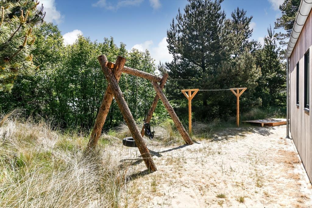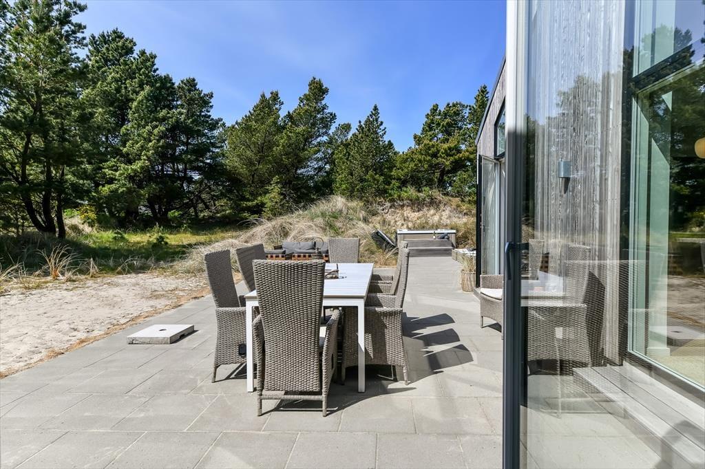 Den 2035 m2 store naturgrund, som sommerhuset er placeret på, ligger dejligt ugeneret for enden af en stikvej til Pouls Bjerge. Med cirka 10 minutters gang til Hvidbjerg Strand, får I rig mulighed for at lege i sandet, surfe og bade i Vesterhavet på daglig basis – måske endda flere gange om dagen, hvis der er vandhunde i familien. Turen ind til Blåvands midte er cirka lige så lang, så hvis I er i humør til shopping og restaurantbesøg eller bare skal have købt ind, kan turen også foregå til fods. I har desuden nem adgang til Blåvand Zoo, Tirpitz og meget mere, så der er lagt op til en herlig ferie for store og små.