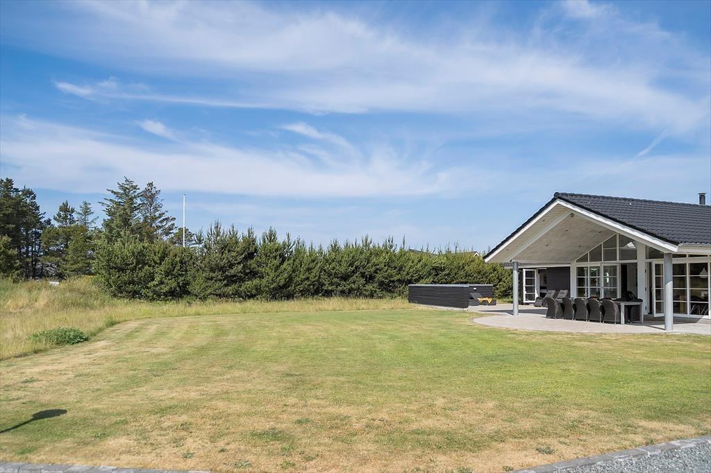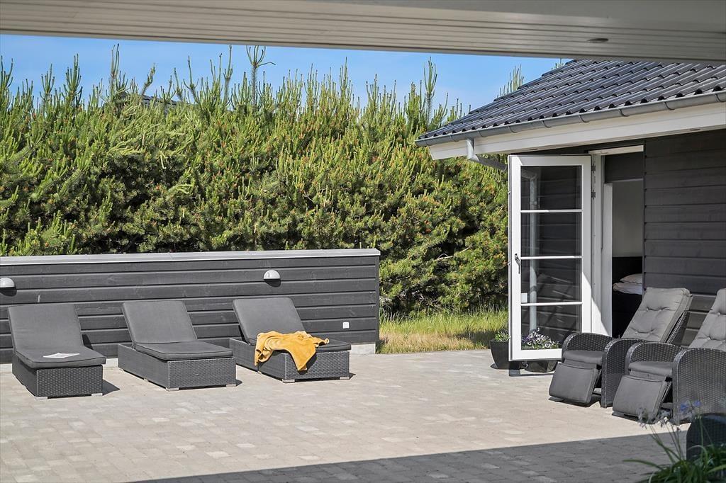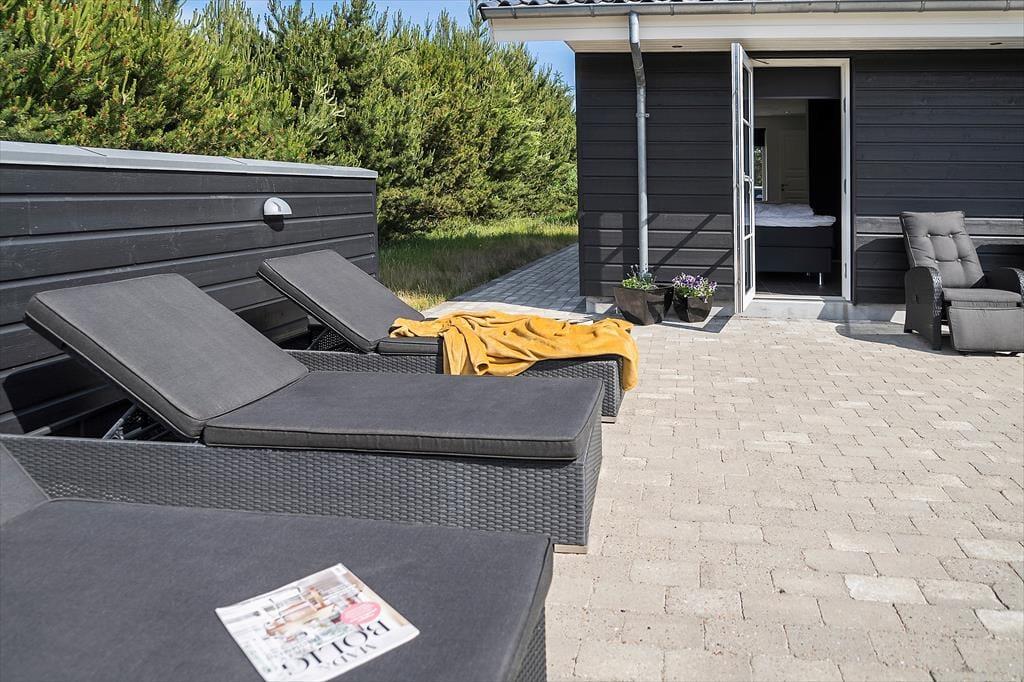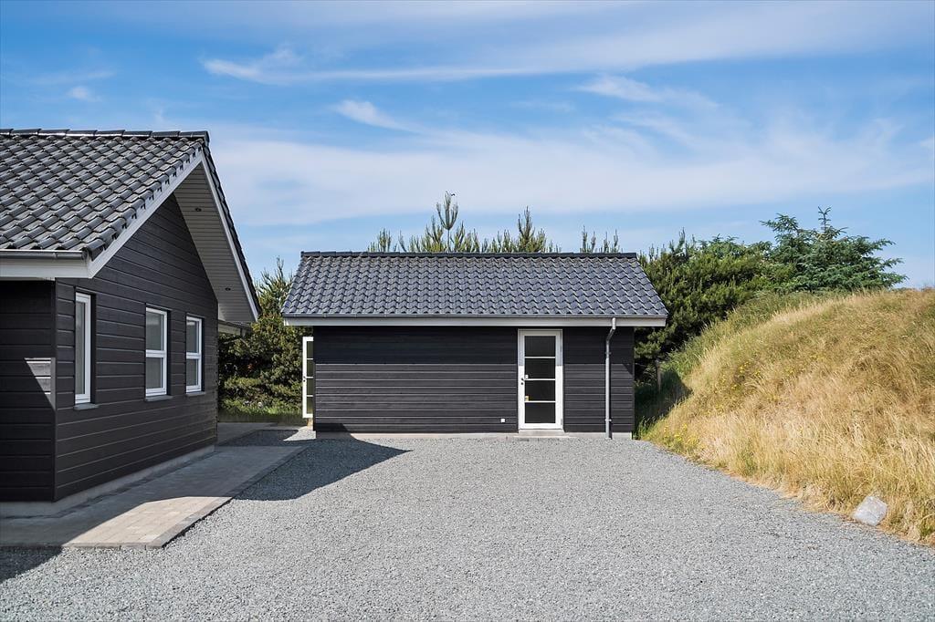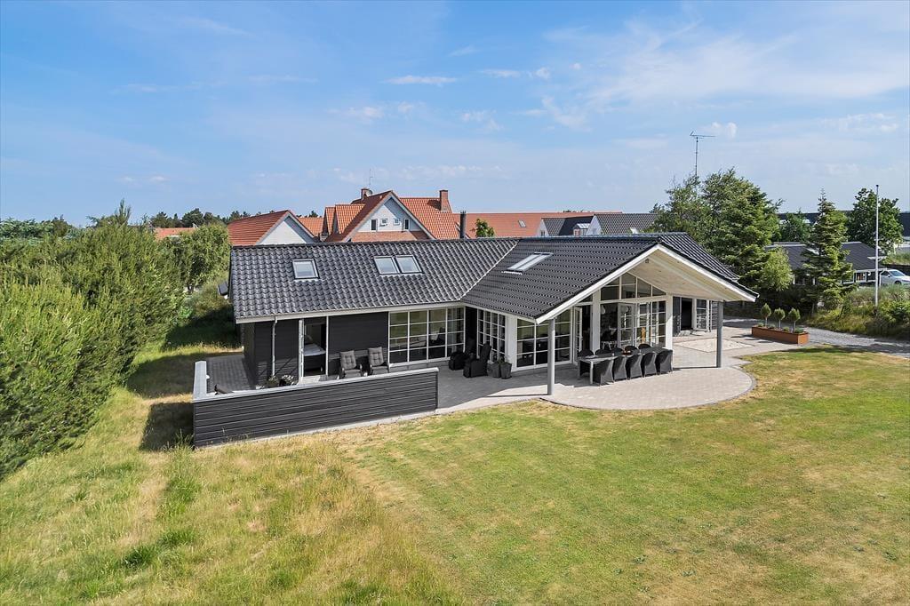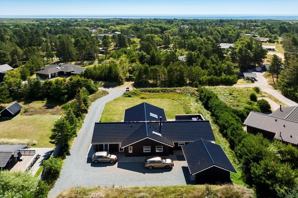 Dette moderne sommerhus fra 2016 ligger på en lille, lukket grusvej og samtidig helt centralt i Blåvand. Den smukke sandstrand har I desuden kort gåafstand til – men der er nu også god grund til at nyde livet hjemme i sommerhuset, der byder på både wellnessfaciliteter og aktivitetsrum.