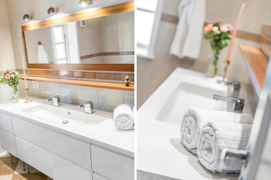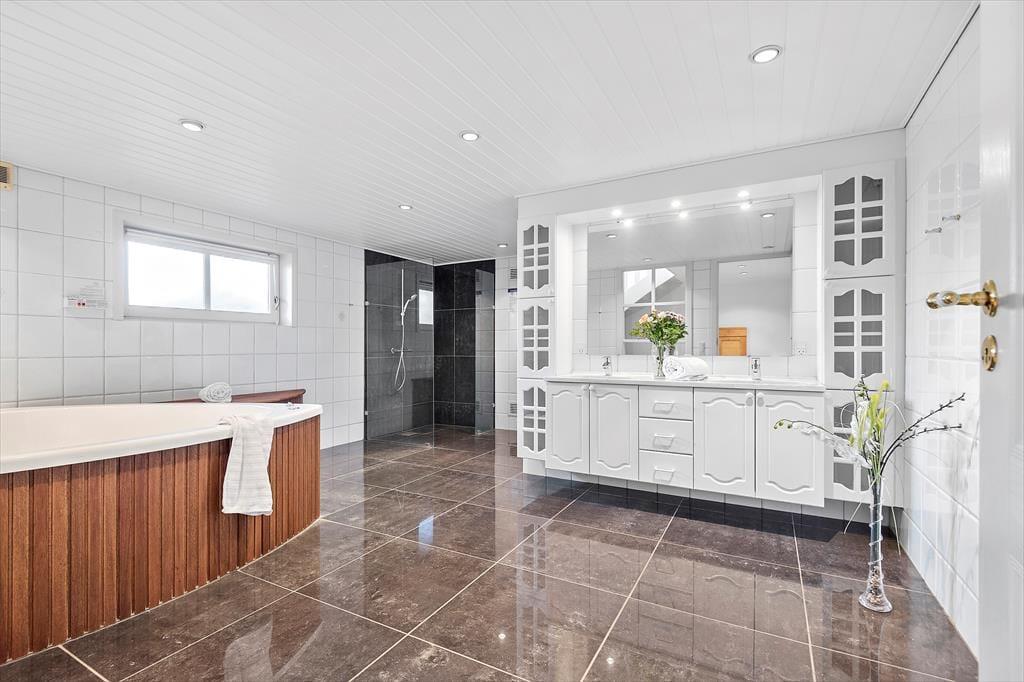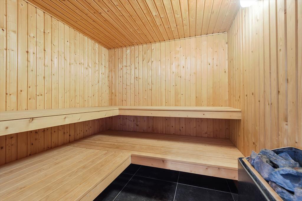 Afslapningsstunderne kan også foregå i underetagen, hvor I finder et lækkert wellness-rum med flot spabad og sauna. Underetagen byder desuden på et praktisk bryggers med vaskefaciliteter samt en garage.