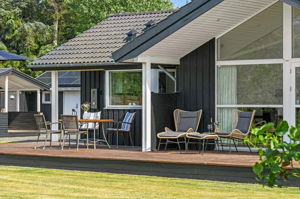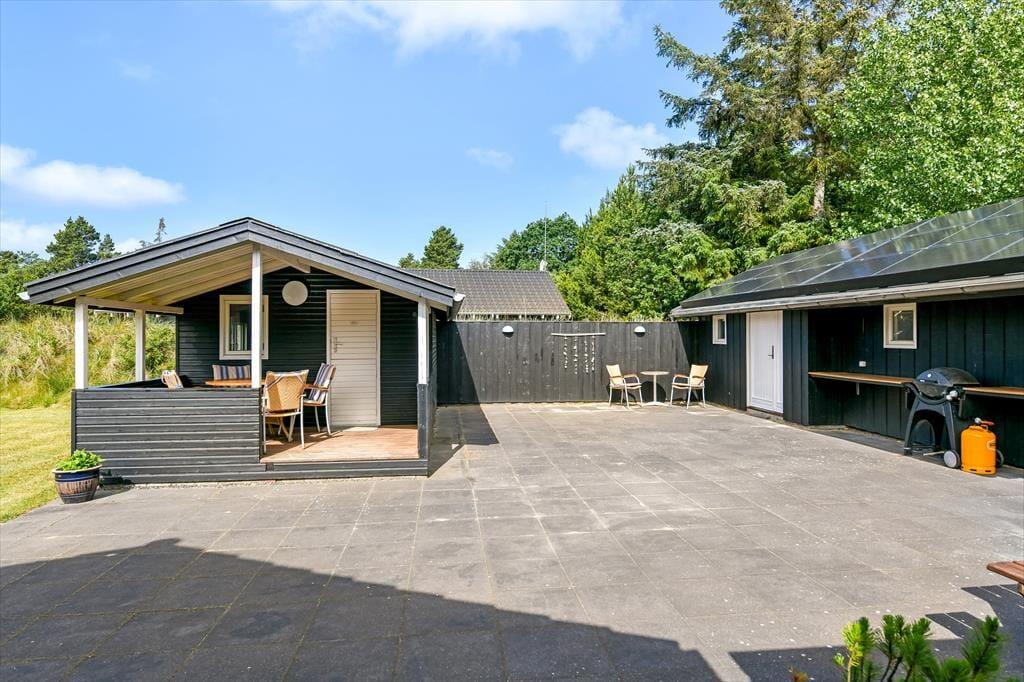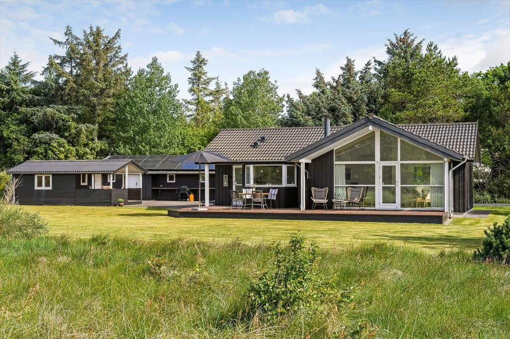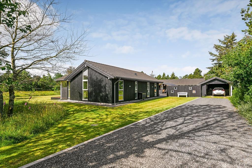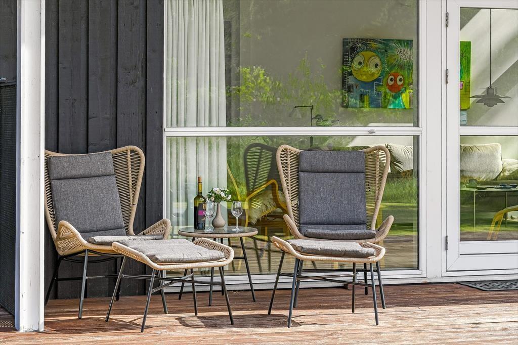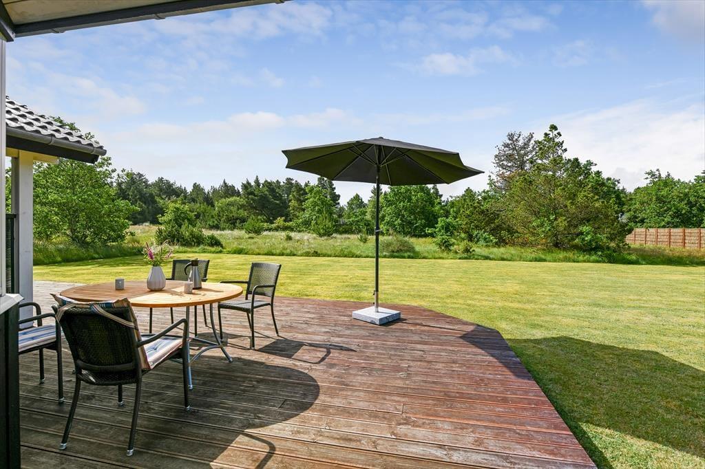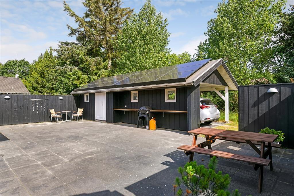 Med en kæmpe naturgrund på 4239 m2 er der masser af plads til at spille bold og lege ude i det fri. Det er også fristende at sole sig i en liggestol eller at samles på terrassen for at grille – og mon ikke der nok skal være tid til det hele, når det endelig er ferie? En delvist overdækket træterrasse ligger syd for sommerhuset, og mod vest har I et stort fliseareal, der skærmes af carporten og et anneks.