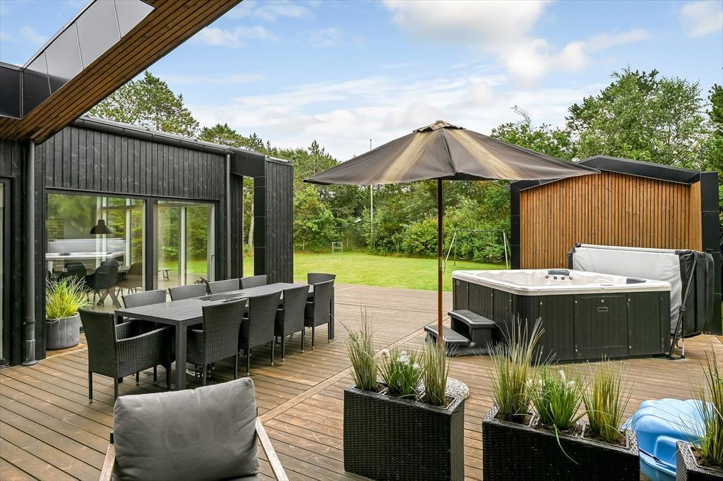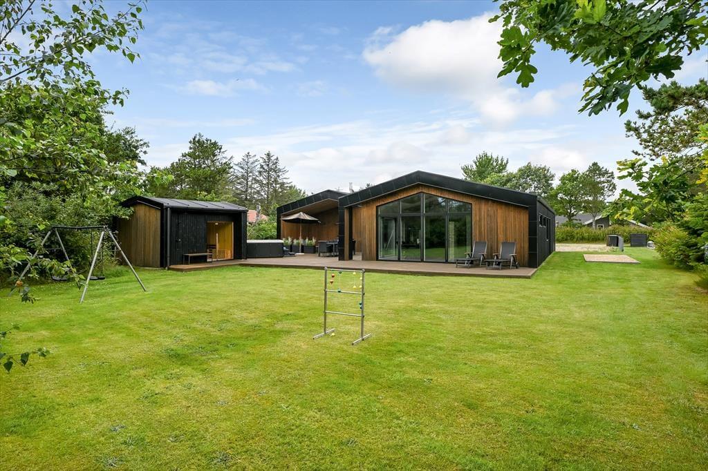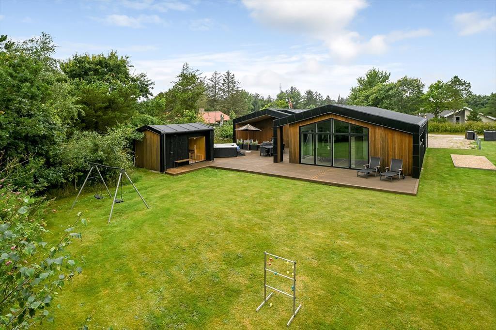 Dette nybyggede luksussommerhus centralt i Blåvand byder på et væld af lækre detaljer. Med en flot opholdsafdeling, et aktivitetsrum og et udendørs wellnessområde er der lagt op til både sjov og afslapning, og de fem soveværelser gør det nemt at samles op til 10 personer.