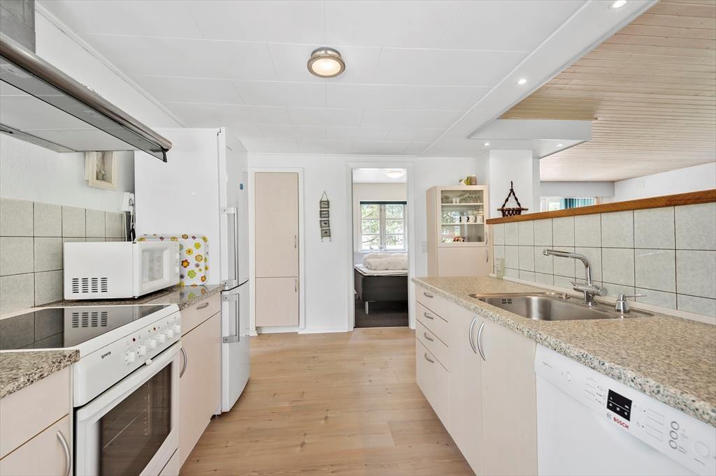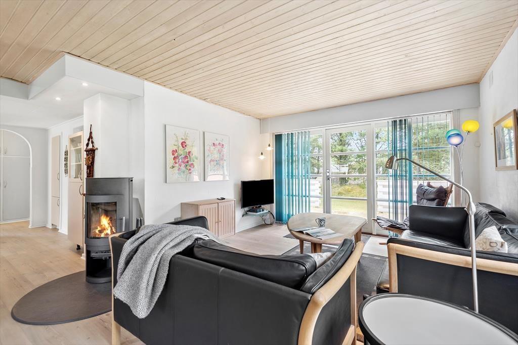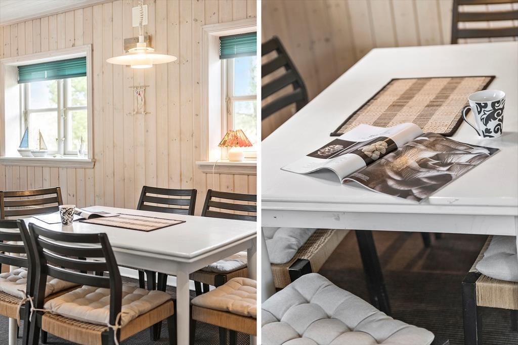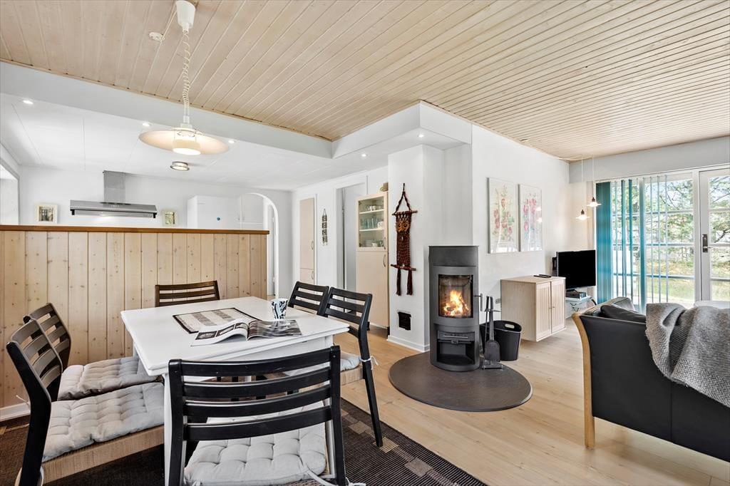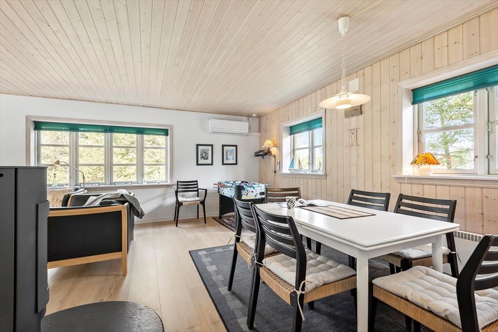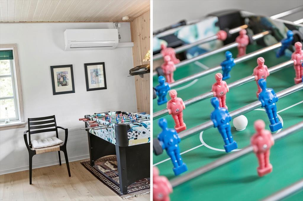 Når I ikke er ude for at opleve Blåvand eller nyde sommervejret på stranden, er det dejligt at have et rart hus at hygge sig i. Alle rum har en lys og pæn fremtoning, og den åbne forbindelse mellem køkken og stue gør det nemt at bruge tiden sammen – også når en del af familien laver mad og resten leger eller spiller brætspil. I kan også alle samles omkring bordfodboldbordet til en hurtig dyst, og hvis I slet ikke kan få nok, kan I lade turneringen brede sig over flere dage. Stuens brændeovn er perfekt til eventuelle kølige dage og aftenener, og når det er sengetid, har I to gode soveværelser til rådighed. Et badeværelse med bruser og vaskemaskine hører med til planløsningen, og husets rummelige entré med store glaspartier fungerer glimrende som udestue.