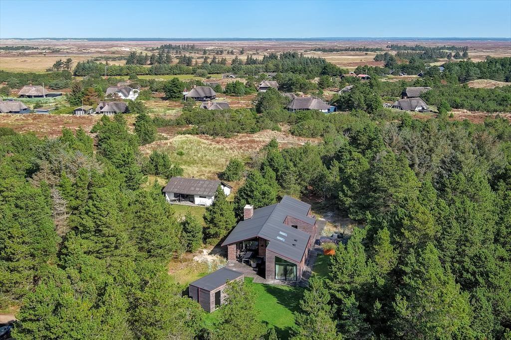 Sommerhuset ligger dejligt ugeneret på den store grund, der putter sig i naturskønne omgivelser for enden af en lukket sidevej. Stier og småveje inviterer til både korte og lange gåture i det flotte landskab rundt om Blåvand, og hvis I vil ind til bymidten, skal I blot tilbagelægge en kilometer, før I står på hovedgaden og har et godt udvalg af helårsåbne butikker og spisesteder lige foran jer. Lidt længere væk breder Blåvand Strand sig langs med Vesterhavet, og I har også nem adgang til seværdigheder som Blåvandshuk Fyr, Blåvand Zoo og Tirpitz.
