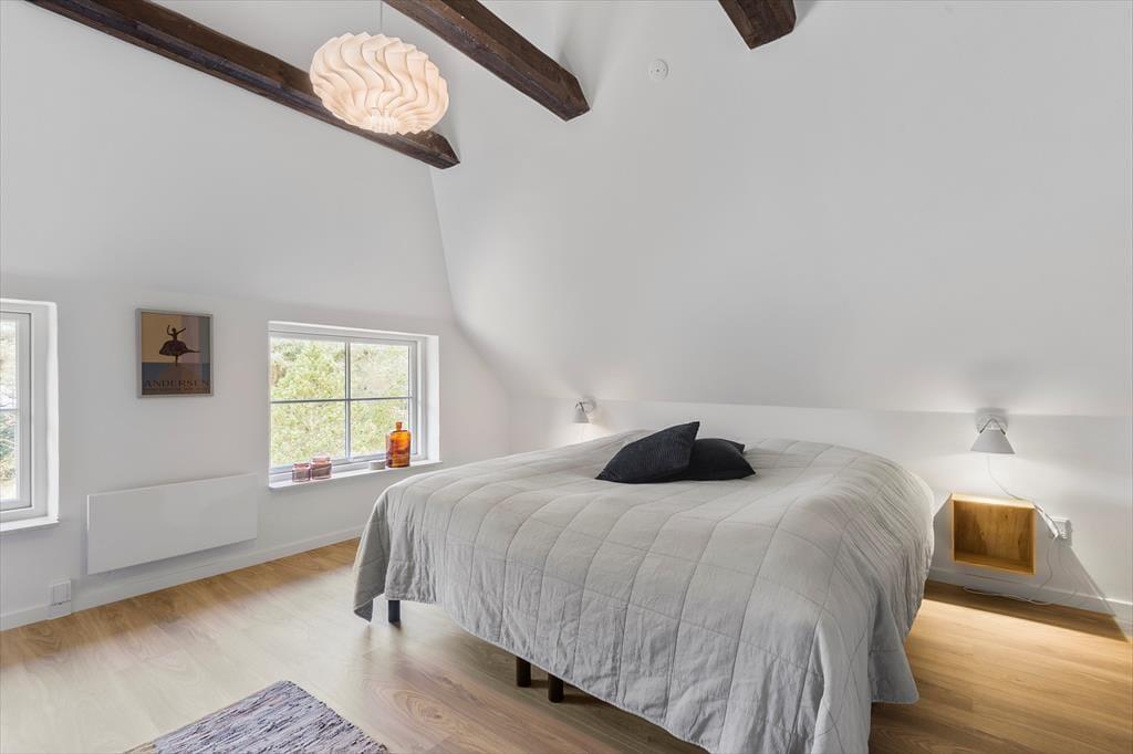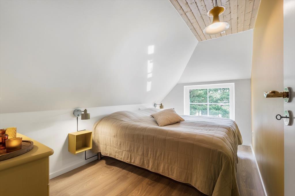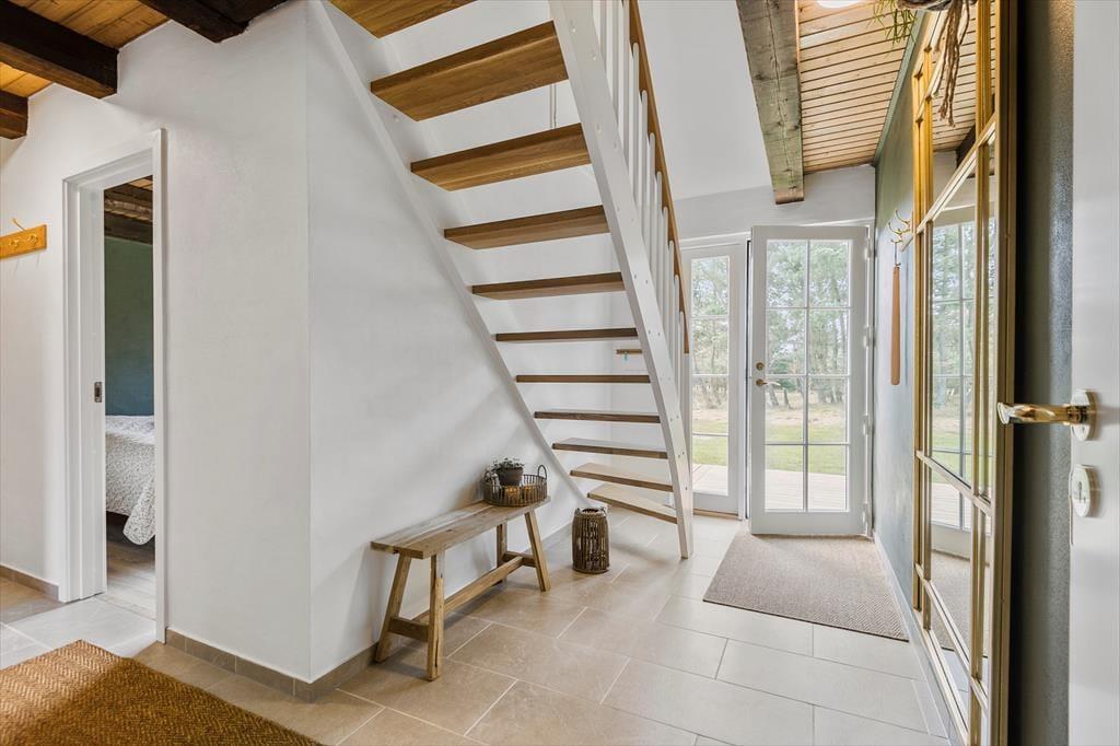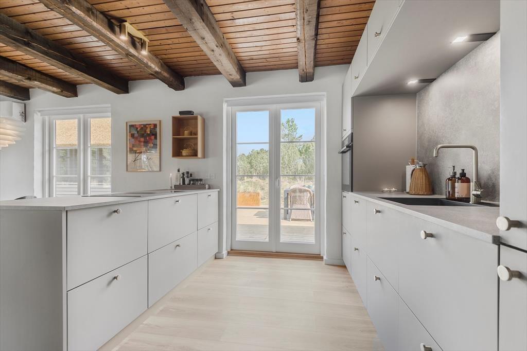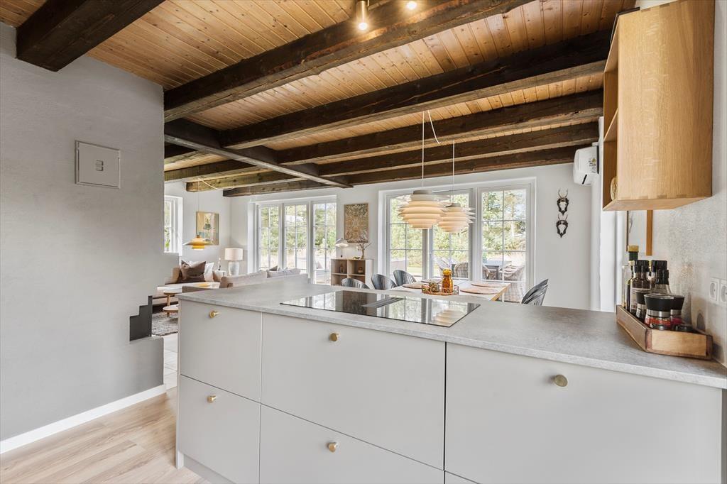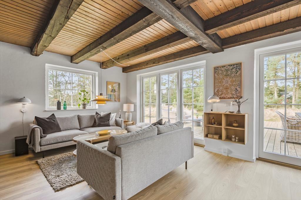 Allerede når du kører op for enden af den lukkede vej og ser det stråtækte sommerhus udefra, er det tydeligt, at moderniseringen af huset er udført med stor omhu og finesse. Den sikre stilsans kan også mærkes inden døre, for alle rum er holdt i flotte farvetoner og indrettet med smukke detaljer – se bare badeværelsets og toilettets smukke vægfliser såvel som de fine nipsgenstande, der gør soveværelserne ekstra hyggelige. I stueplan er køkkenet integreret med stuen, så selv når du er i gang med at trylle et hurtigt måltid eller en treretters menu frem til familien eller vennerne, kan du tage del i det sociale samvær. På en kølig dag eller aften kan du tænde op i indbygningspejsen og plante dig i en af sofaerne med udsyn til enten det store fladskærms-tv eller de naturskønne omgivelser udenfor vinduerne. Måske ser du endda et rådyr eller en fasan trippe forbi udenfor, for dyrelivet er rigt her i området.