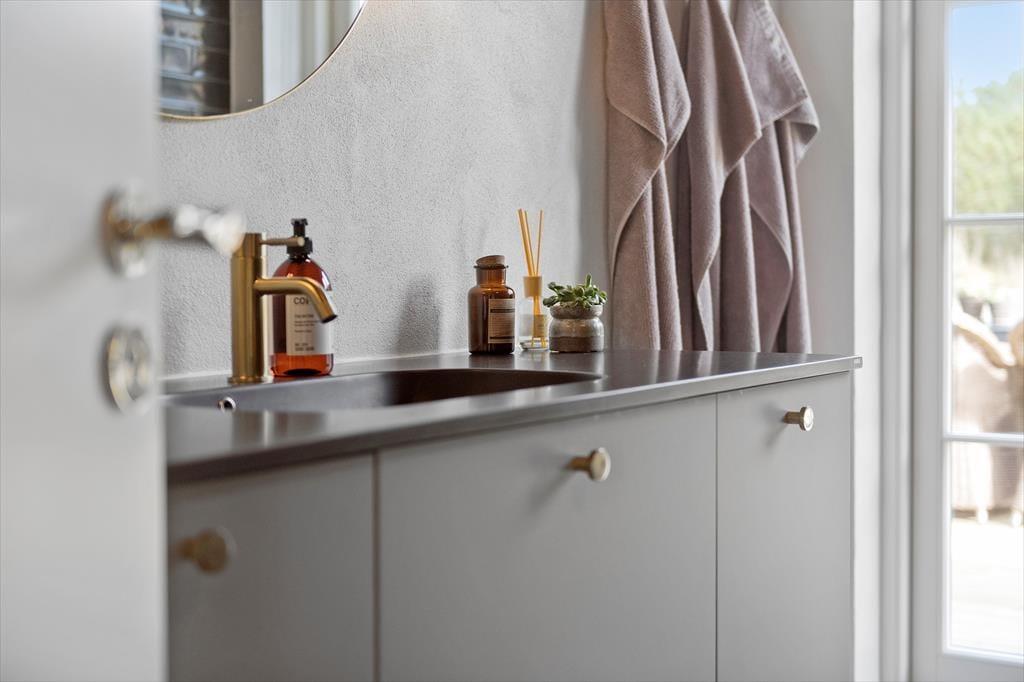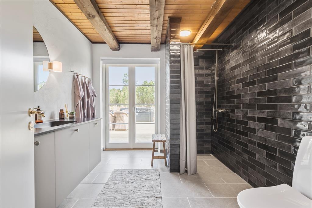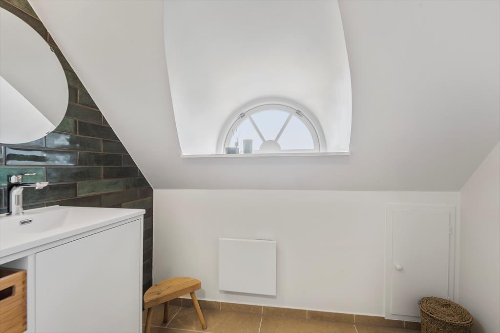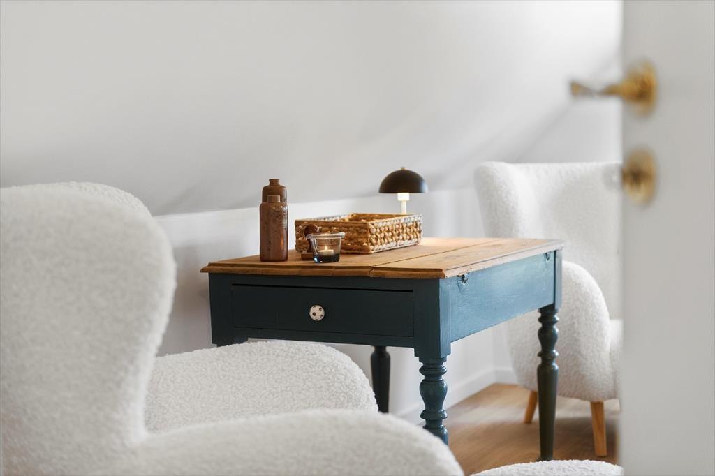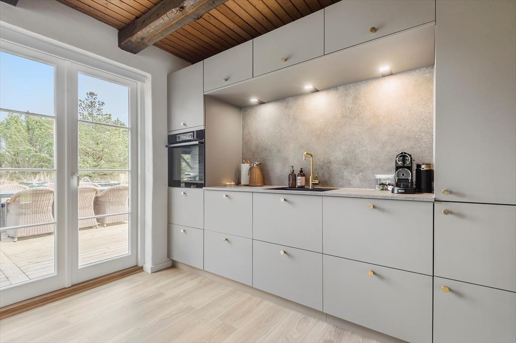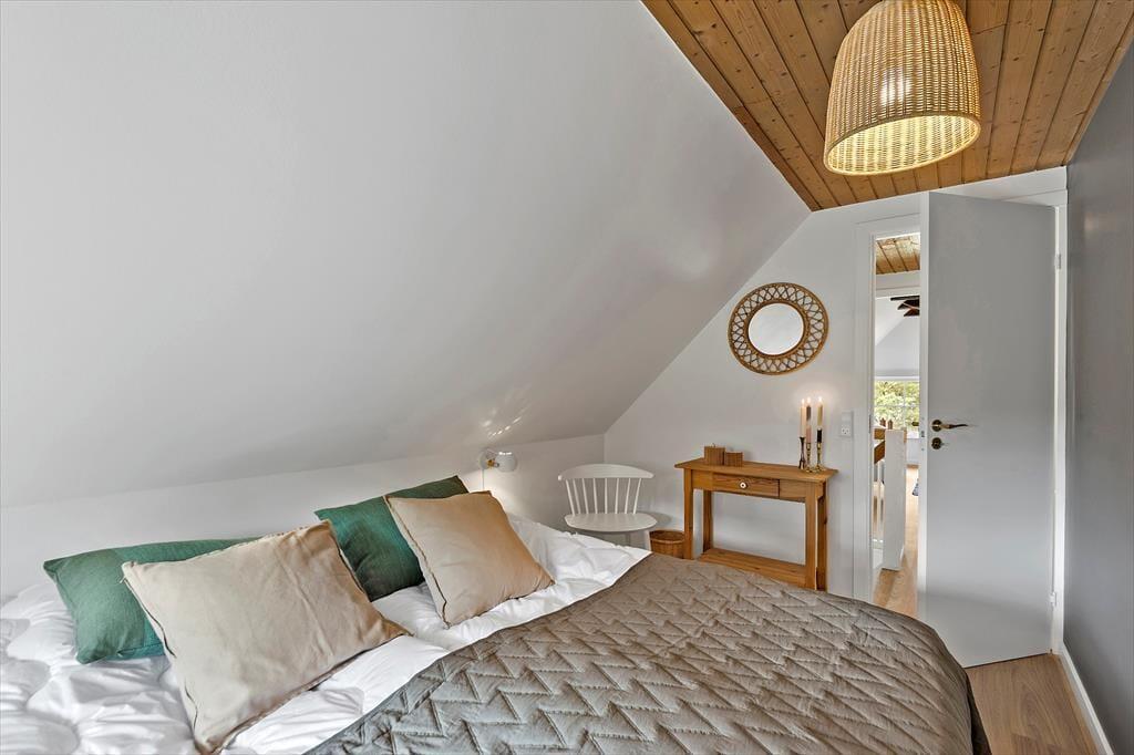 Allerede når du kører op for enden af den lukkede vej og ser det stråtækte sommerhus udefra, er det tydeligt, at moderniseringen af huset er udført med stor omhu og finesse. Den sikre stilsans kan også mærkes inden døre, for alle rum er holdt i flotte farvetoner og indrettet med smukke detaljer – se bare badeværelsets og toilettets smukke vægfliser såvel som de fine nipsgenstande, der gør soveværelserne ekstra hyggelige. I stueplan er køkkenet integreret med stuen, så selv når du er i gang med at trylle et hurtigt måltid eller en treretters menu frem til familien eller vennerne, kan du tage del i det sociale samvær. På en kølig dag eller aften kan du tænde op i indbygningspejsen og plante dig i en af sofaerne med udsyn til enten det store fladskærms-tv eller de naturskønne omgivelser udenfor vinduerne. Måske ser du endda et rådyr eller en fasan trippe forbi udenfor, for dyrelivet er rigt her i området.