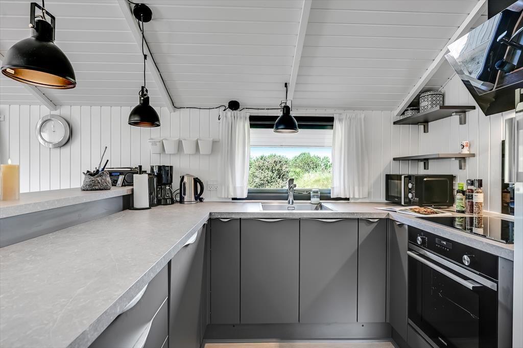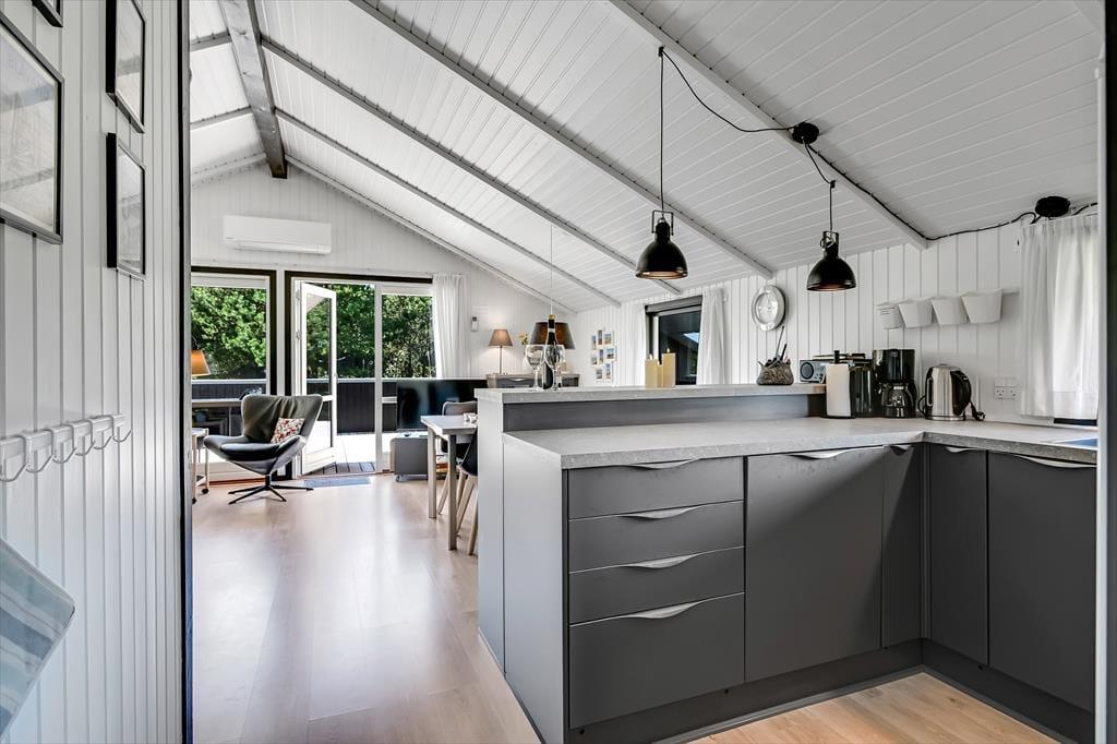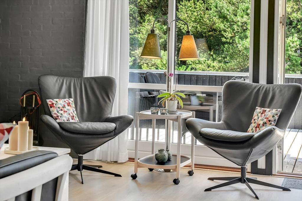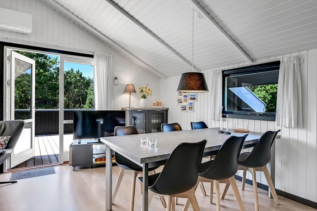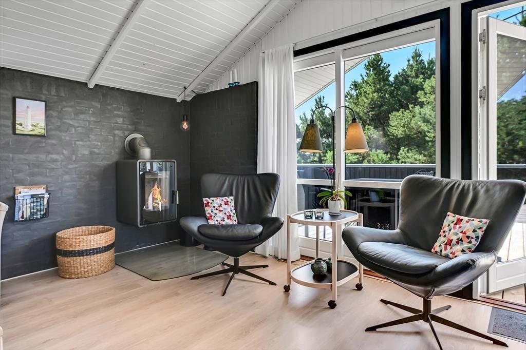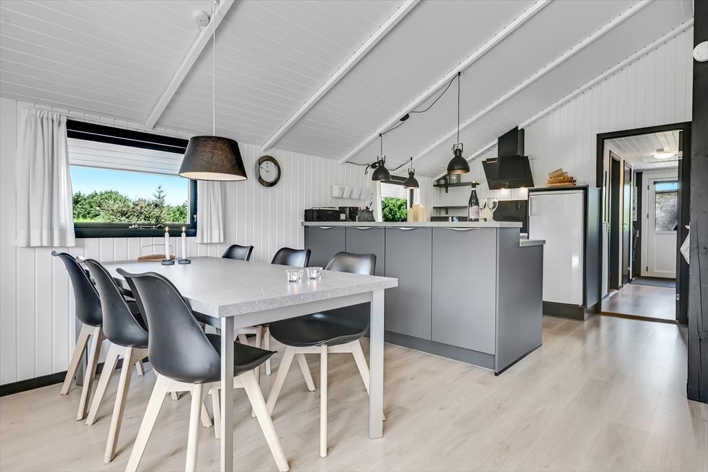 Selvom der er meget at opleve i lokalområdet, er det rart at have en hyggelig base til feriens mere tilbagelænede stunder. Her i sommerhuset kan du slappe af i den lyse og velindrettede stue, der har loft til kip, brændeovn og havedør ud til terrassen. Hvis du drømmer om at læse din medbragte krimi færdig, kan du blive siddende helt roligt i sofaafdelingen i timevis. Spisebordet er et skønt samlingspunkt – for eksempel når du eller andre i selskabet har været i gang med at trylle noget lækkert frem i det åbne køkken. Et badeværelse og tre soveværelser fuldender planløsningen, så alt i alt er det en rar feriebolig, der fint kan rumme seks personer.