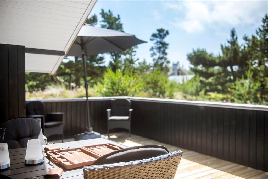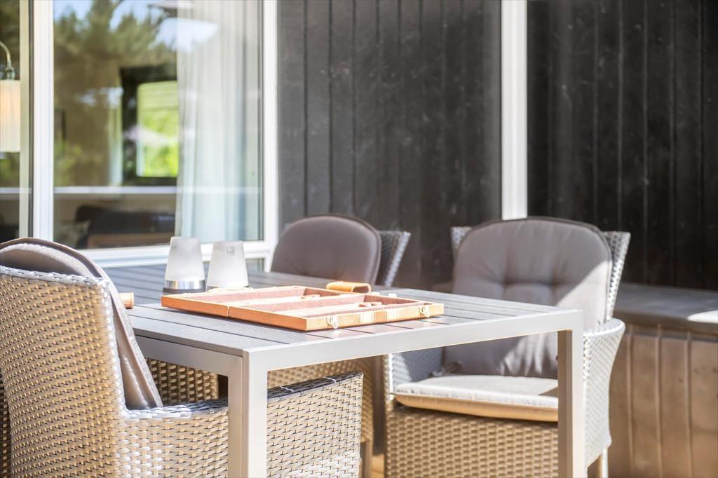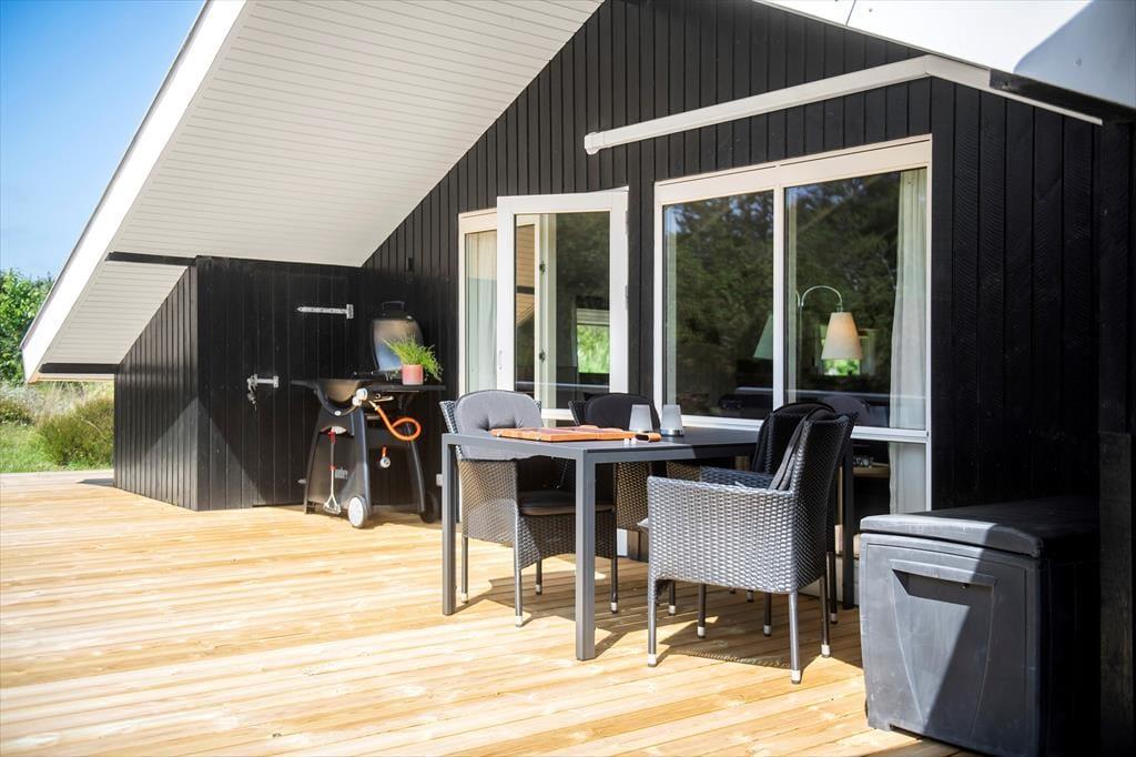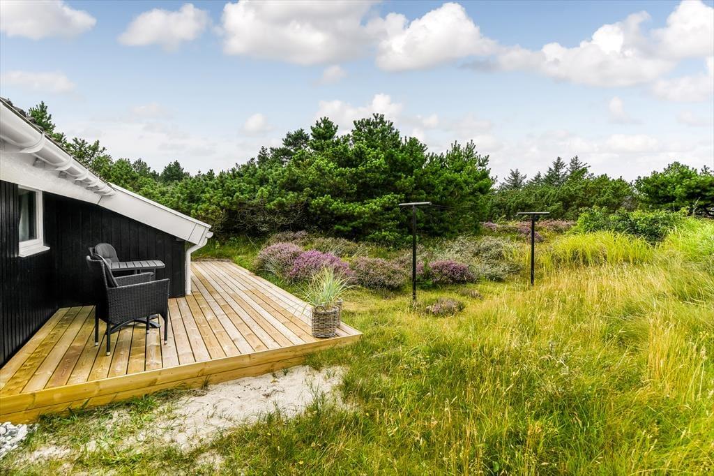 Træterrassen, der ligger i forbindelse med stuen, er både stor og delvist overdækket, og så er den afskærmet med hegn ud mod vejen. Endelig ligger den godt i forhold til solen, så med andre ord er den helt perfekt til det udendørs driverliv – hvad enten du vil drikke eftermiddagskaffe på en forårsdag, have en siesta i liggestolene eller sidde længe ude for at nyde de lyse sommeraftener. Den smukke naturgrund er med sine 2700 m2 dejligt stor, og den ligger meget roligt for enden af en lille stikvej i et ellers lukket område.