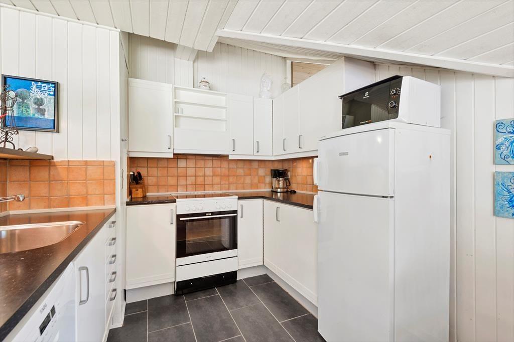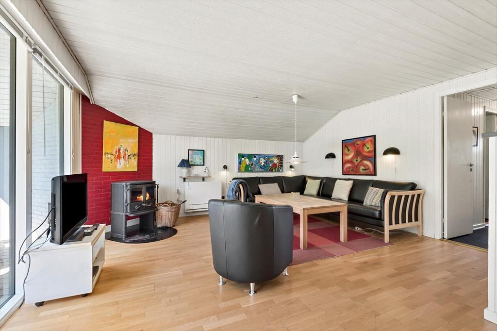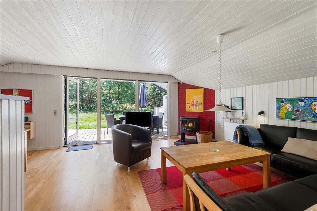Sommerhusets hyggelige og hjemlige atmosfære er med til at sørge for, at du straks kan slappe af og føle dig godt tilpas inden døre. Skal du lige have sænket skuldrene, før du er helt i ferie-mode, kan du starte med et varmt spabad og en tur i saunaen, og en pause med en god bog i sofaen nær brændeovnen kan sikkert også få dig i det rette humør. Stue og køkken ligger i åben forbindelse, så du kan nyde at have familien lige i nærheden – selv når det er dig, der har madtjansen og er i gang med at kræse om retterne. Soveværelser er der tre af, og her er der rart at være, når det er tid til at sove.