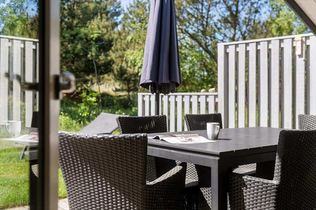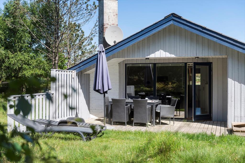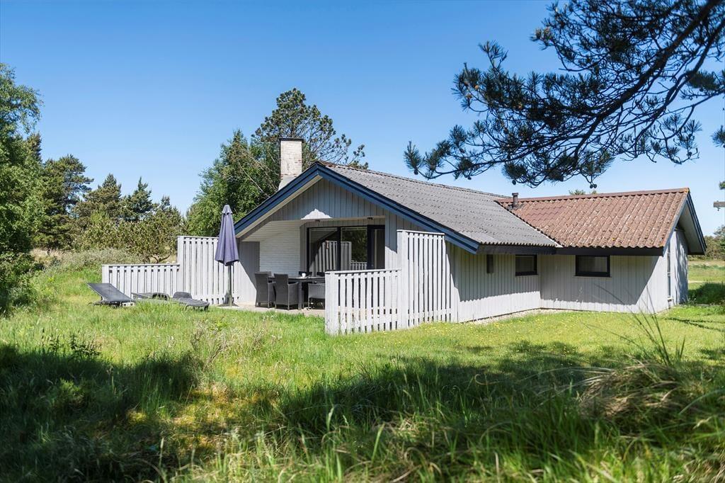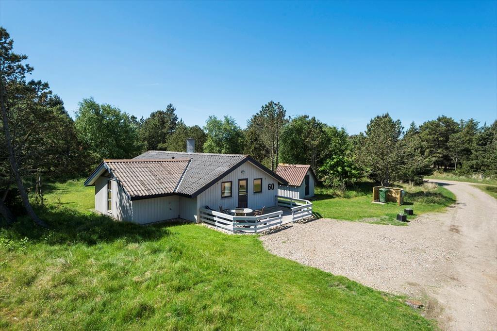 Fra stuen har du direkte adgang til en sydvendt og delvist overdækket terrasse, der er godt afskærmet med plankeværk til begge sider. Med andre ord er der gode chancer for at finde både sol og læ her, så det kan nemt blive din foretrukne opholdsplads – med mindre du bliver mere vild med at sidde på husets åbne terrasse, der vender ud mod den flotte klithede. Naturgrunden er stor, så du har plads og luft omkring dig, og til de boldglade familiemedlemmer er der endda opstillet fodboldmål på et græsklædt areal tæt på huset.