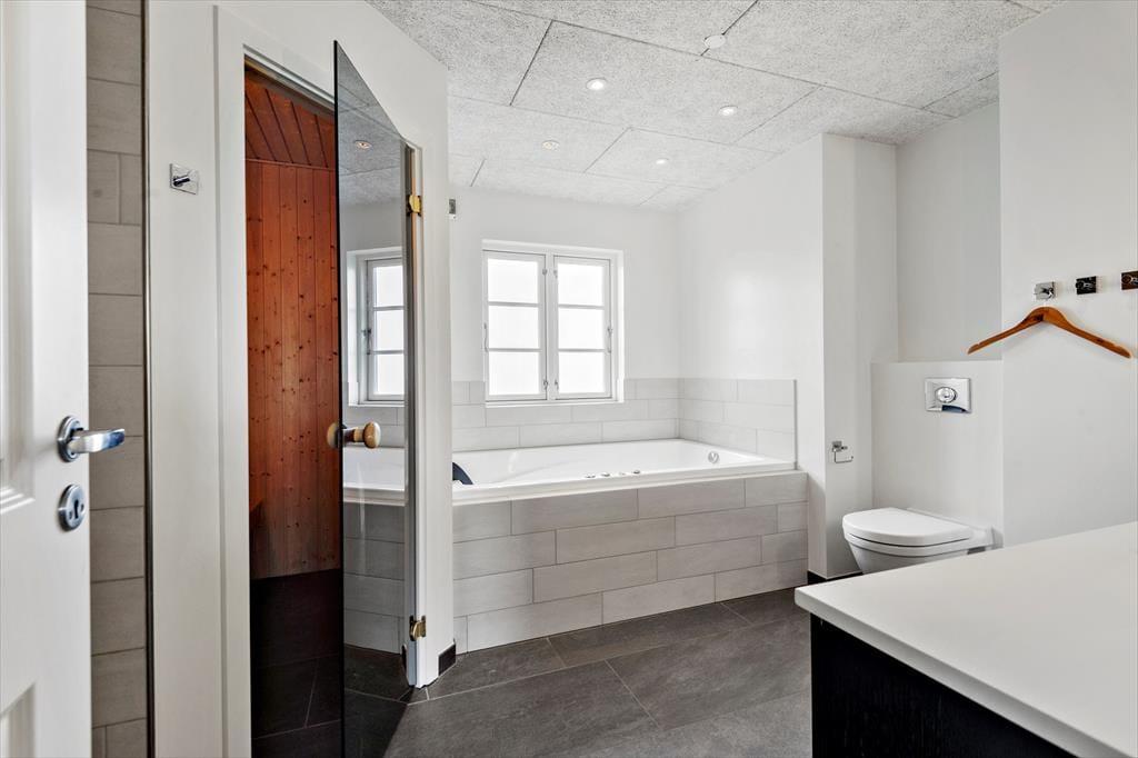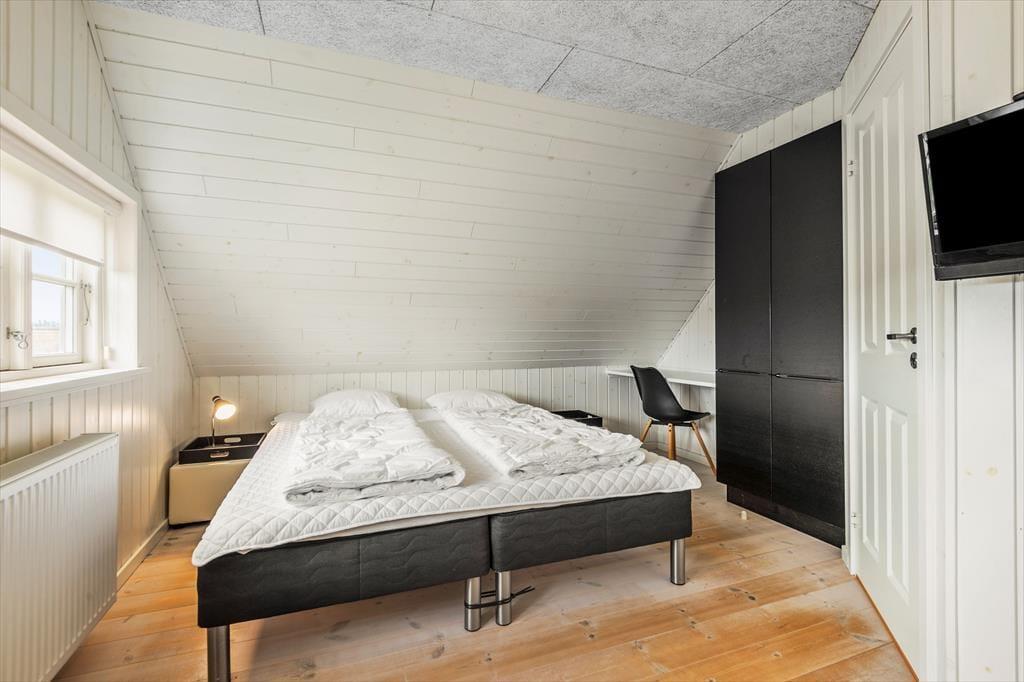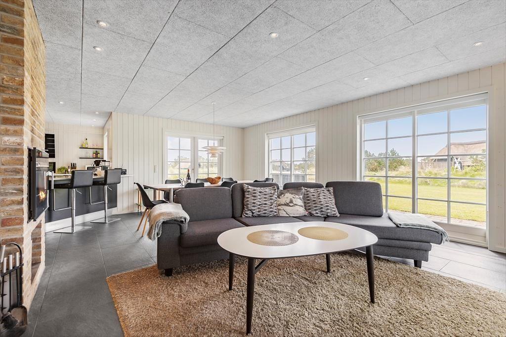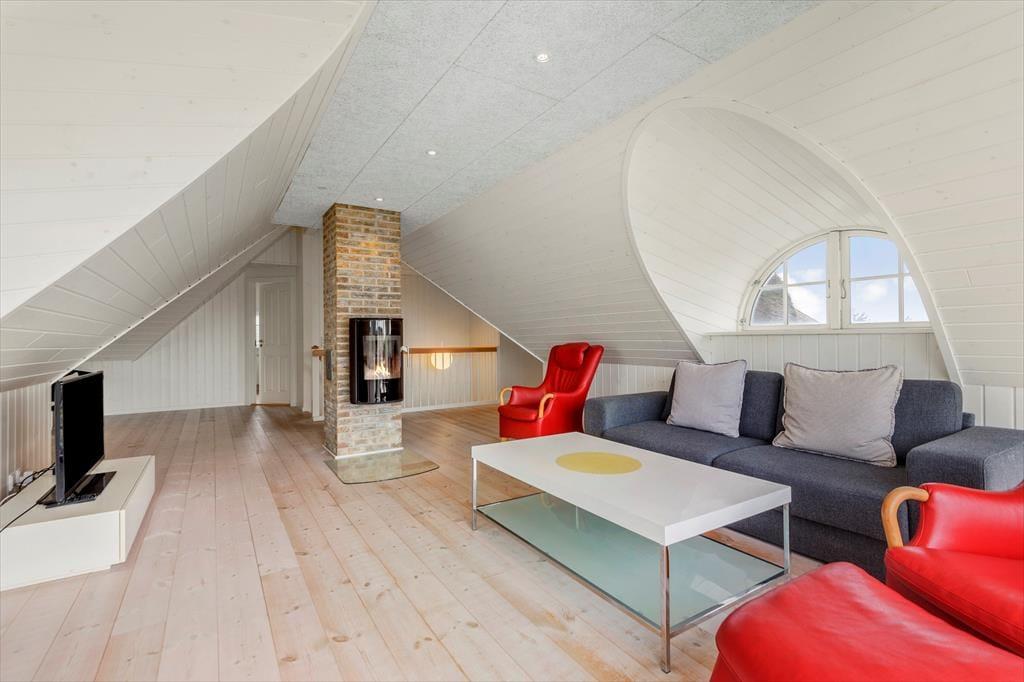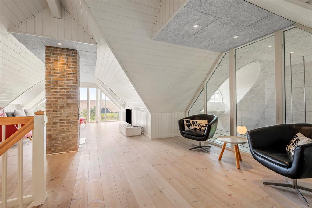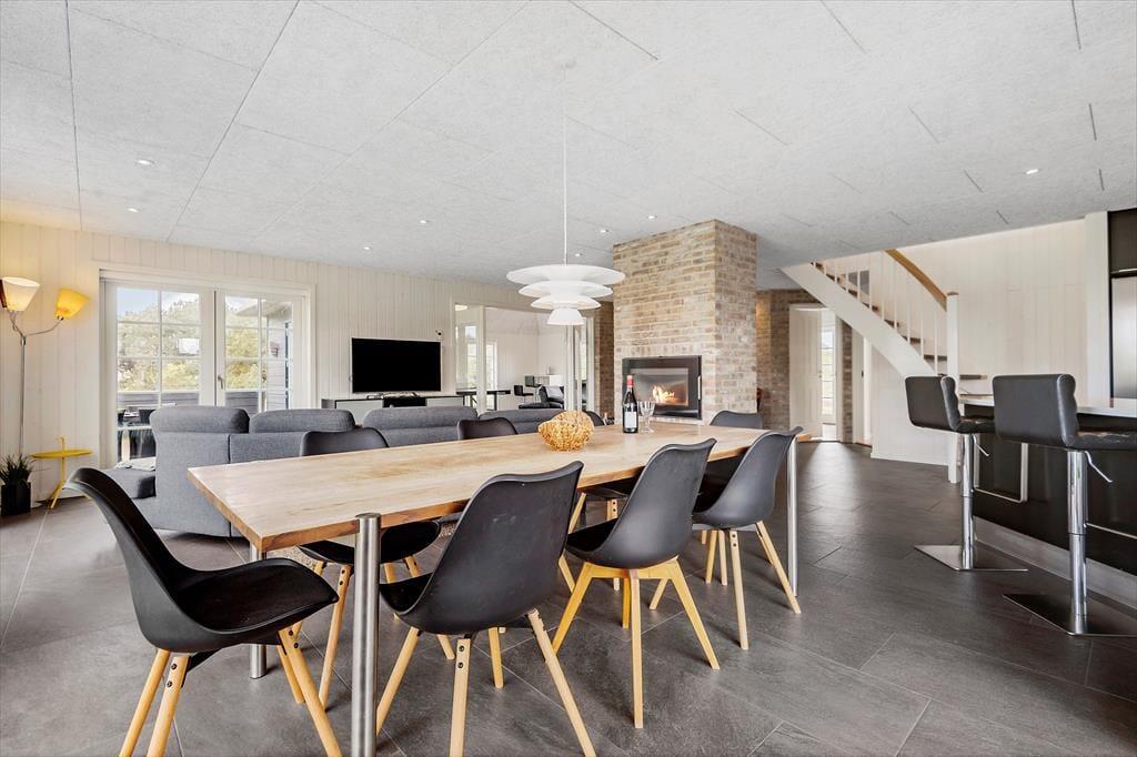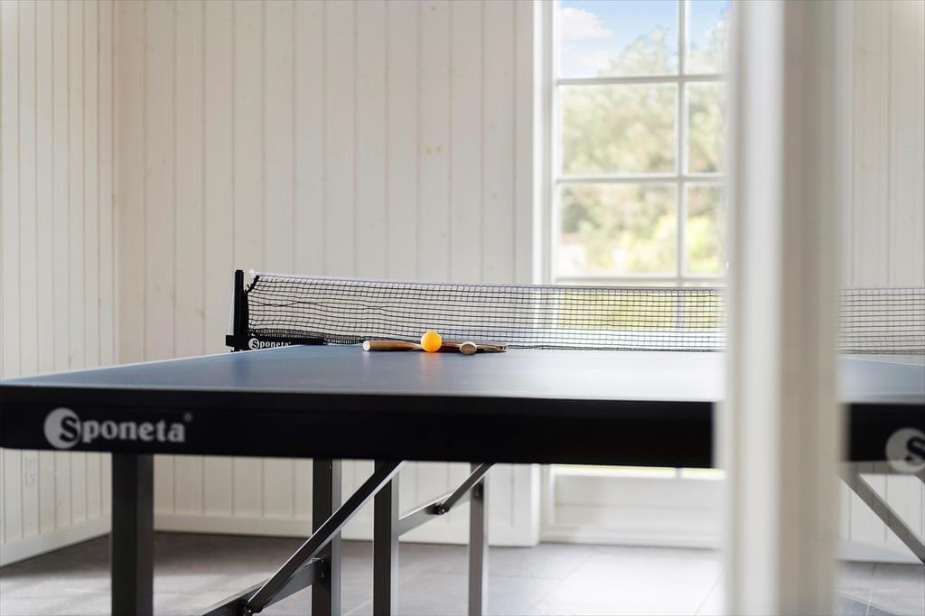 Inden bag den mørke træfacade og under det flotte stråtag venter der dig en lys og elegant indrettet feriebolig, som du oplagt kan dele med familie eller gode venner. Der er to soveværelser og et badeværelse på hvert af husets to etager. Opholdsrum har I også både oppe og nede, så der er mulighed for at trække sig lidt tilbage, hvis al tiden ikke skal bruges sammen. Trænger du til en rolig stund, kan du for eksempel tænde op i førstesalens brændeovn og slænge dig i sofaen med en god bog, eller hvad med et spabad og en tur i saunaen? Køkken-alrummet i stueplan kan oplagt fungere som et socialt samlingspunkt – uanset om det er tid til at lave mad, spille brætspil eller se film på det store fladskærms-tv – og du kan også udfordre hele selskabet i bordtennis i det tilstødende aktivitetsrum.
