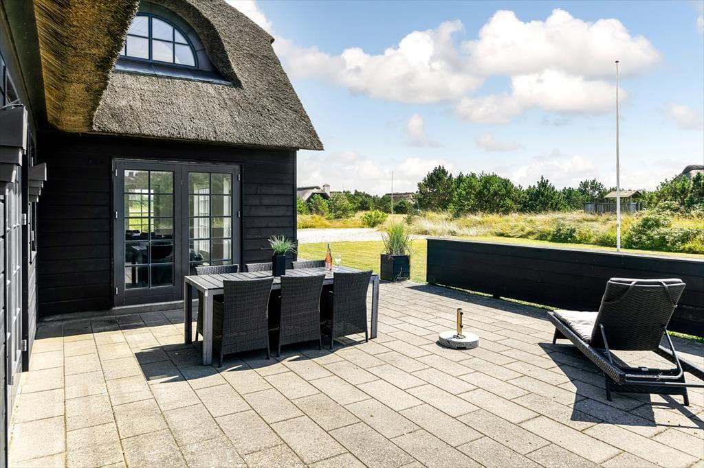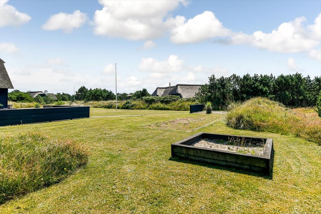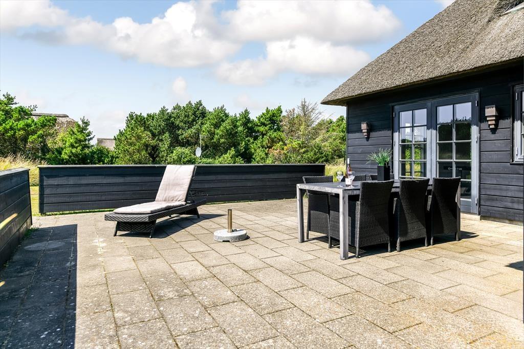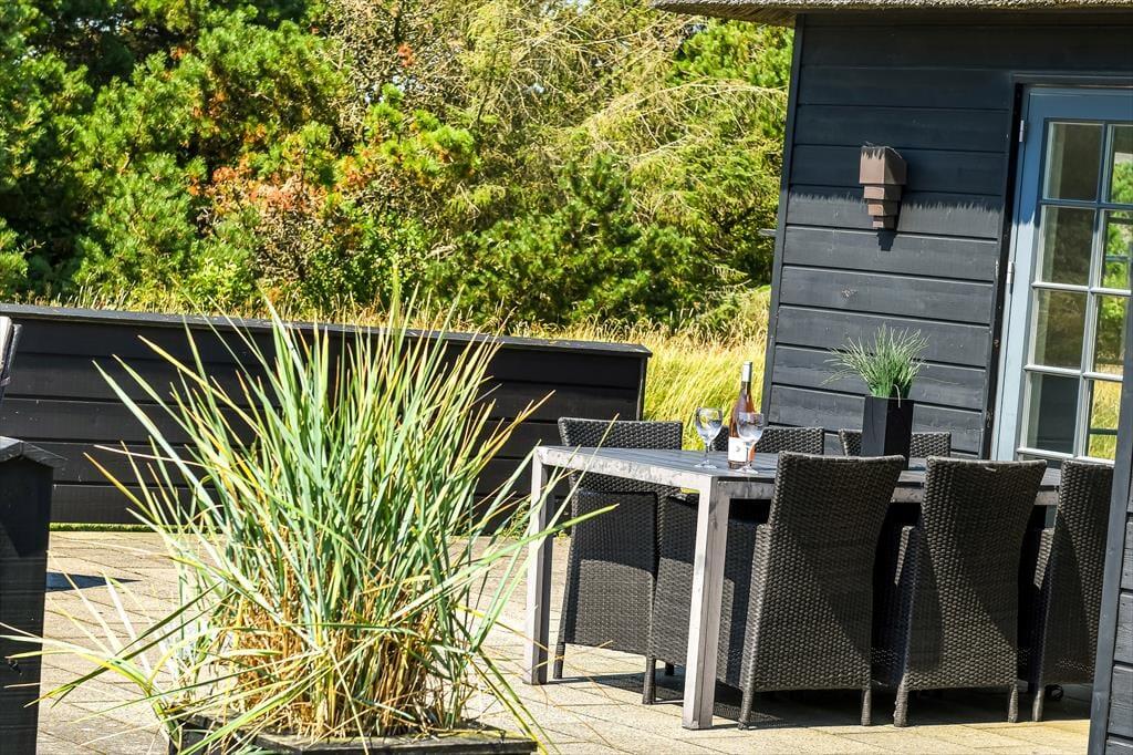 Når solen står højt på himlen over Blåvand, er det oplagt at bruge tiden på sommerhusets store naturgrund. Der er en stor græsplæne at lege og spille bold på, og hvis du hellere vil sidde komfortabelt eller måske ligefrem få en middagslur i en liggestol, kan du oplagt slå dig ned på den store terrasse, der breder sig syd for sommerhuset. En flisegang fører hen til et andet terrasseområde på grunden, og det ligger lige ved en petanquebane, hvor I kan hygge jer med det noble kuglespil.
