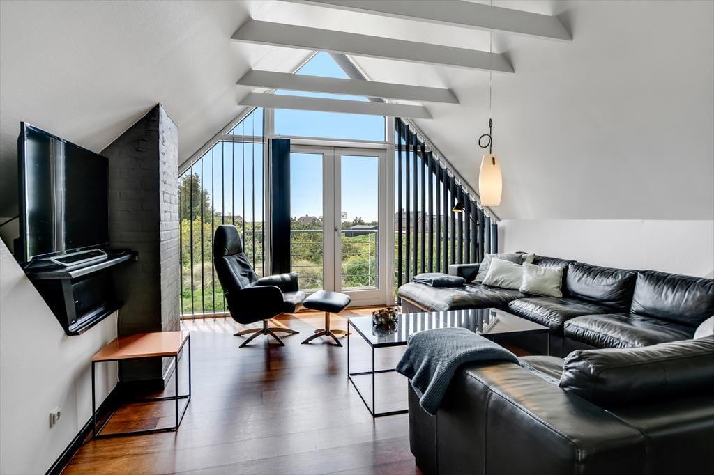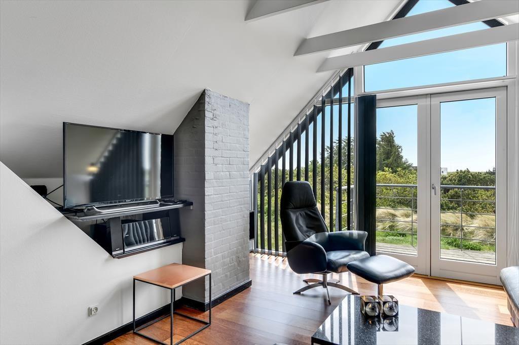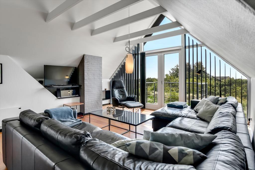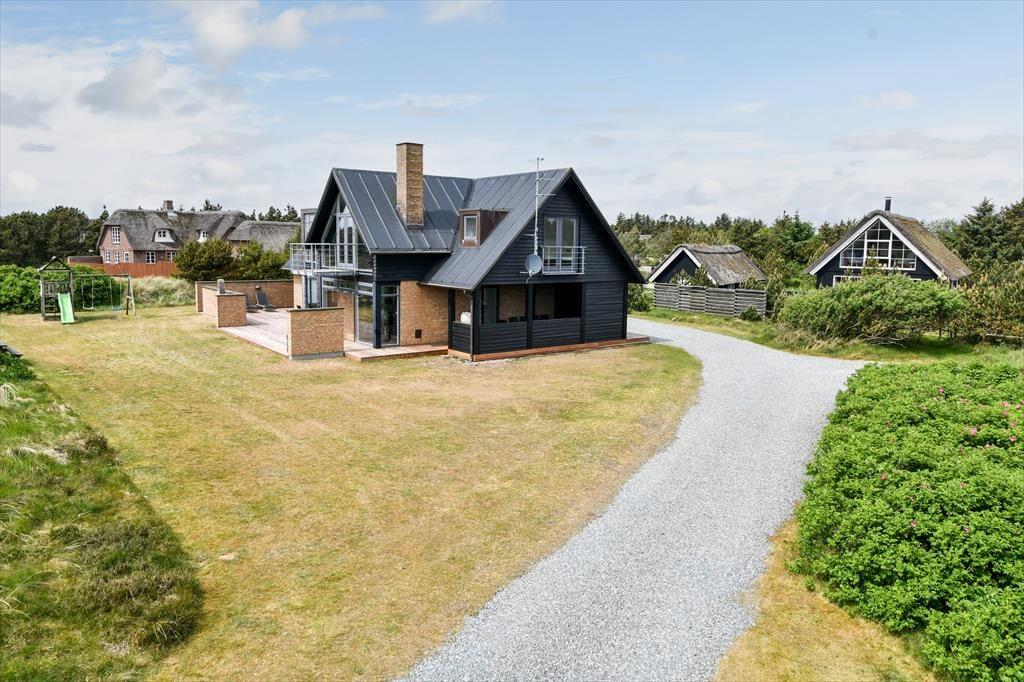 Vejnavnet Blåvand Strand fortæller alt om, hvor på danmarkskortet dette dejlige sommerhus ligger. Badebyens smukke sandstrand ligger bare 100 meter væk, og fra husets førstesal har du udsigt til Vesterhavet – og hvis du ikke vil boltre dig i de havfriske bølger, er der sågar både pool, spa og sauna i husets wellnessafdeling.