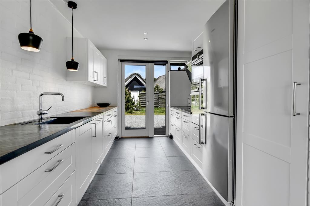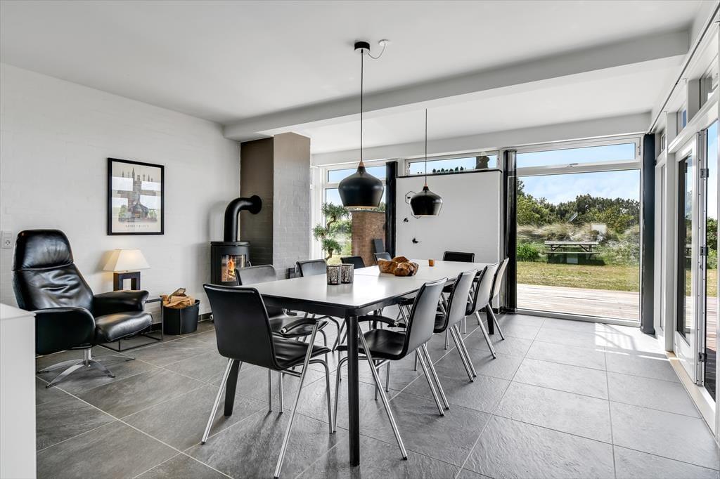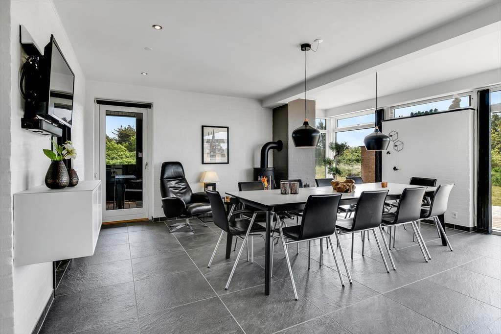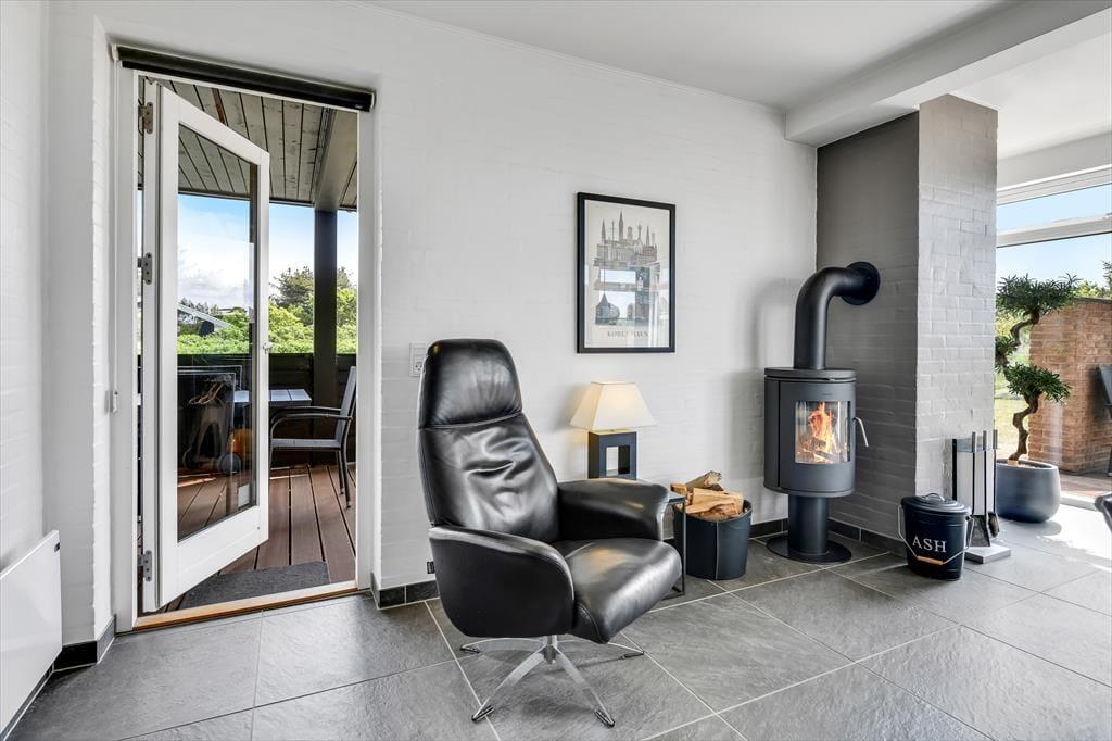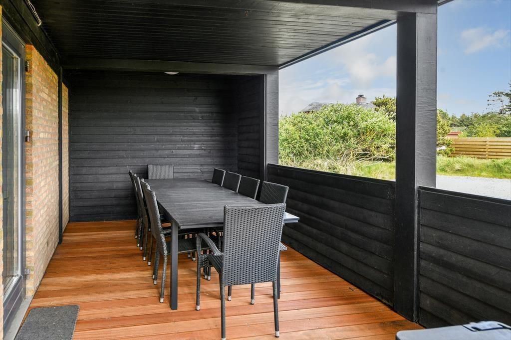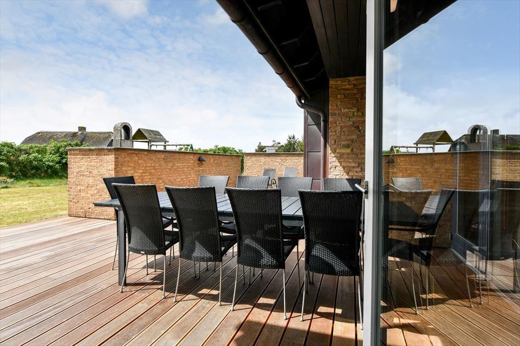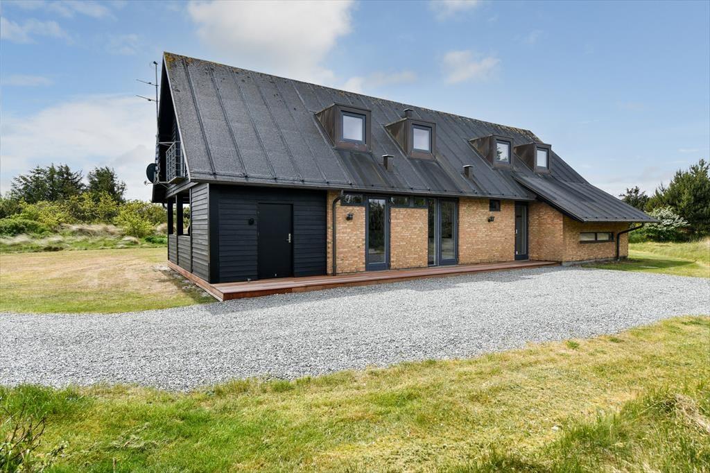Det er ikke kun indenfor, at du og dit selskab har fine forhold, når I vil nyde ferien sammen med leg og afslapning. Også ude i det fri kan I se frem til at have det skønt på den store, grønne naturgrund, der byder på et sjovt legestativ til de yngste, flere bord-bænke-sæt og en dejlig græsplæne med plads til havespil. En stor og flot træterrasse breder sig mod syd, så her er solforholdene gode – og mon ikke du kan indsnuse den friske havluft og næsten høre bølgernes brusen, når du sidder her og læner dig tilbage?