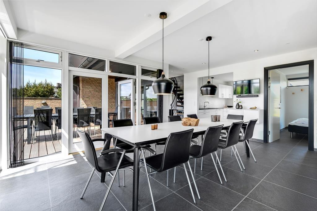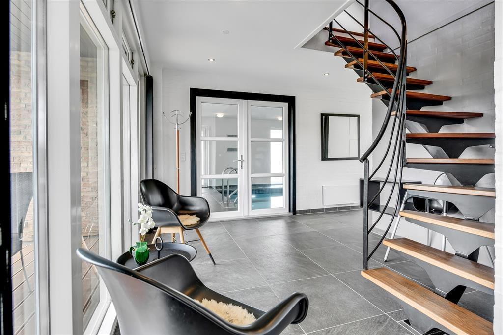 I sommerhuset er der plads til at være mange mennesker, for der er fem soveværelser og to badeværelser til rådighed – så hvis du er i gang med at arrangere en ferie for to eller måske endda tre børnefamilier, er huset et oplagt valg. Sommerhuset er derudover ideelt for folk, der elsker stilrent design og skønne detaljer, for moderne møblement pryder alle rum, og så er der brændeovn i stueplanets køkken-alrum og den flotteste havudsigt fra førstesalens opholdsstue. Hvis børnene eller andre spilleglade sjæle kan lide at game, er der en Playstation på det ene soveværelse, og hvis du er mere til wellness, skal du i stedet opholde dig i poolrummet, der foruden swimmingpool også er udstyret med spabad og sauna.