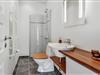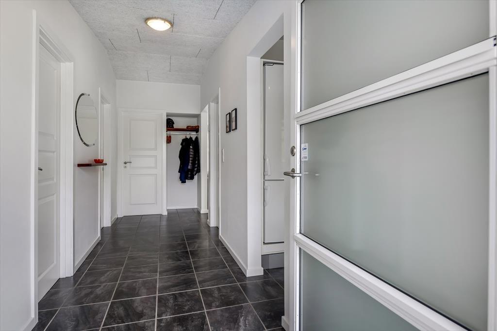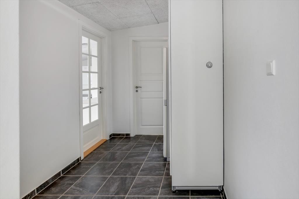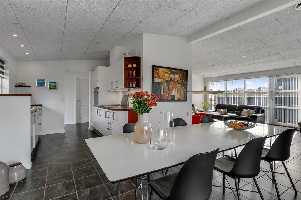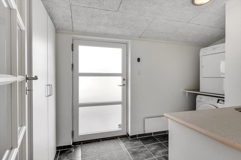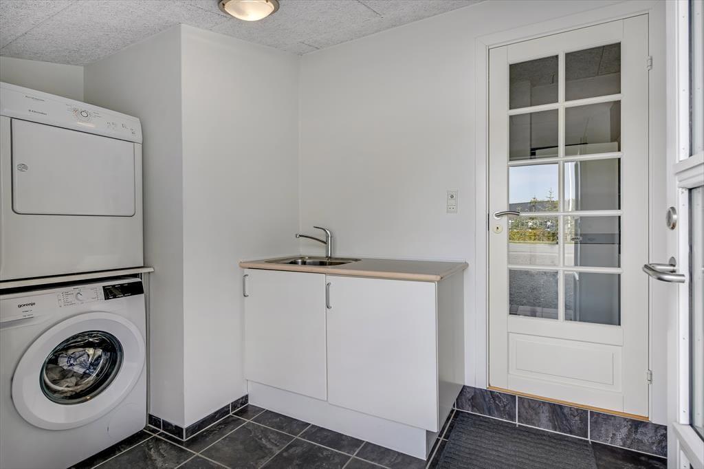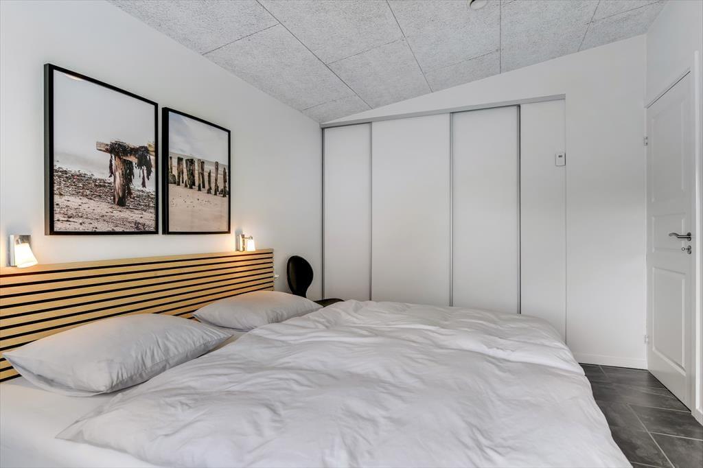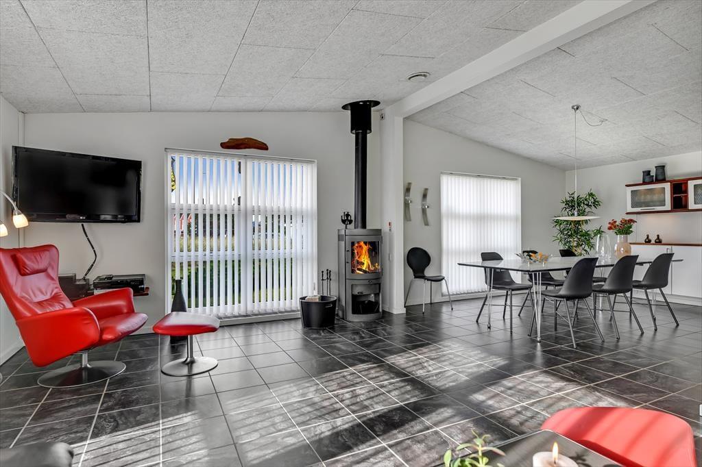 Indenfor i sommerhuset er hvid den gennemgående farve på vægge og interiør, og det mørke gulv giver en flot kontrast til alt det lyse. Fra entréen har du adgang til tre gode soveværelser og et pænt badeværelse, og et gangareal leder videre til husets gode bryggers og endnu et badeværelse. Sidstnævnte er værd at bemærke, for her står der et lækkert spabad, hvis du skulle trænge til en tilbagelænet pause i det varme vand. Stuen er derimod det oplagte samlingspunkt, når I alle vil hygge jer sammen – for eksempel med madlavning i det åbne køkken, brætspil omkring spisebordet eller sofaafslapning med udsigt til brændeovnen.