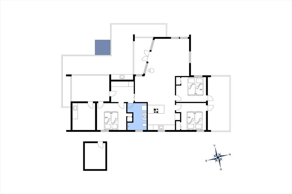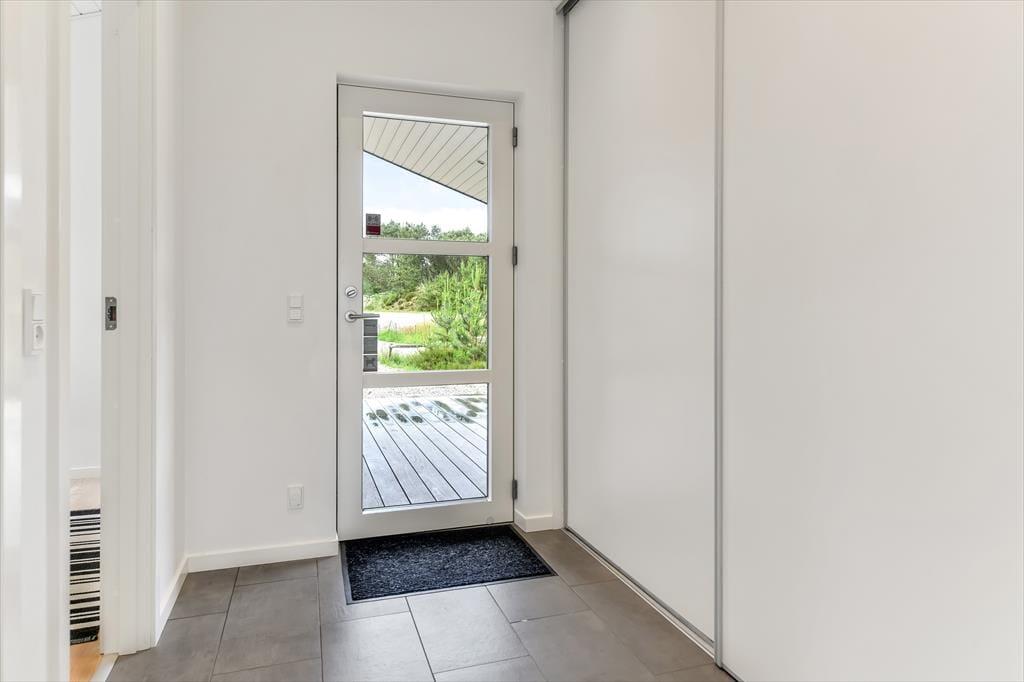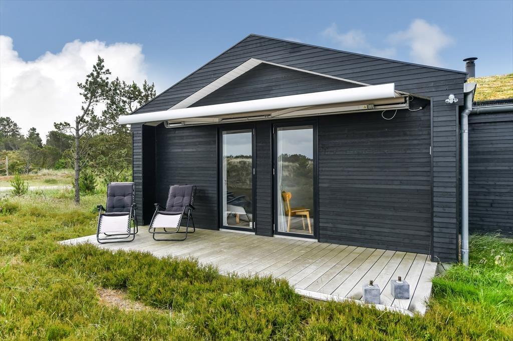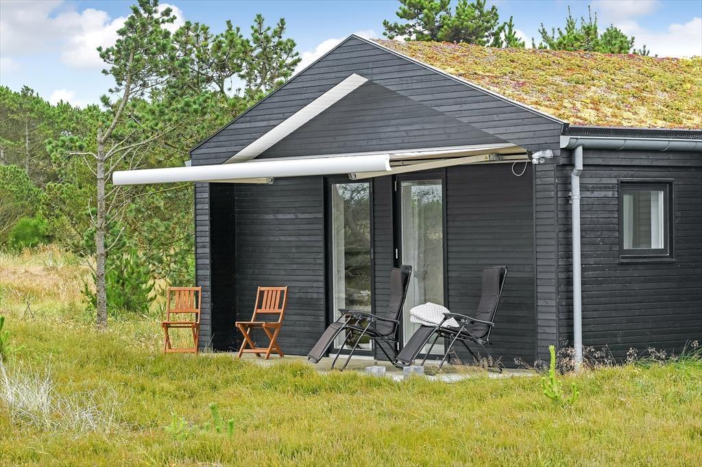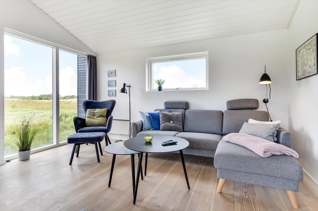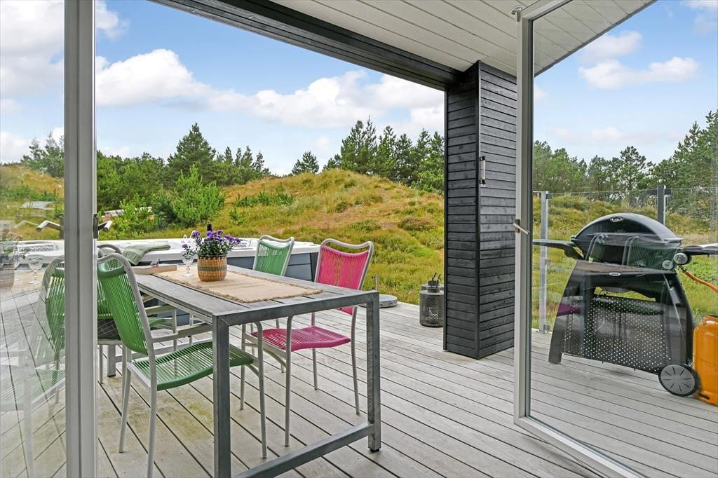 Sommerhuset ligger midt på en stor grund, der prydes af et smukt tæppe af lyng og anden naturskøn bevoksning. Mod nord breder klitheden sig, og sådan en udsigt er umulig at blive træt af, så uanset om du sidder i en havestol, på udsigtsbænken eller i det udendørs spabad har du noget skønt at kigge på. Med fuglesang fra fyrretræerne og klithedens dufte er det ikke kun synssansen, der vækkes, og selv når mørket sænker sig over Blåvand, er det herligt at sidde i de fredelige omgivelser – eventuelt på et af de overdækkede terrasseområder, hvis duggen er ved at falde.