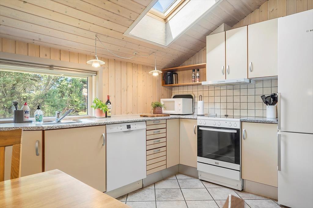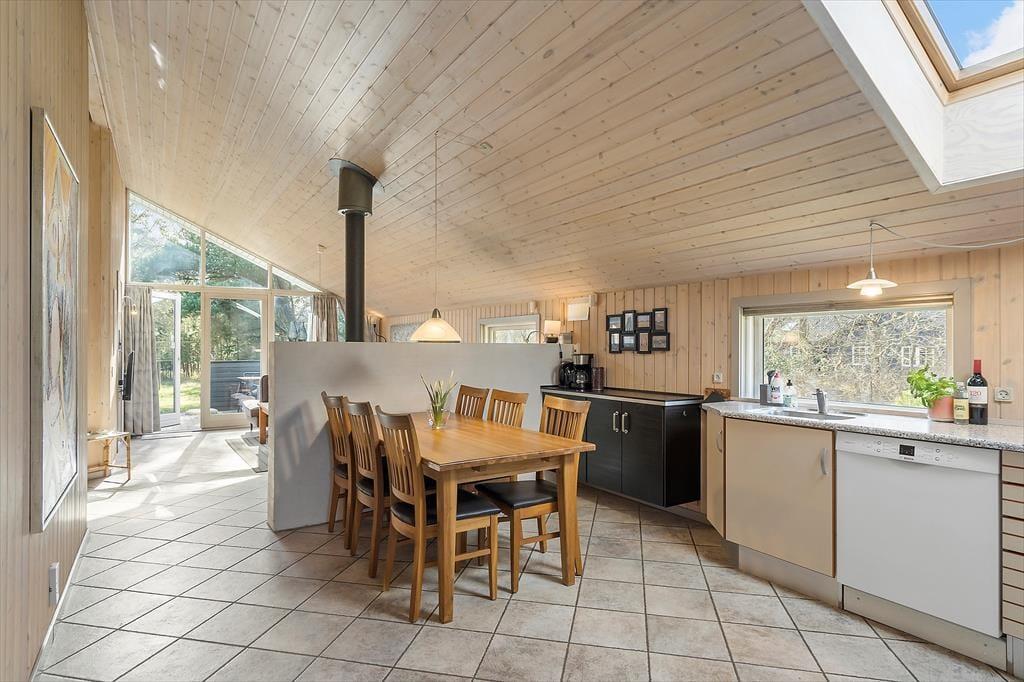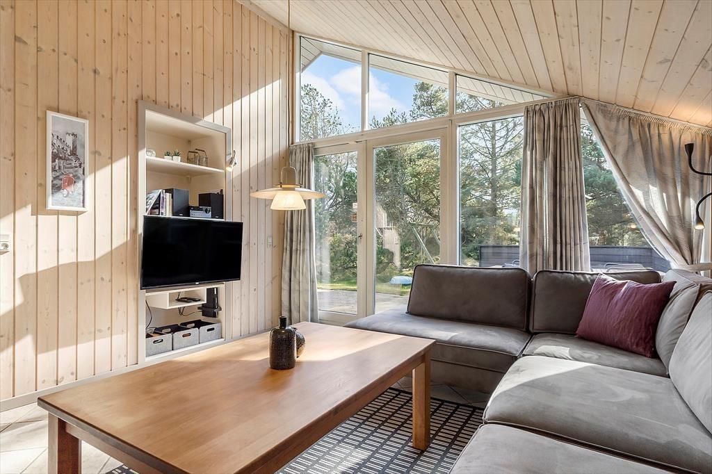 Inde bag den sortmalede træfacade står husets indbydende rum klar til at byde dig velkommen til en ferie fuld af hygge og afslapning. På klassisk sommerhusmanér er der lyse trælister på væggene og loft til kip, og stuens brændeovn kan skrue op for både temperaturen og den gode stemning, hvis du er i humør til en eftermiddag på sofaen med brætspil, krydsogtværser eller en spændende film. Måske især på de kølige dage er det herligt at kunne tage det med ro i spabadet og saunaen, der begge kan findes på det største af husets to badeværelser. Saunaen har endda en ekstra dampfunktion, så den kan fungere som tylarium med lavere varme og høj luftfugtighed – så du og din familie kan se frem til flere former for wellness, der nok skal give jer fornyet energi og en rar feriefornemmelse helt ud i kroppen.