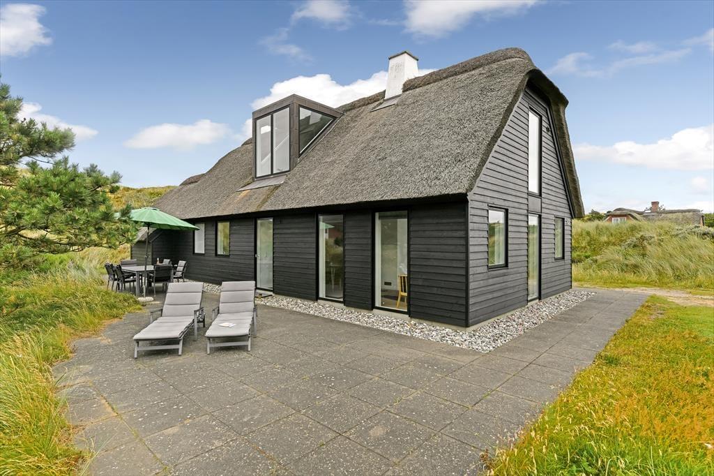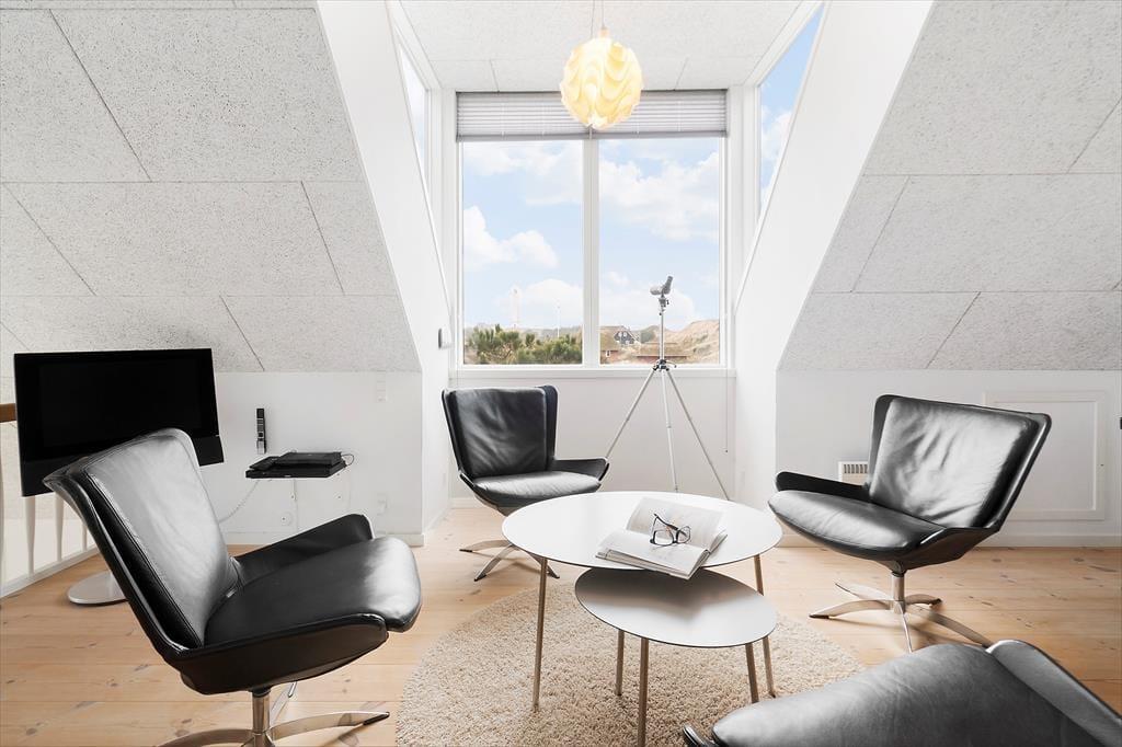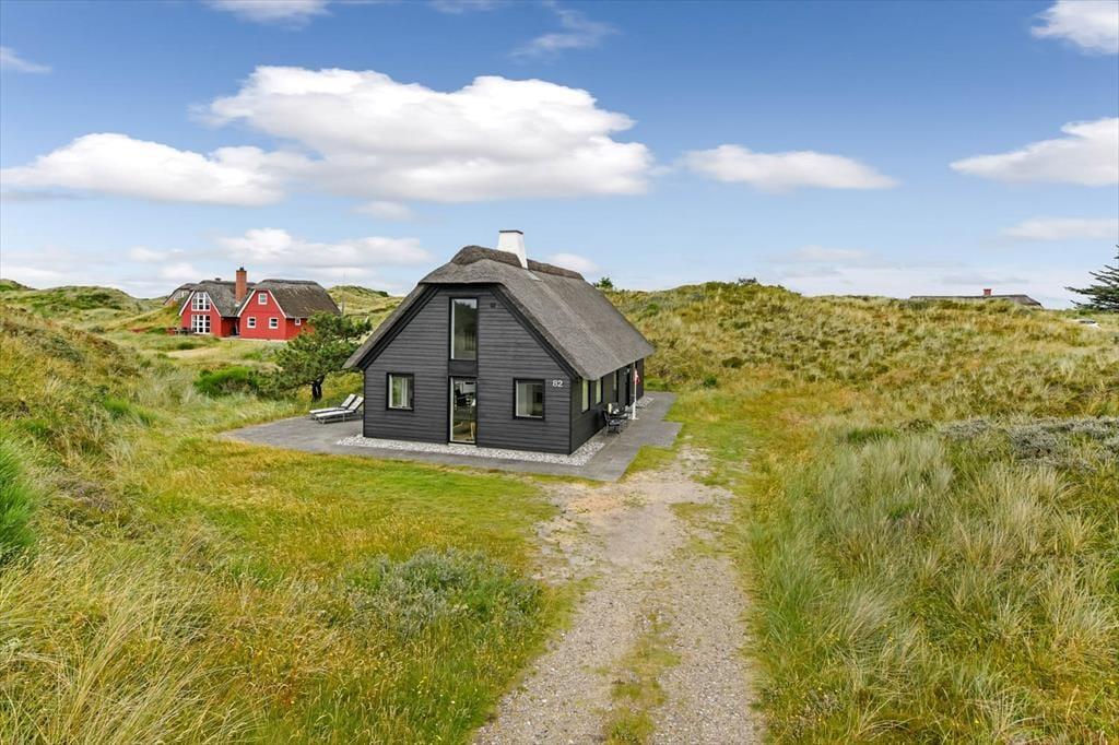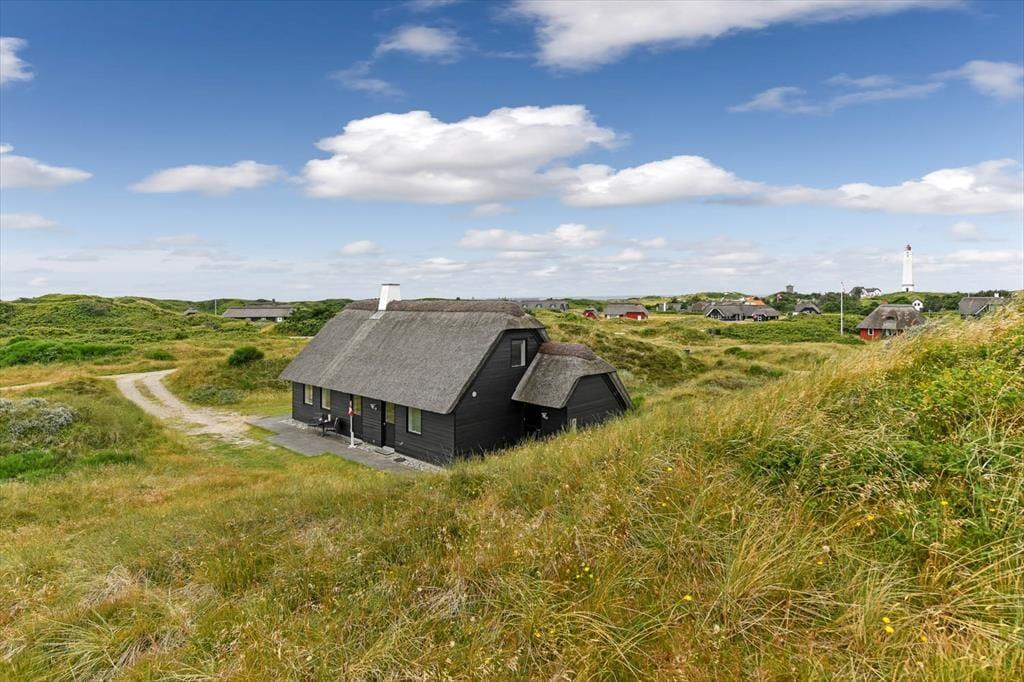 Det er ikke kun beliggenheden, der er særdeles attraktiv, for selve huset er elegant byggeri fra 2012. Inden bag stråtaget og den sorte træfacade venter der dig en lys og indbydende feriebolig med spabad på badeværelset, brændeovn i stuen og komfortable senge på de tre soveværelser. Køkken og stue ligger samlet i stueplan, så hvis det er dig, der står for madlavningen, kan du stadig føle dig tæt på din familie eller venner. Vil I hygge jer sammen, kan I finde kortspillet frem og slå jer ned ved spisebordet – hvis ikke det er sofaen og Smart-TV’et, der lokker. En anden dejlig opholdsplads er førstesalens opholdsstue, hvor du har den mest fantastiske udsigt ud over klitterne og til det hvide fyrtårn.