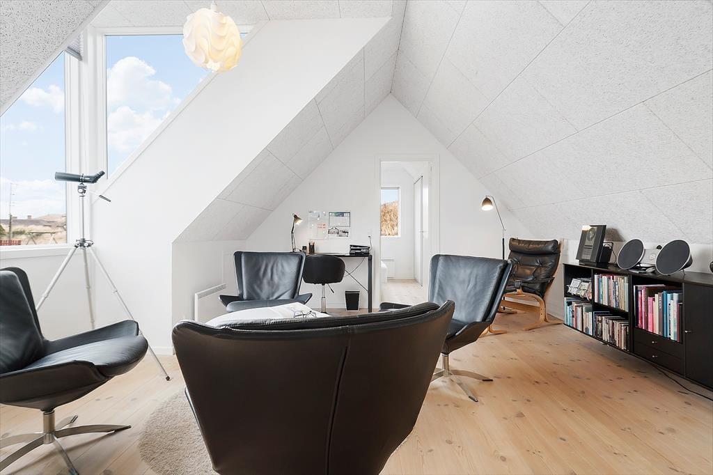 Drømmen om at holde ferie i klitterne bliver virkelig udfriet her på adressen. På det store og lækre terrassemiljø, der breder sig rundt om sommerhuset, sidder du godt skærmet af det bugtende, naturskønne terræn, og hvis du går helt op på klittoppen, kan du endda skimte Vesterhavet. Med lidt sol fra oven og havfrisk, salt luft i lungerne er det nemt at mærke feriefreden sænke sig og føle sig let til mode – ikke mindst, hvis du slutter dagen af med at finde havegrillen frem og diske op med et sommerligt måltid under åben himmel.