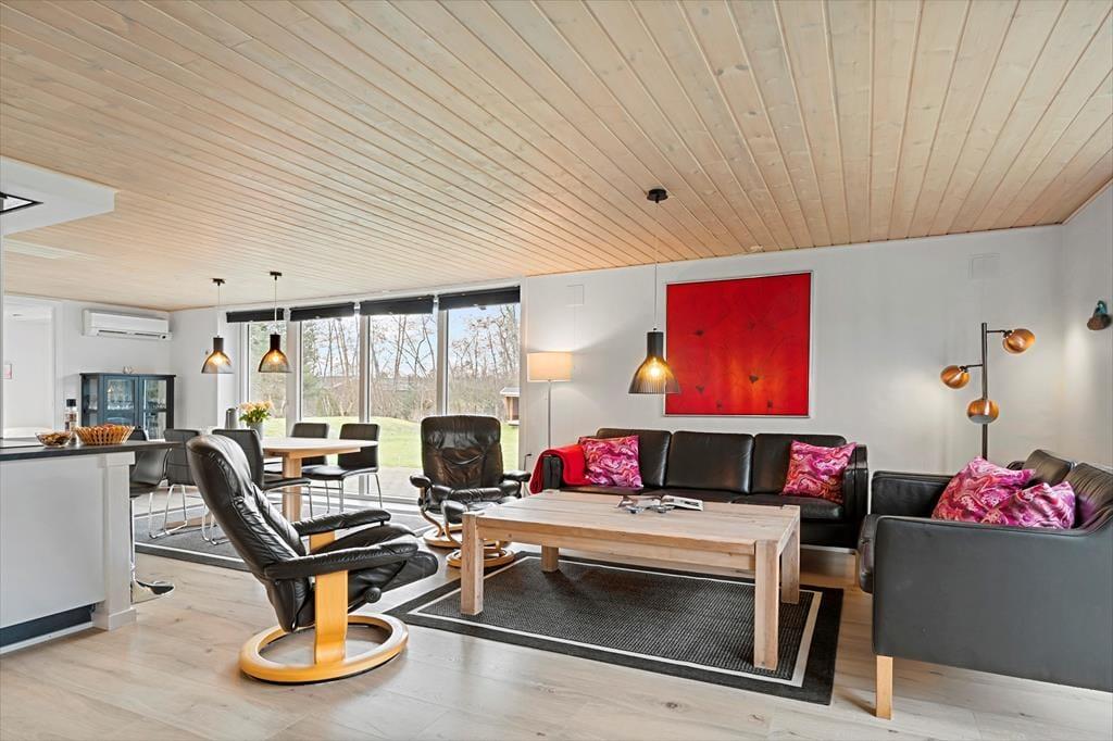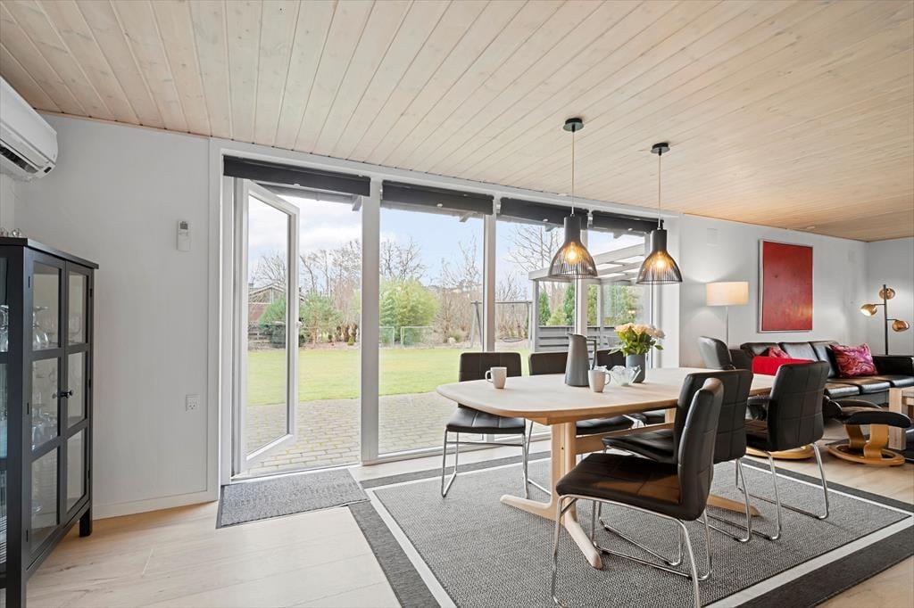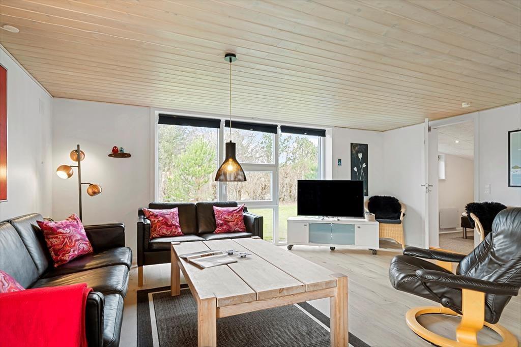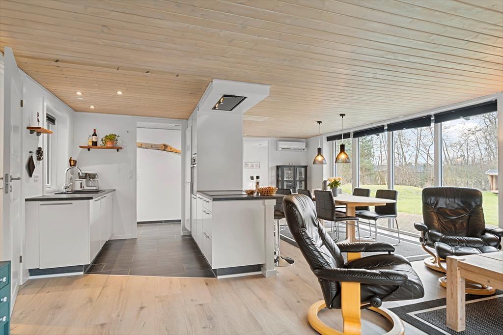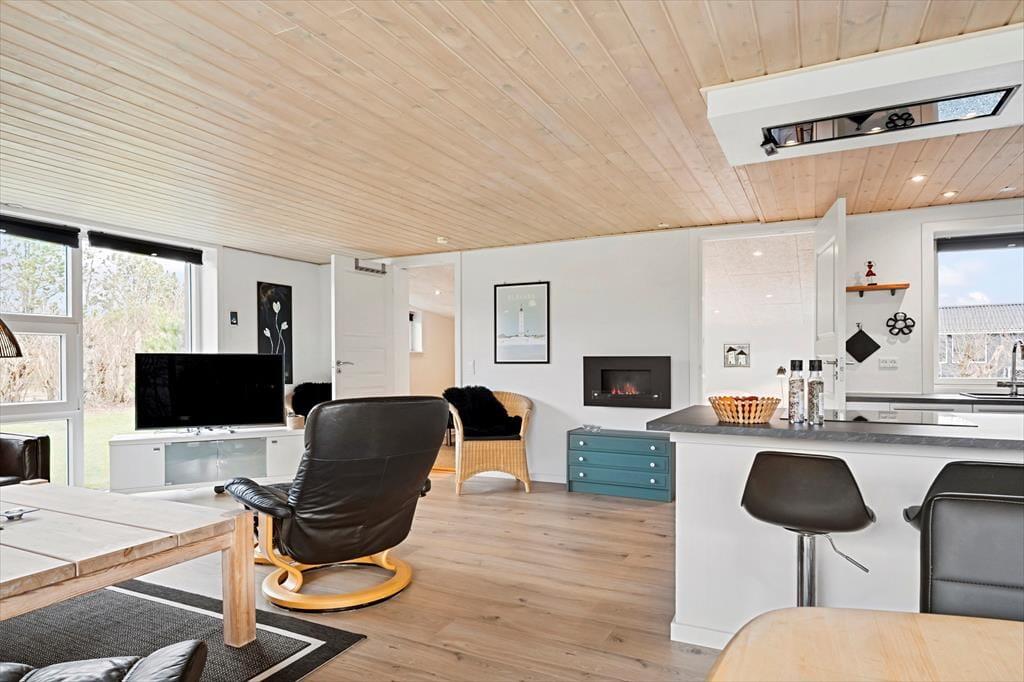 Hvis du længes efter nogle tilbagelænede feriedage helt uden planer, er det herligt at kunne koble af i sommerhusets lyse og velindrettede opholdsrum, hvor køkken og stue er forenet. Du kan slænge dig i timevis i sofaafdelingen med bøger eller blade, hvis det skal være, eller måske er det endelig nu, at I kan få spillet de timelange brætspil, I har drømt om så længe? Hvis du ikke har madtjansen, kan du holde kokken med selskab fra barstolene ved køkkendisken, og når måltidet for længst er ovre, og det snart er sengetid, kan I sige godnat og gå til ro på husets tre gode soveværelser.