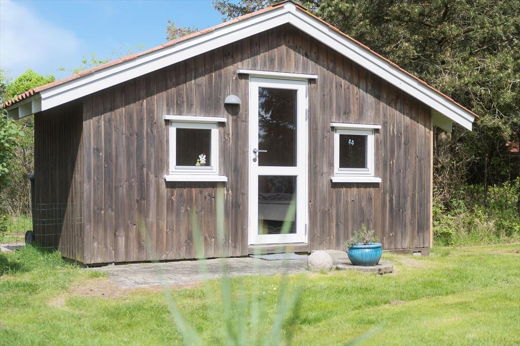 Skinner sommersolen over Blåvand, er det fristende at tilbringe det meste af ferien ude på en af de to terrasser, der breder sig i forlængelse af træhuset. Den ene terrasse har et overdækket areal, hvis du får brug for at søge ly for en forbipasserende byge, og hvis det er skygge, du leder efter, kan du sætte dig på græsplænen under grundens smukke træer. Mens du slapper af i havestolen, kan du begynde at tænke over, om aftensmaden skal tilberedes under åben himmel – og takket være den centrale adresse kan du hurtigt nå ind til Blåvands slagter eller fiskebutik, hvis du mangler noget at putte på grillen.