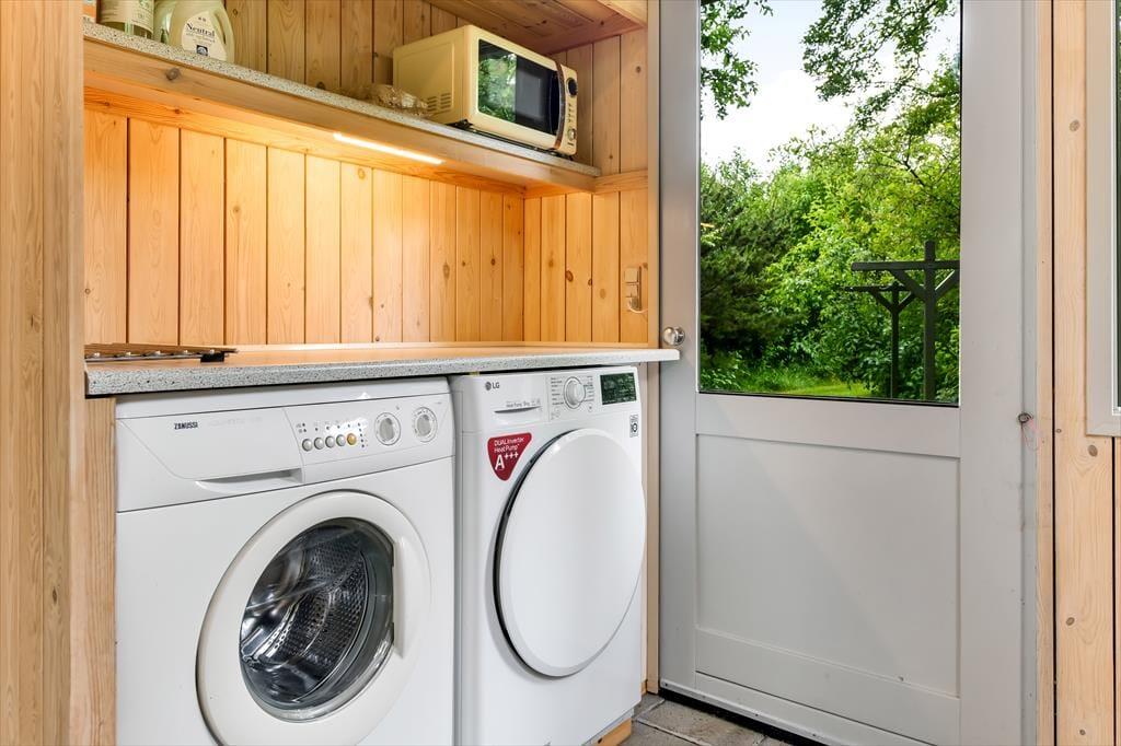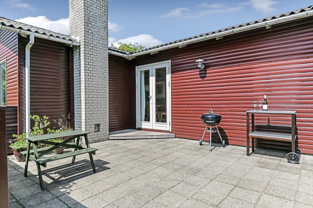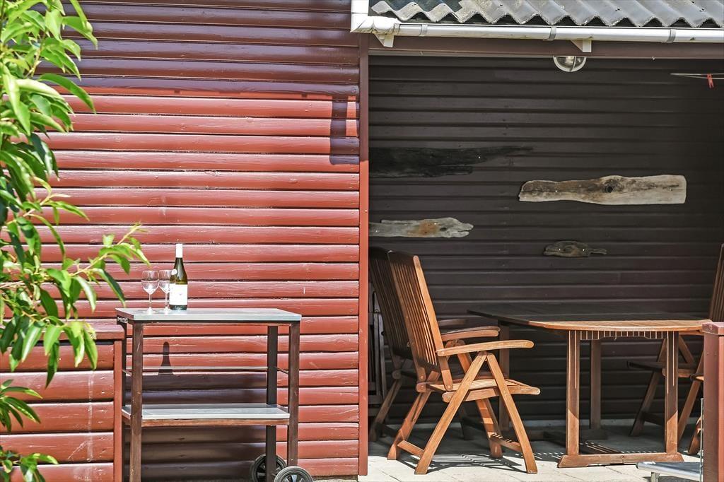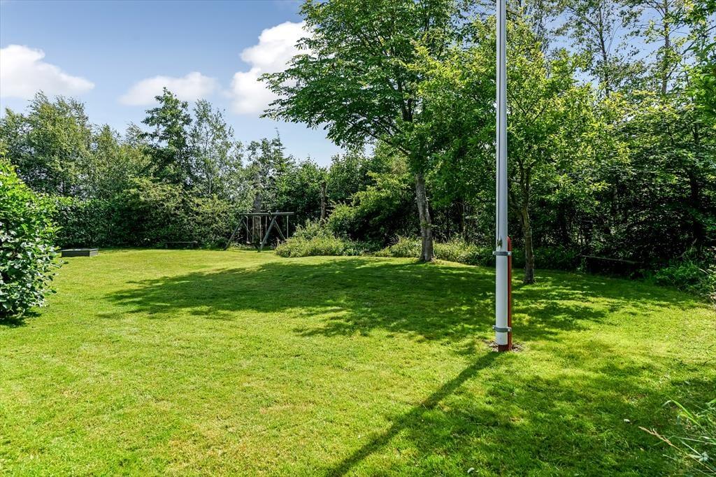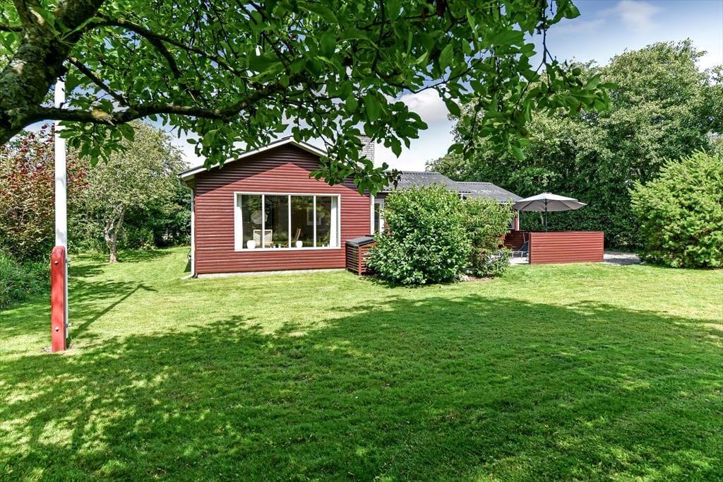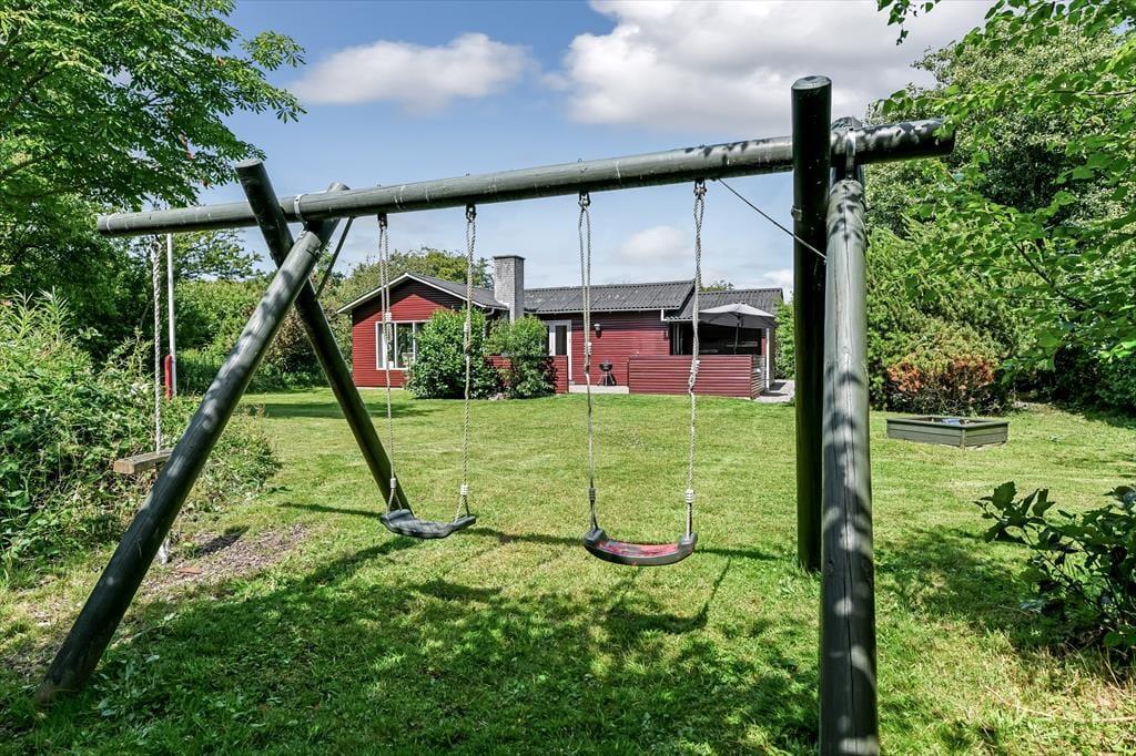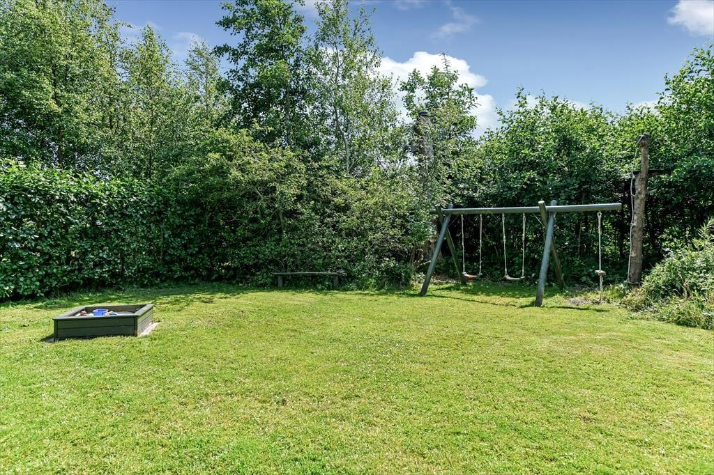 Haven er dejlig stor og grøn. På varme forårs- og sommerdage er det ganske enkelt vidunderligt at lege i haven med børnene og slappe fuldstændig af i fredelige omgivelser. På den sydvendte terrasse bliver du forkælet med masser af sol – skygge giver det overdækkede terrasseområde efter behov. På græsplænen kan du tumle rundt med dine børn og jeres hund eller spille vikingespil og andre underholdende udendørsspil. Til de mindste feriegæster står en sandkasse og en gynge klar.