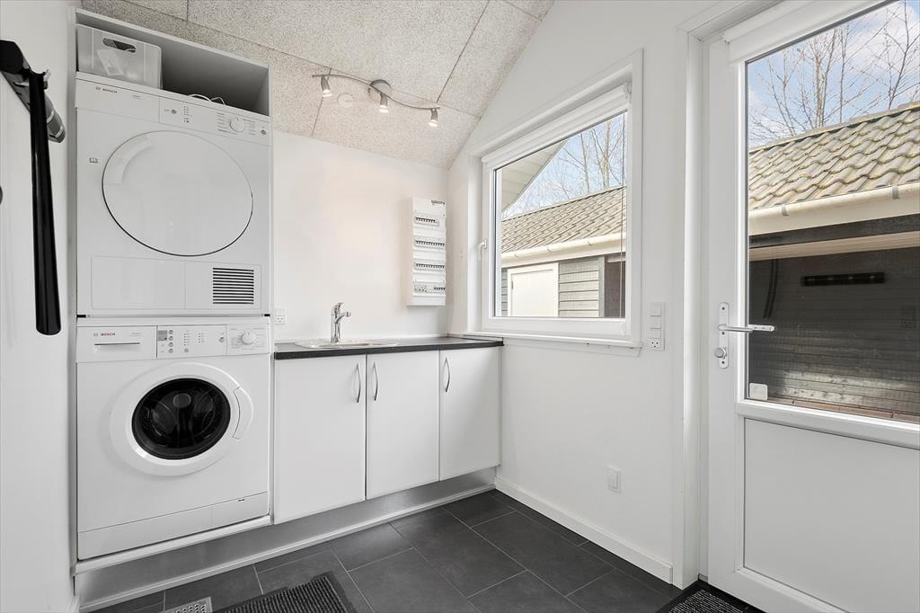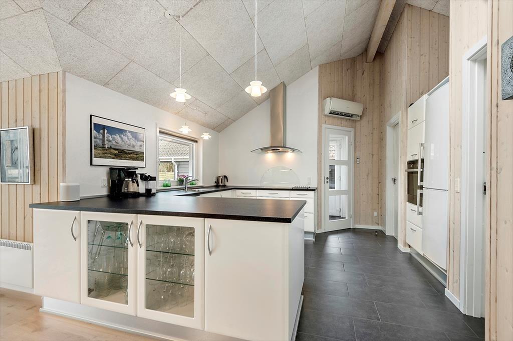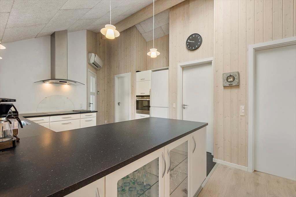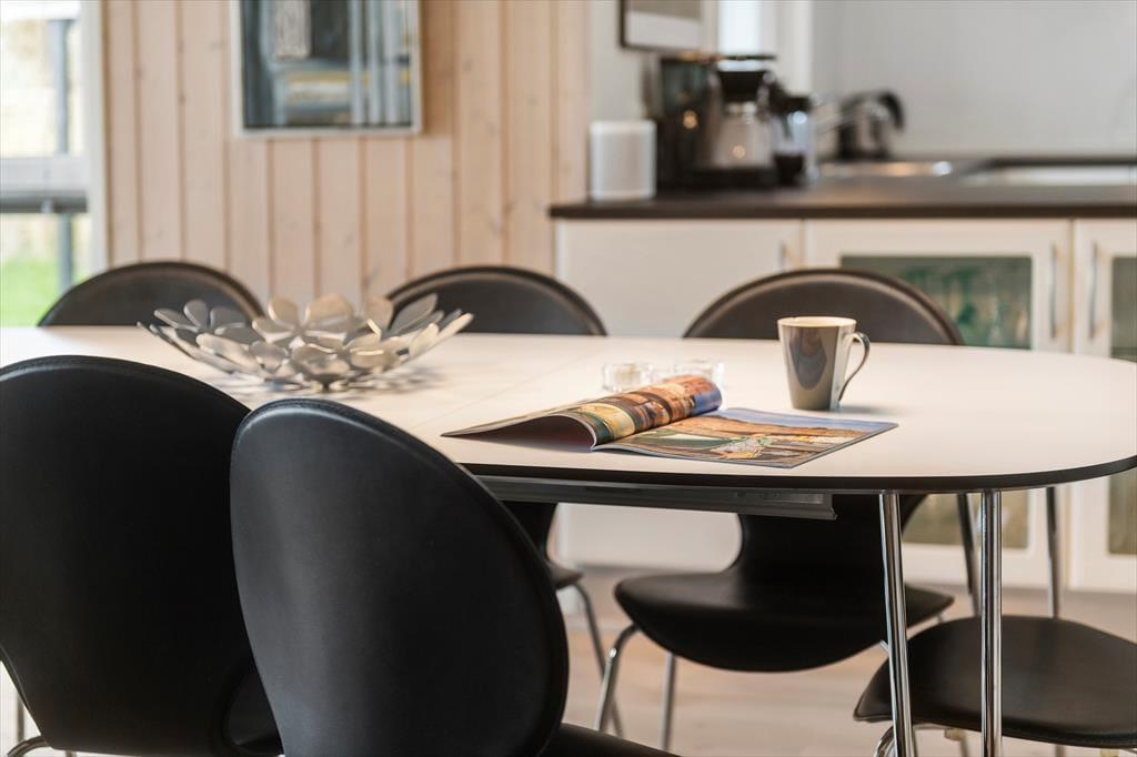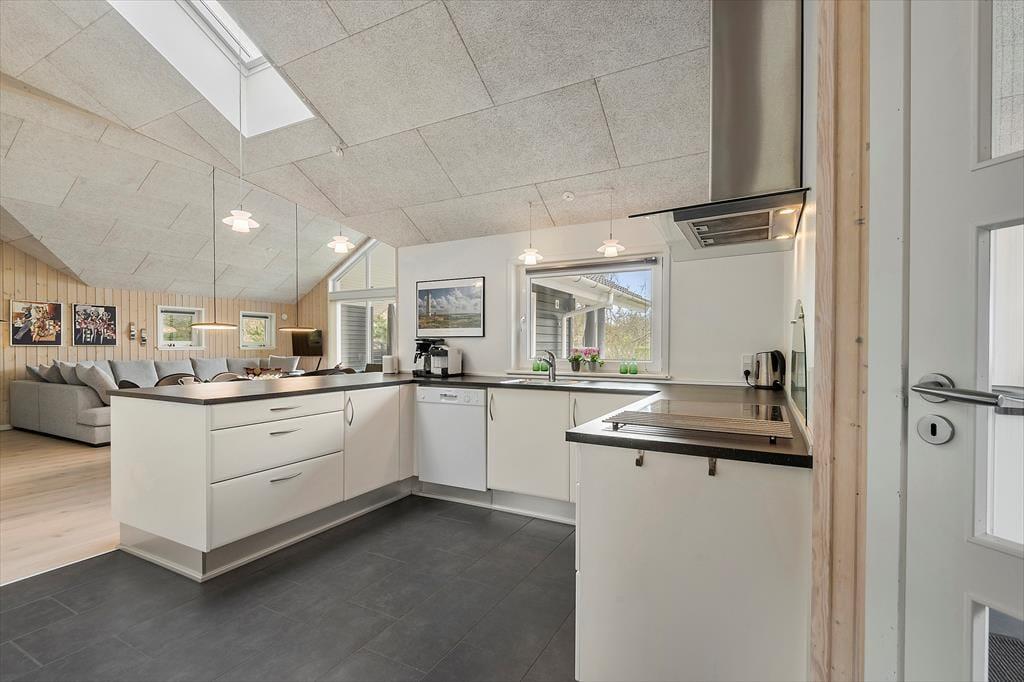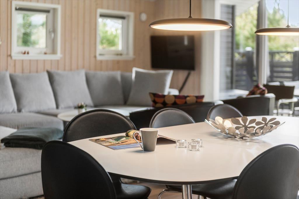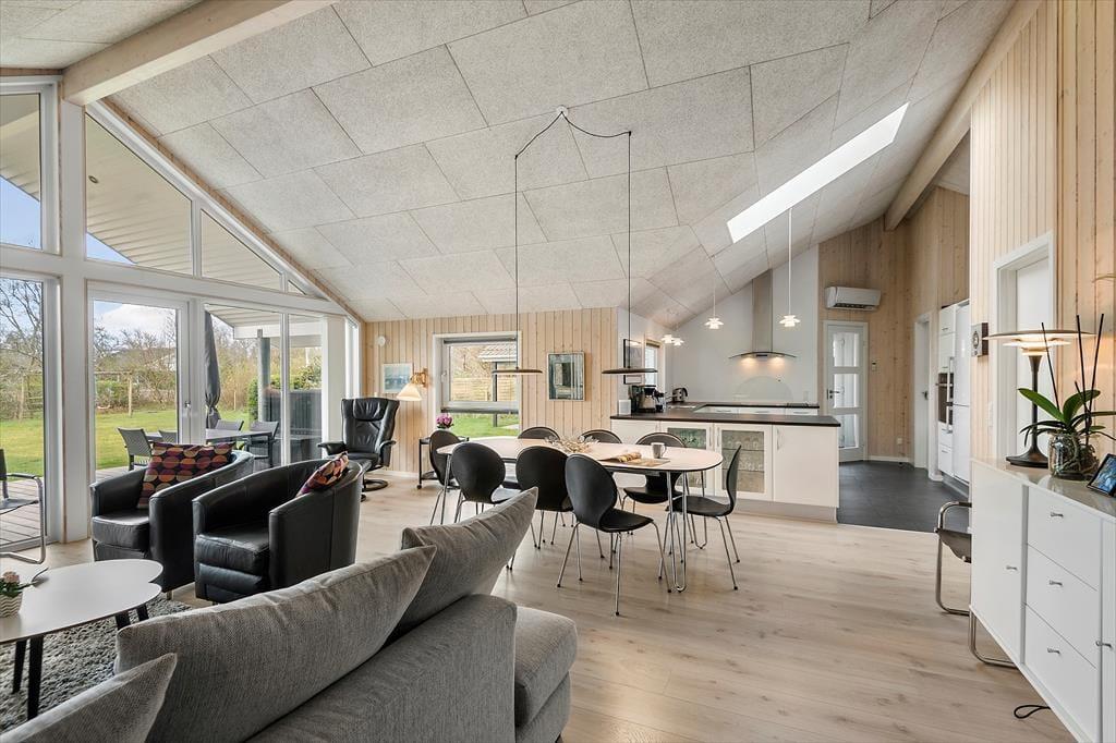 Det er fristende at tilbringe en stor del af ferien inden døre i sommerhuset, hvor de velindrettede rum emmer af hygge og afslapning. Hvis du mest af alt ser frem til at lave mad, hyggesnakke og have god tid med familien, kan du glæde dig til at være i det lyse opholdsrum, hvor køkken og stue ligger i åben forbindelse. Det moderne køkken er rummeligt og veludstyret, og en brændeovn står klar nær sofaafdelingen til at sprede ekstra varme, hvis det er nødvendigt. Et velgørende spabad og en saunatur kan også lade sig gøre på det største af husets to badeværelser – og hvis feriedagen også har budt på udendørs aktiviteter og frisk havluft, kan du og dine kære næsten være sikre på at sove godt og længe på husets fire soveværelser.