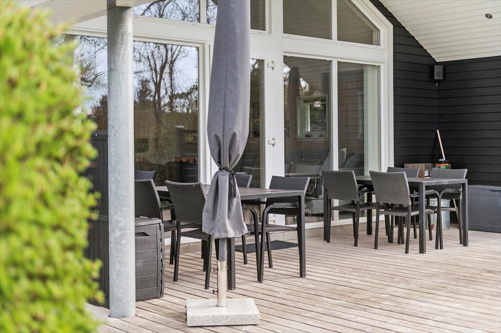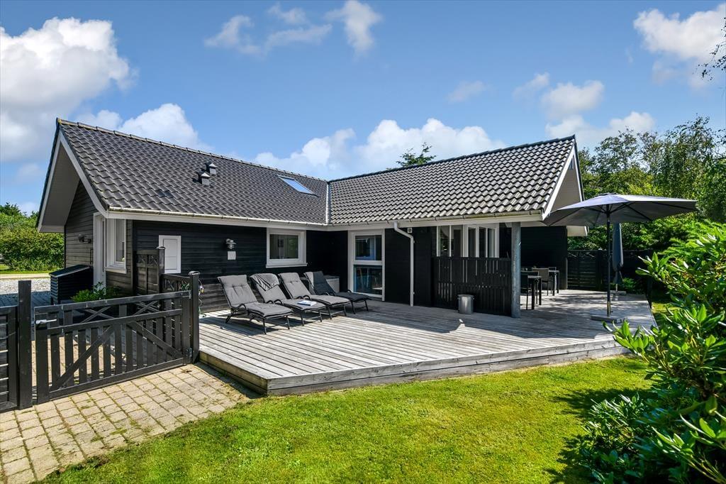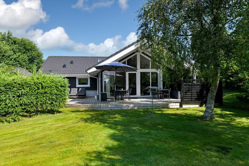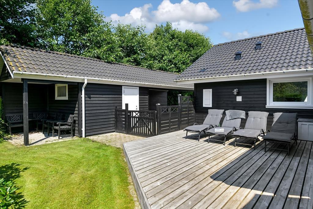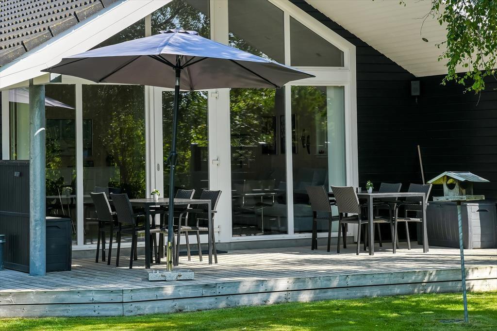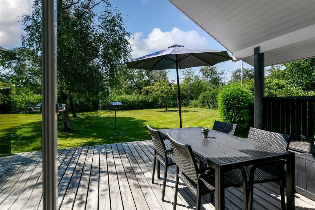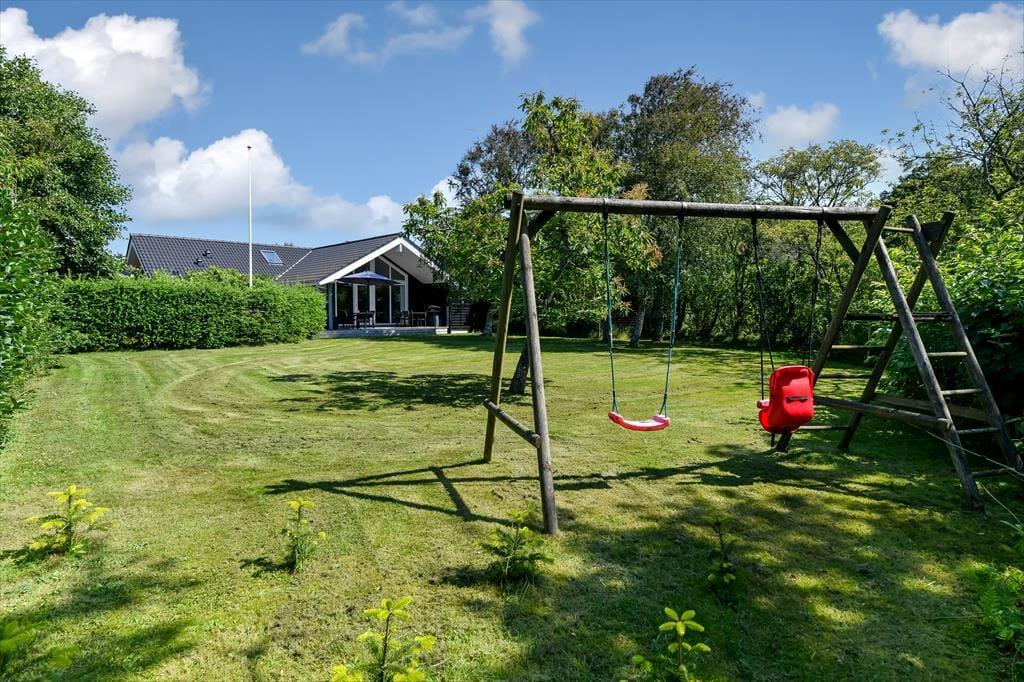 Haven er en skøn oase, der vil appellere til hele familien. Grønne hække skærmer terrassearealerne godt af og opdeler udemiljøet i flere, dejlige rum – og mon ikke hækkene også er med til at gøre det endnu sjovere for børnene at lege gemme? Gyngerne og legetårnet er sikkert også et hit for de yngste feriegæster, mens de lidt ældre formentlig vil falde for det skønne terrassemiljø, der byder på både åbne og overdækkede opholdspladser. Solforholdene er glimrende her i den sydvendte baghave, og ud mod vejen har du god plads til at parkere bilen i indkørslen.