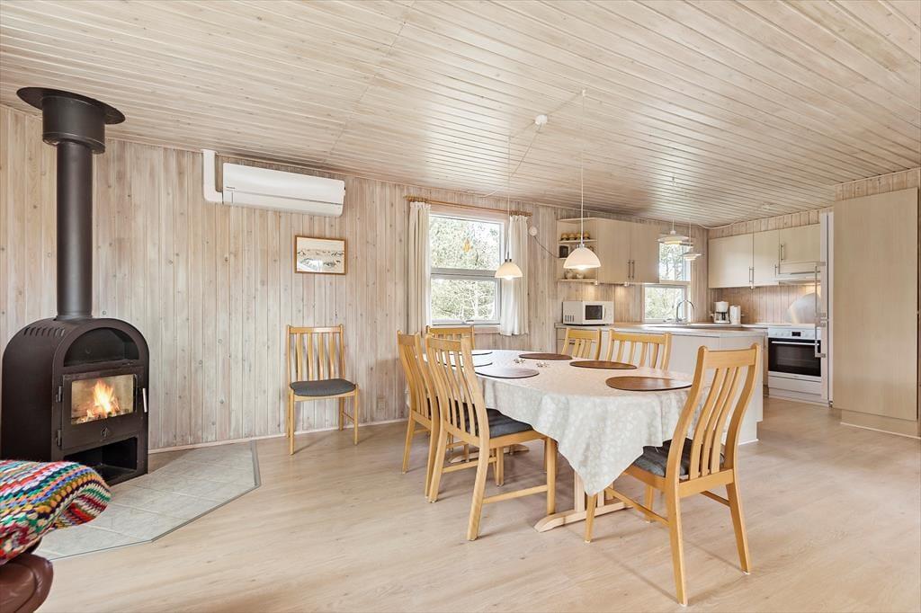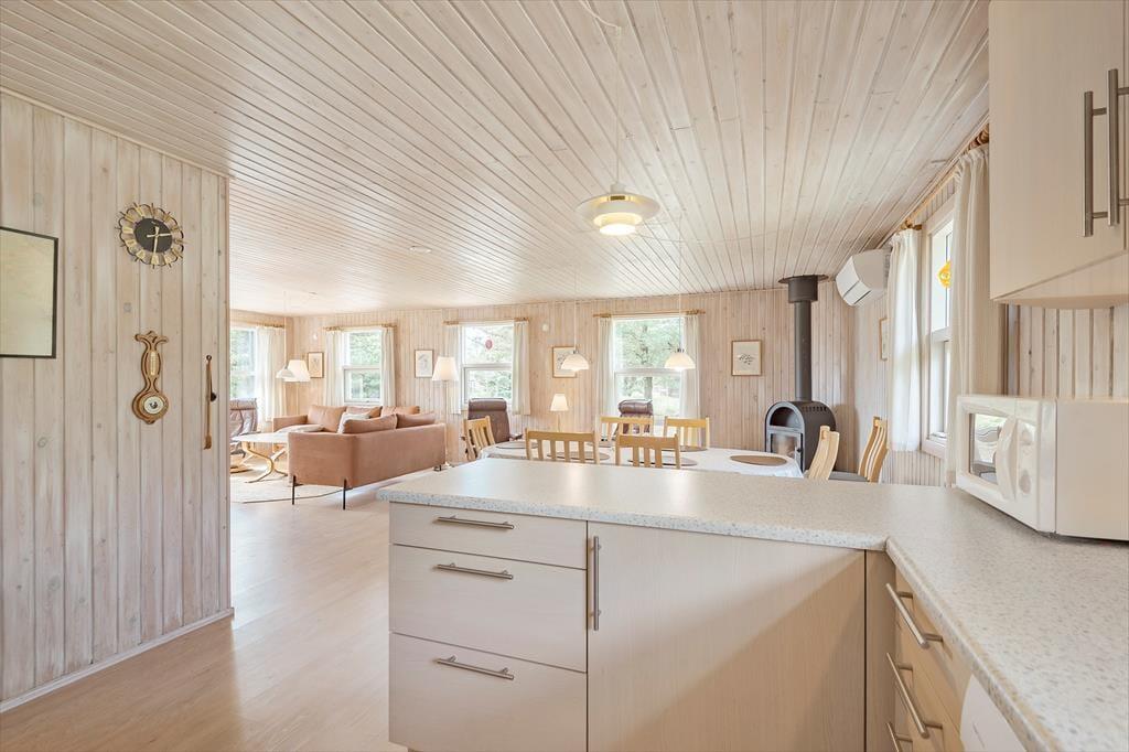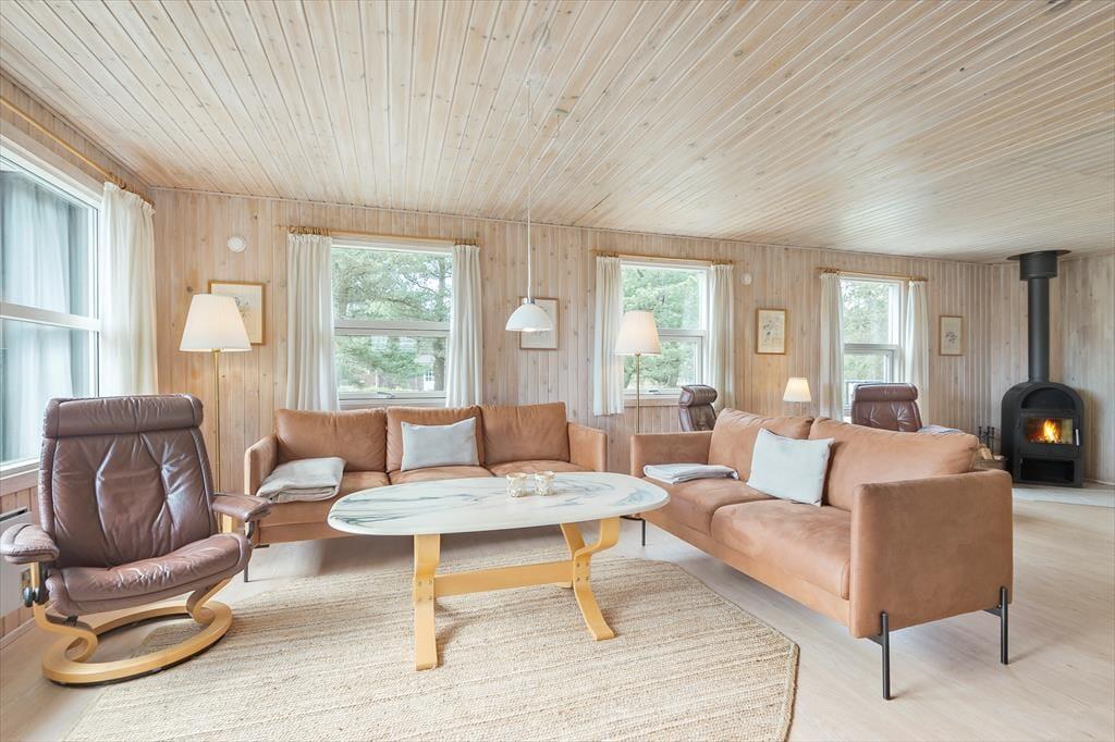 Sommerhuset har en enkel, men glimrende planløsning med tre gode soveværelser, et lyst brusebadeværelse og en hyggelig stue med integreret køkken. Det er sikkert sidstnævnte, du kommer til at tilbringe de fleste af døgnets vågne timer i – når du altså ikke er ude for at udforske Blåvand eller dase på stranden. Hvis du mest af alt har lyst til at hygge igennem inden døre med nybagte boller, brætspil og afslapning i sofaen, er det herligt at være her, og du har endda mulighed for at tænde op i brændeovnen, hvis det lyder fristende med ekstra varme og hyggestemning.