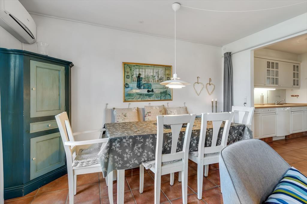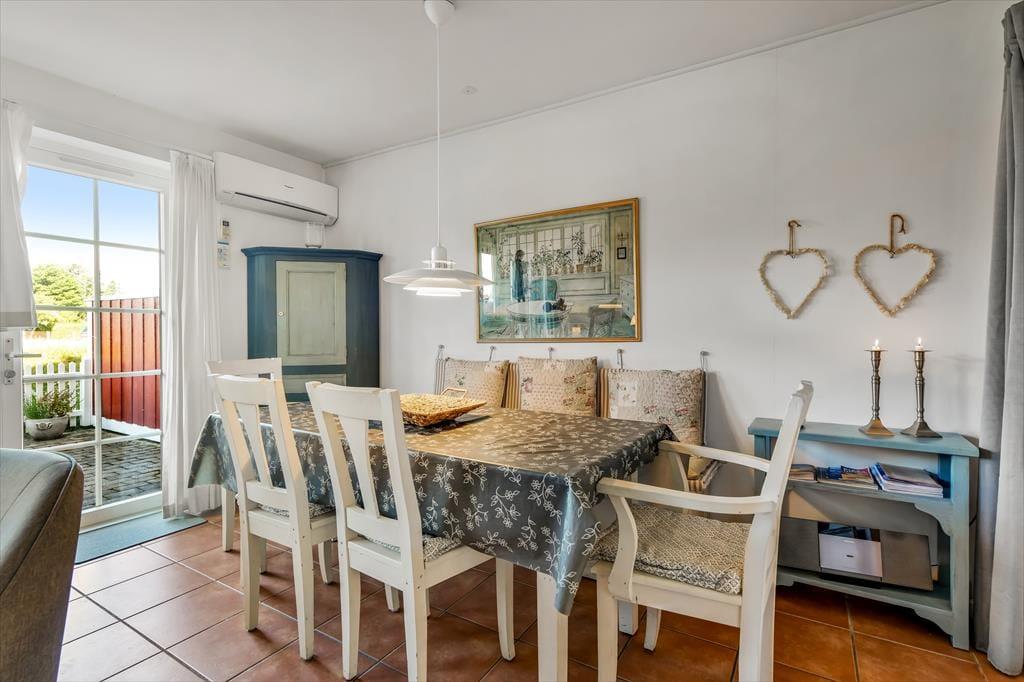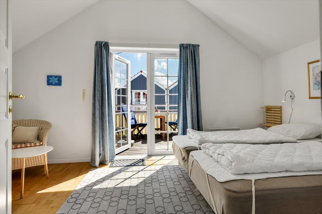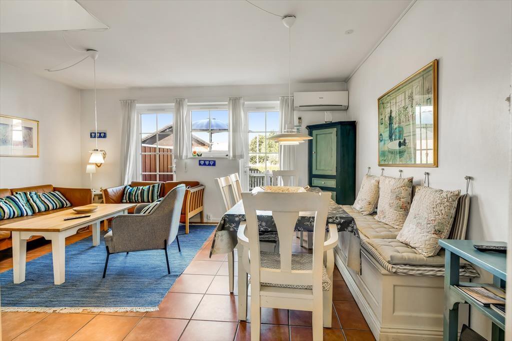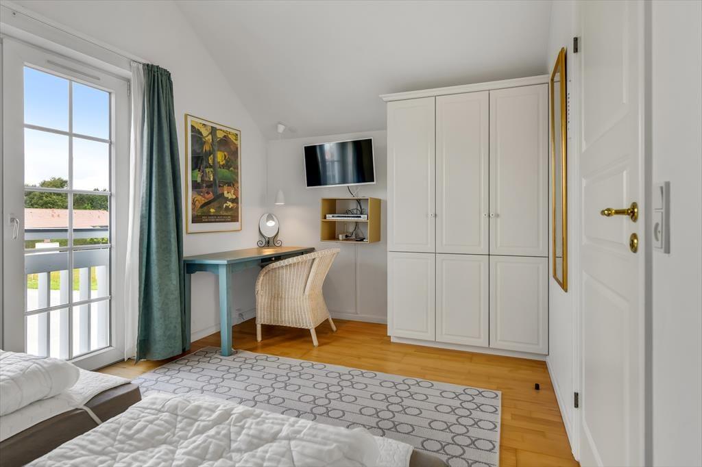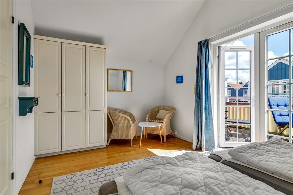 Mens det ene soveværelse er udstyret med en fransk altan, har du fra det andet direkte forbindelse til en stor altan med liggestole og et lille havebord. Hvis der ikke er sol her, har den sikkert flyttet sig om til terrassen på den anden side af huset. Her er også godt at være – for eksempel når parasollen giver skygge, der er kølige isterninger i drinken, og grillen snart er klar, så du kan forkæle familien med noget lækkert at spise.