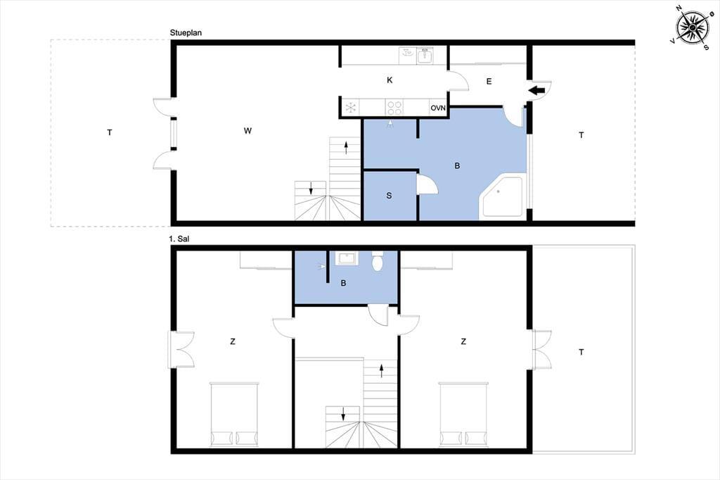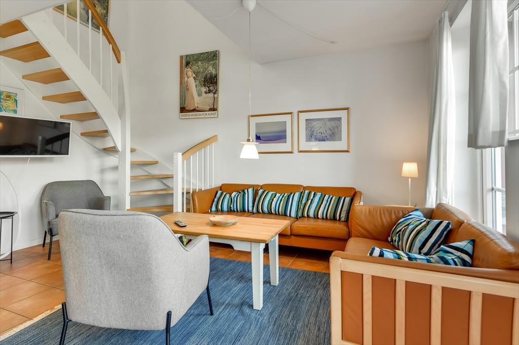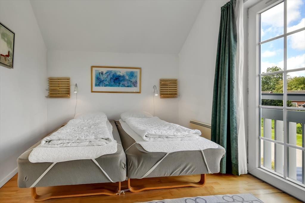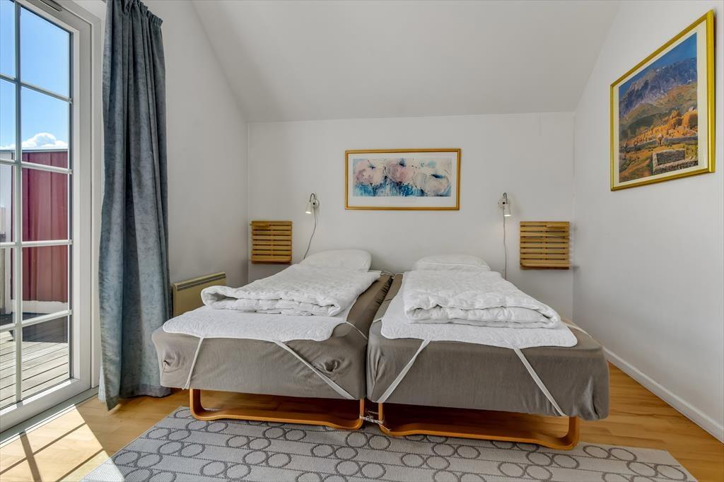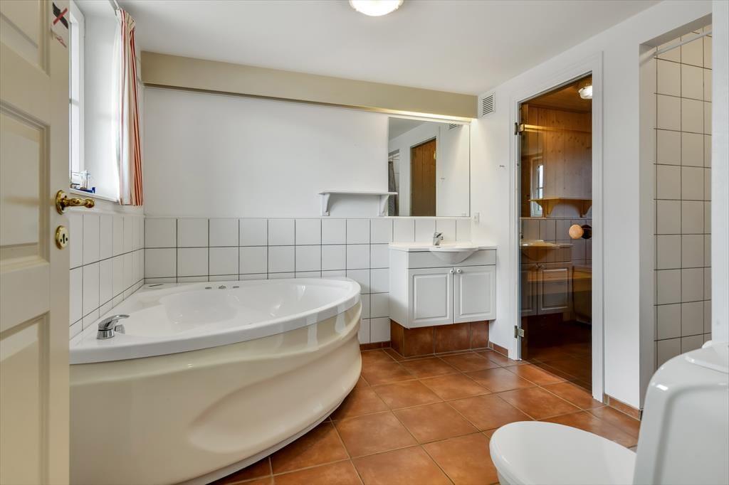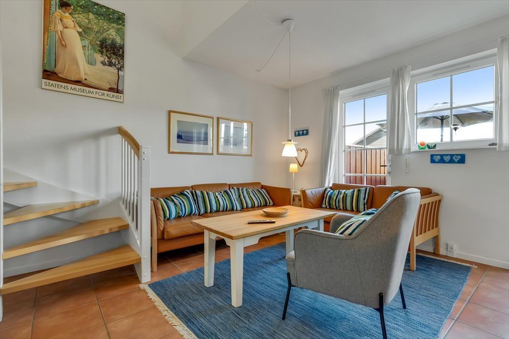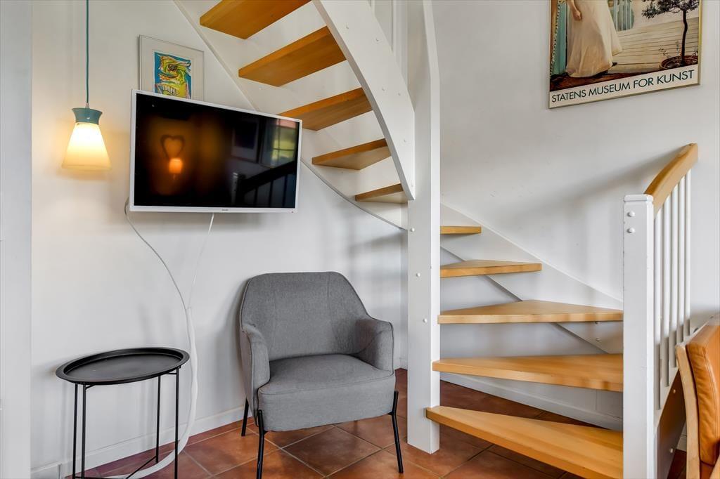 Mens det ene soveværelse er udstyret med en fransk altan, har du fra det andet direkte forbindelse til en stor altan med liggestole og et lille havebord. Hvis der ikke er sol her, har den sikkert flyttet sig om til terrassen på den anden side af huset. Her er også godt at være – for eksempel når parasollen giver skygge, der er kølige isterninger i drinken, og grillen snart er klar, så du kan forkæle familien med noget lækkert at spise.