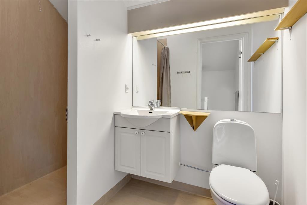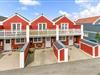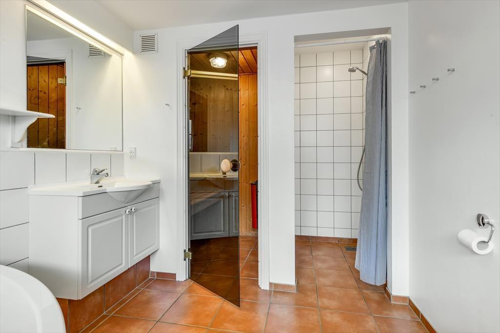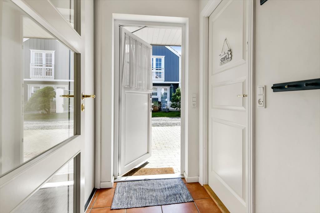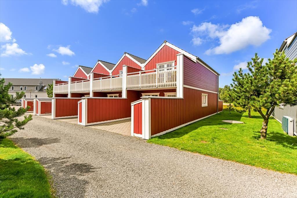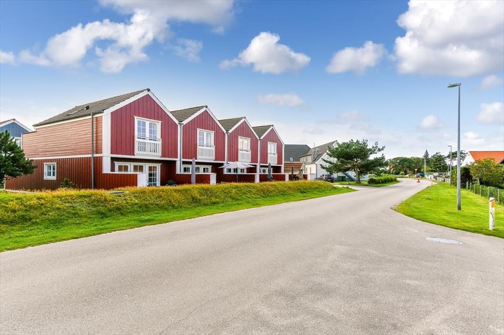 Nærmere præcist er der tale om et rækkehus med rød træfacade og en velformet planløsning i to niveauer. Inden døre er atmosfæren lys og venlig, og ikke mindst i den hyggelige stue er der skønt at være, så du kan roligt sætte dig godt til rette i sofaen eller slå dig ned med familien ved spisebordet. Fra stuen er der åben forbindelse til køkkenet, og i stueplan finder du også et rummeligt badeværelse, der lokker med både spabad og sauna. Husets andet badeværelse ligger på førstesalen, og her er der også to dejlige soveværelser, hvor du og dine kære kan sove godt og længe.