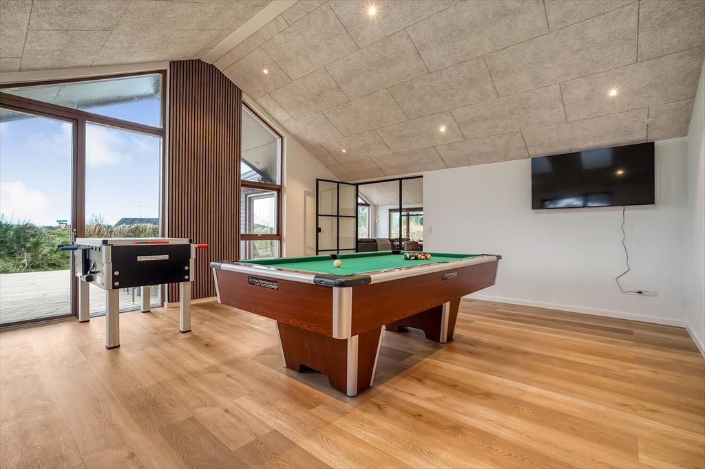 For dem, der elsker sjov og spil, er aktivitetsrummet et sandt paradis. Her kan du udfordre dine medrejsende i billard eller bordfodbold og lade konkurrencen gå lystigt derudad. Huset har desuden et velindrettet køkken, hvor feriemåltiderne kan tilberedes i ro og mag.