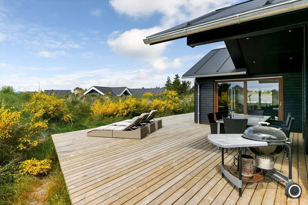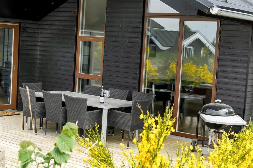 Sommerhusets udendørsområde er en sand oase, hvor du kan nyde livet under åben himmel. Terrassen er veludstyret med komfortable havemøbler, så du kan slappe af med en kop kaffe i morgensolen eller dække op til en hyggelig middag med grillaftener på programmet.
