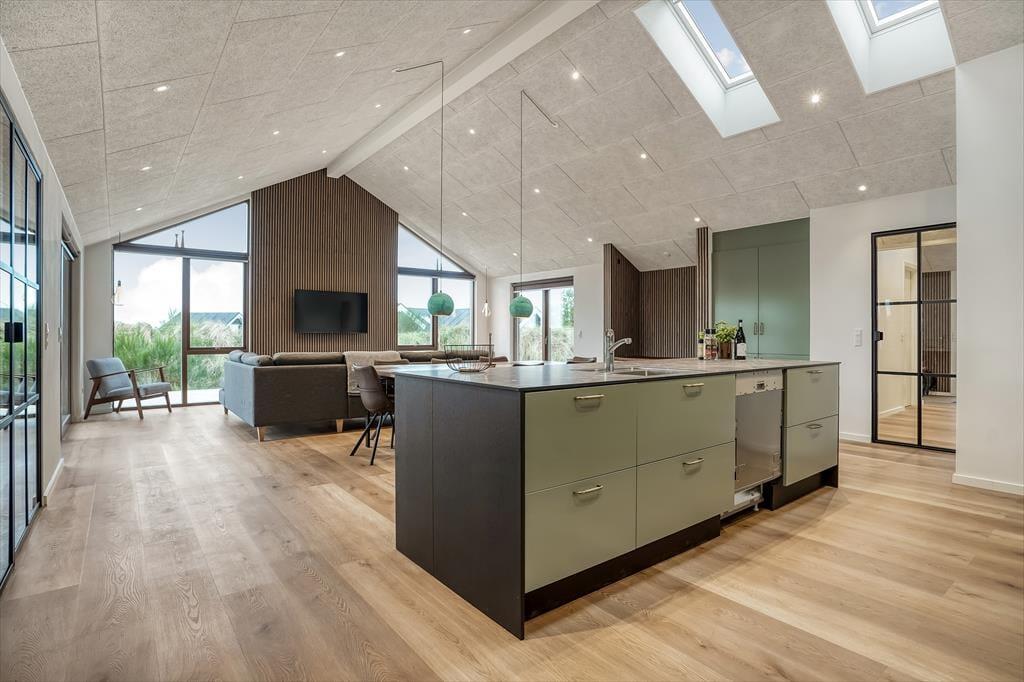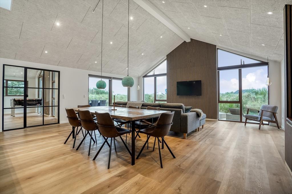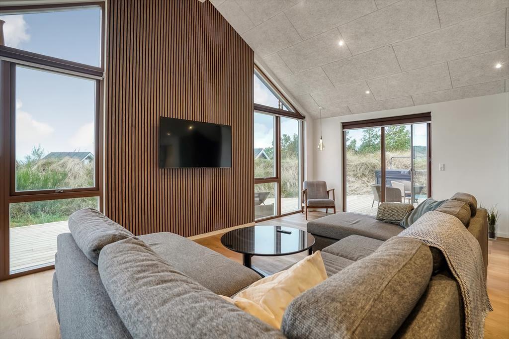 Træd indenfor i et lyst og indbydende sommerhus, hvor feriestemningen straks sætter sig. Den hyggelige stue er husets naturlige samlingspunkt med sine store vinduespartier, der lukker lyset ind og skaber en behagelig atmosfære. Efter en dag fyldt med oplevelser kan du synke ned i sofaen med en god bog eller nyde en filmaften med familien.