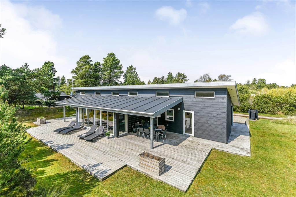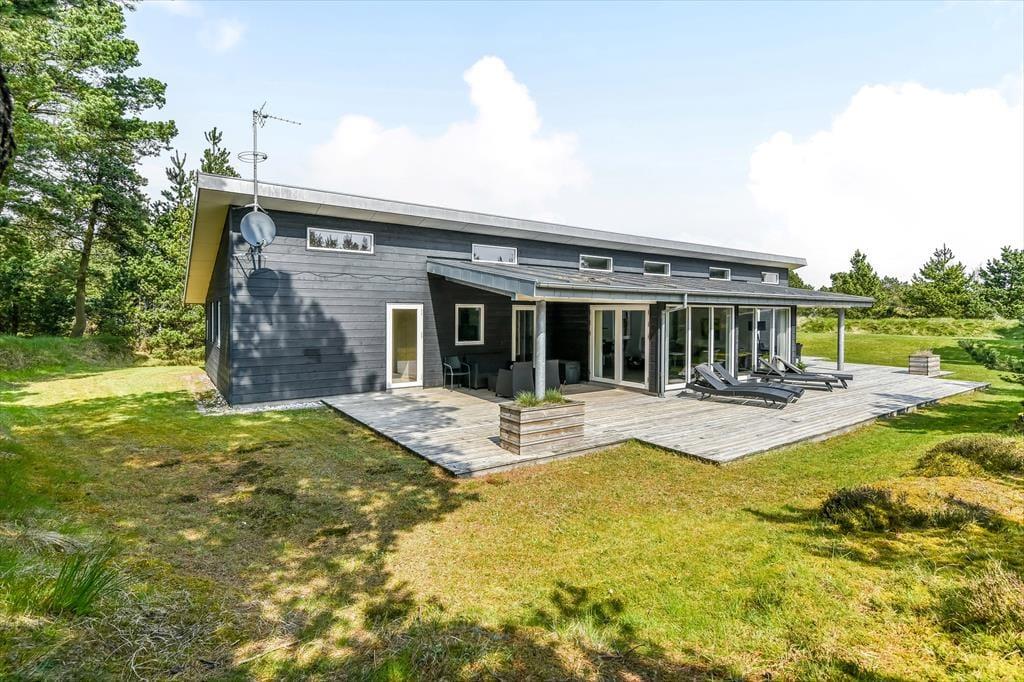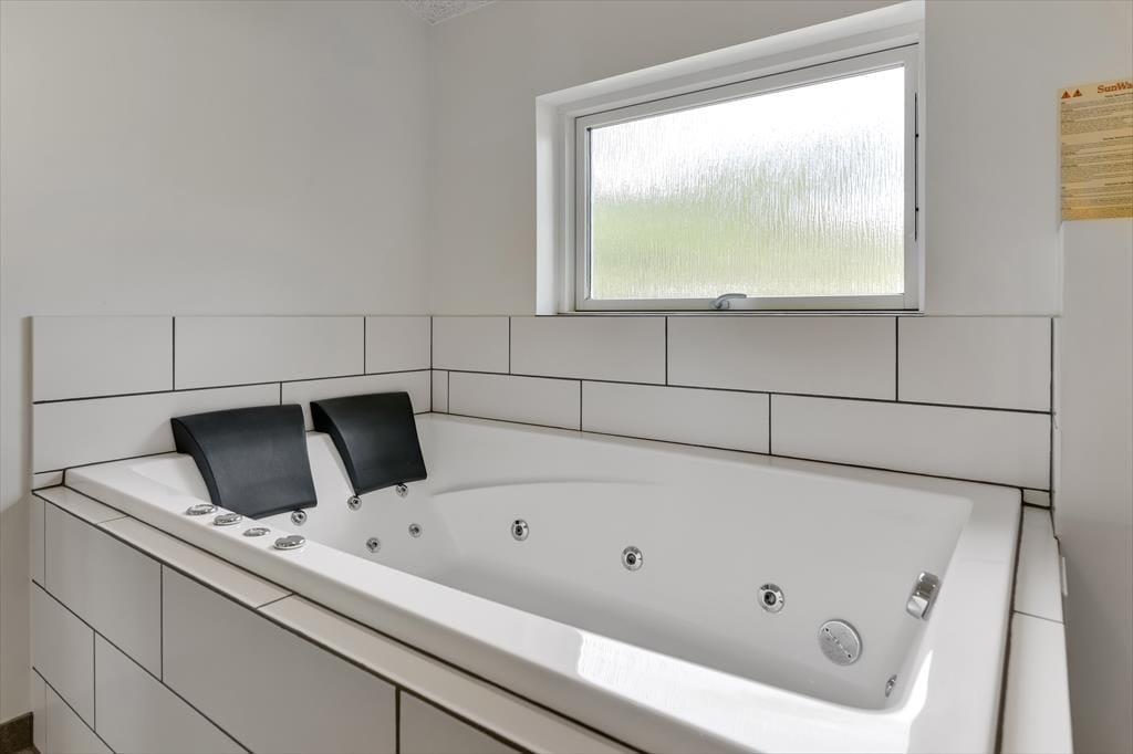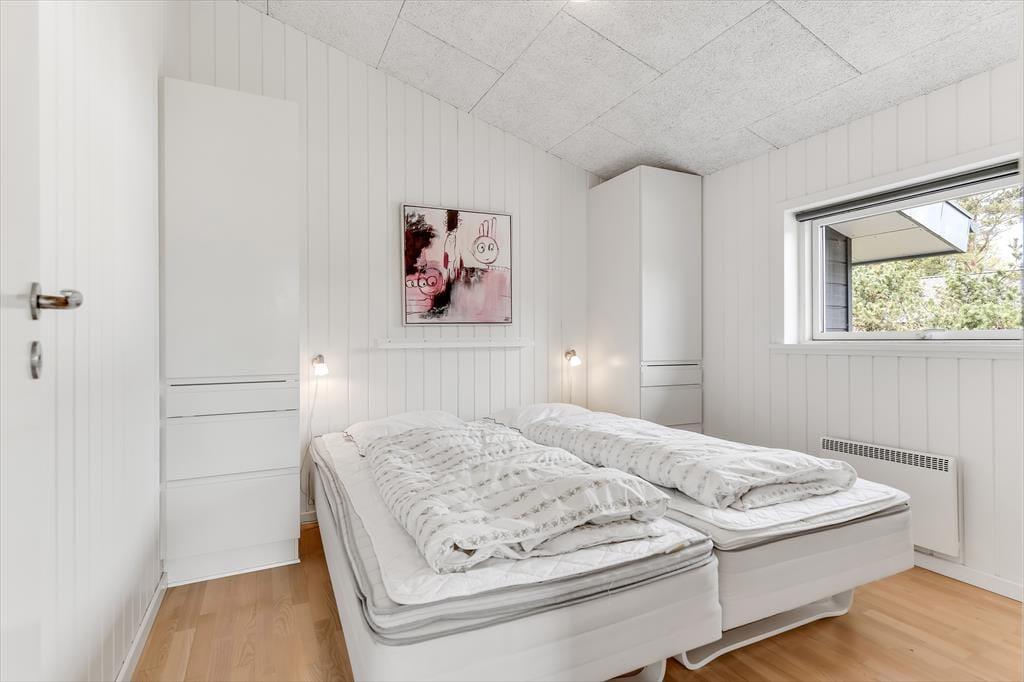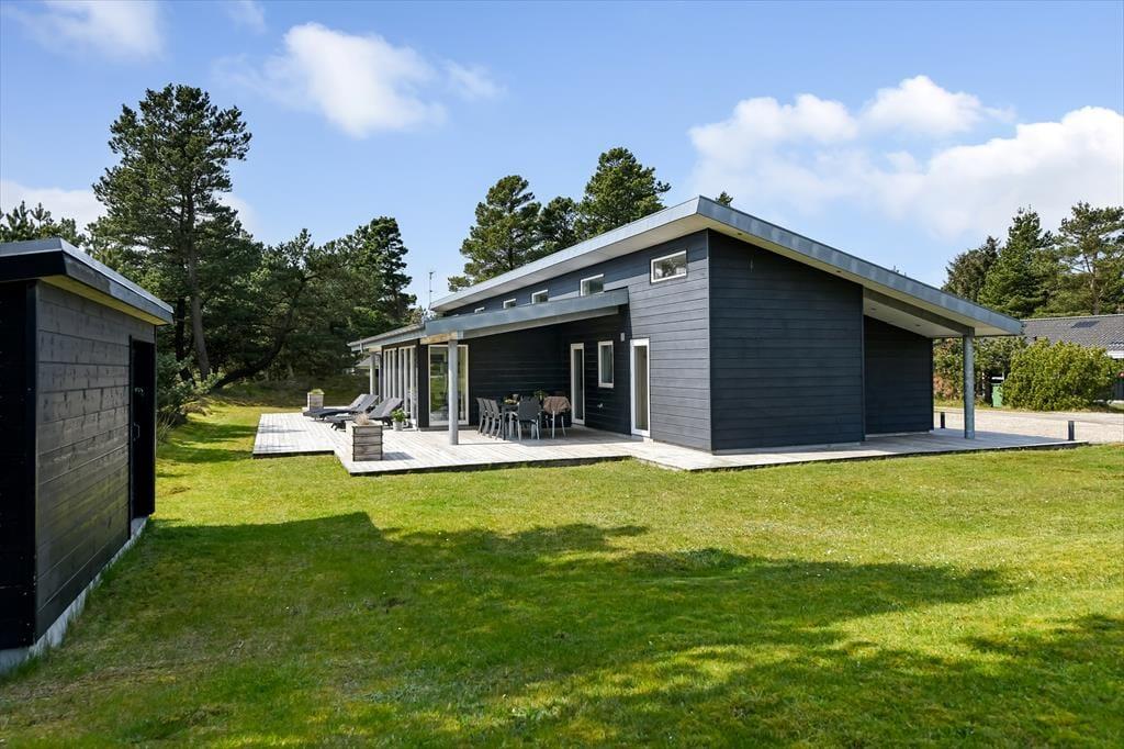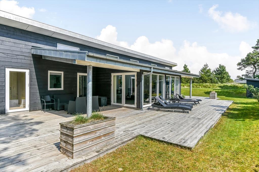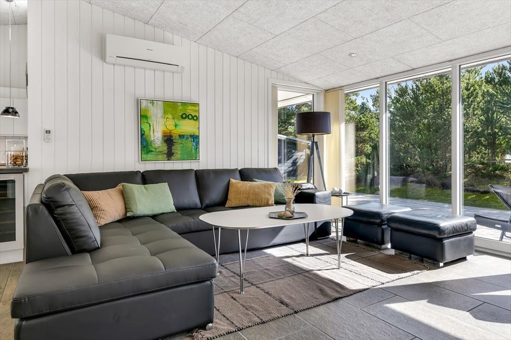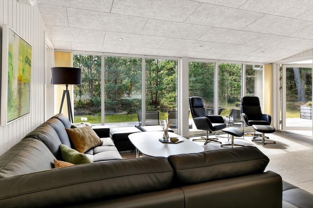Med en tjekket rumfordeling og hele 167 m2 kan sommerhuset sagtens rumme otte personer - for eksempel to børnefamilier, der gerne vil holde en hyggelig ferie sammen. Uanset hvem du er her med, kan du nyde den gode plads og rummenes stilfulde indretning, for slet ikke at tale om de lækre detaljer, der gør driverlivet endnu mere komfortabelt. På det ene af badeværelserne er der således både spabad og sauna, og i stuen står en brændeovn, der kan give måltiderne og de tilbagelænede sofastunder et ekstra strejf af varme og hygge. Skal der være lidt mere gang i den, kan du udfordre de andre i pool, bordtennis eller dart i aktivitetsrummet.