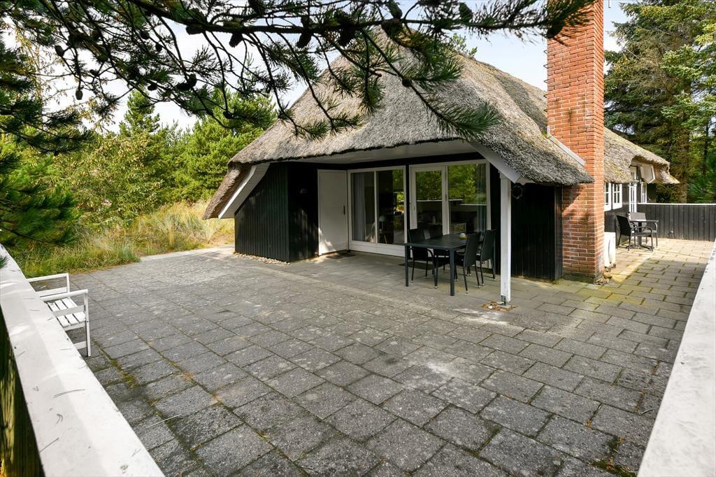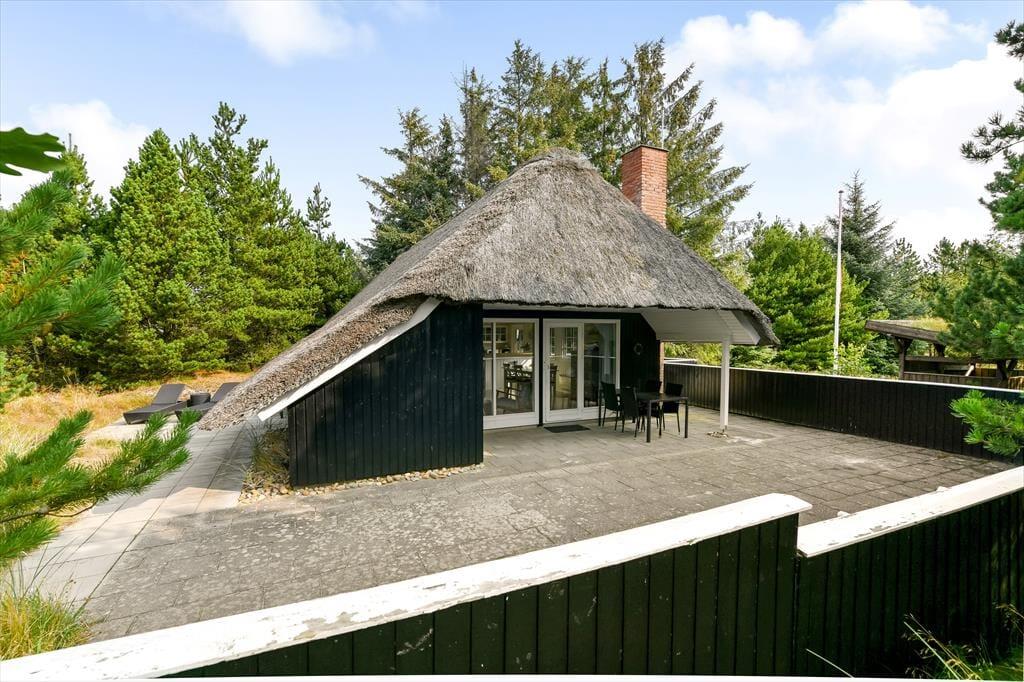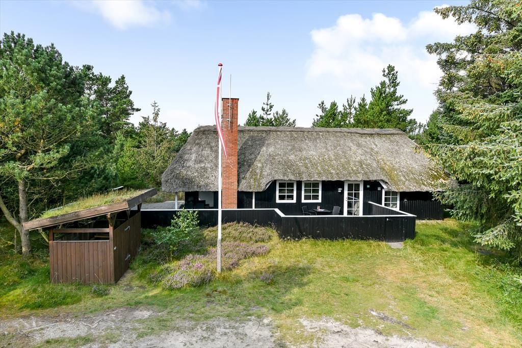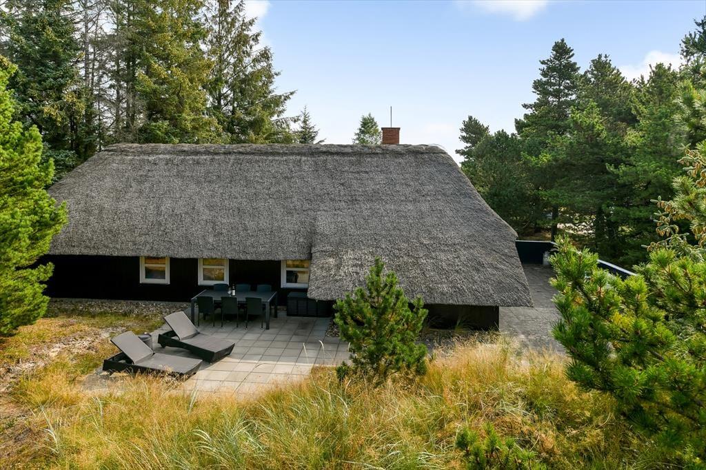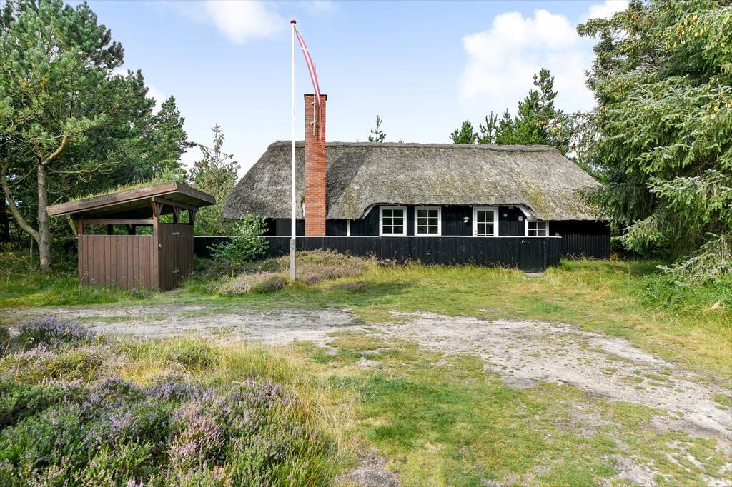Dette charmerende sommerhus er omgivet af fyrretræer og anden naturskøn bevoksning, og med sit stråtag passer det perfekt ind i ferieidyllen. Atmosfæren er tilsvarende god inden døre – og så hjælper det selvfølgelig også, at både Oksbøl Plantage og Blåvand by ligger inden for bekvem rækkevidde.
