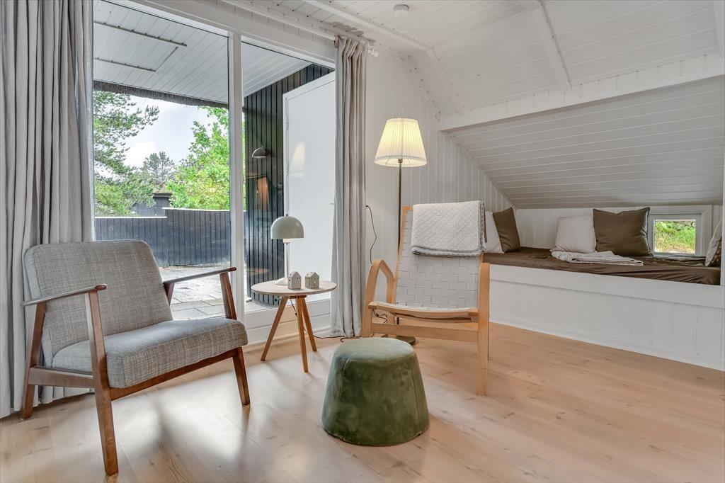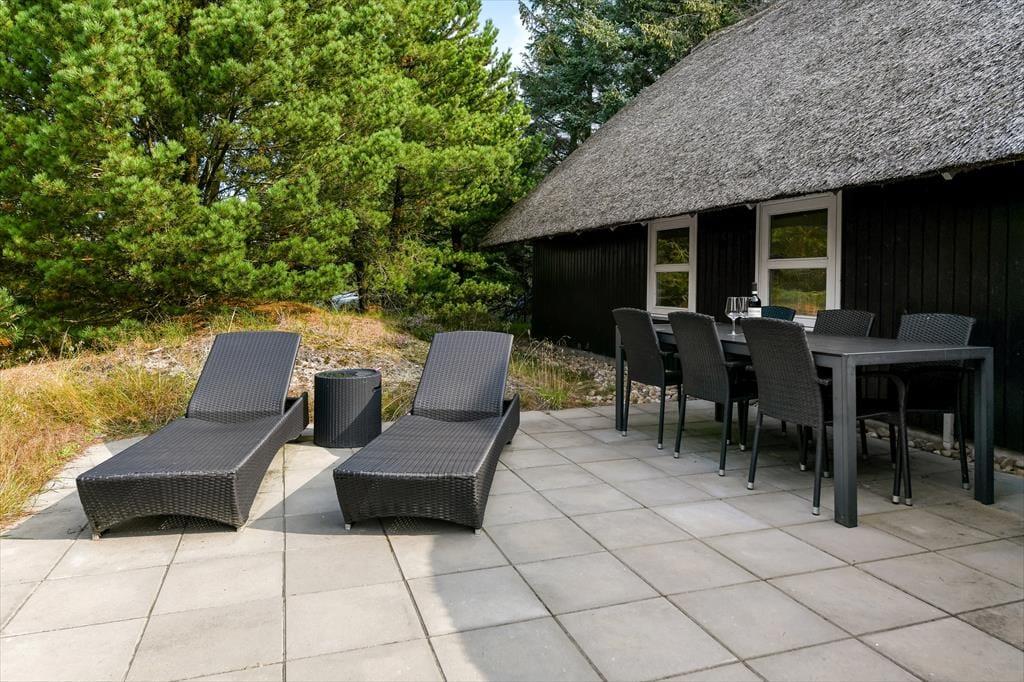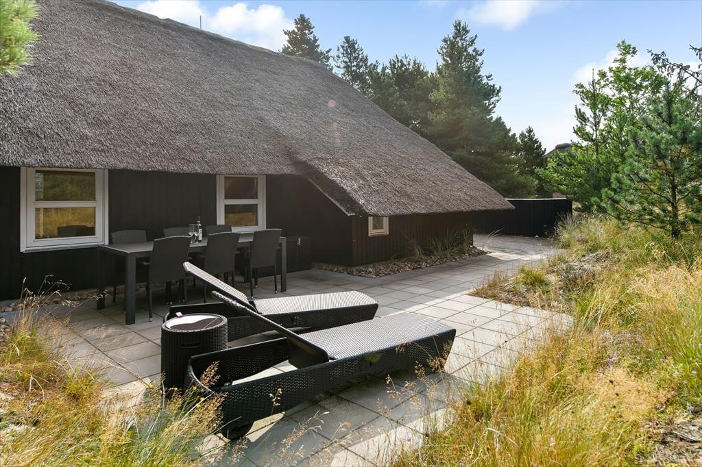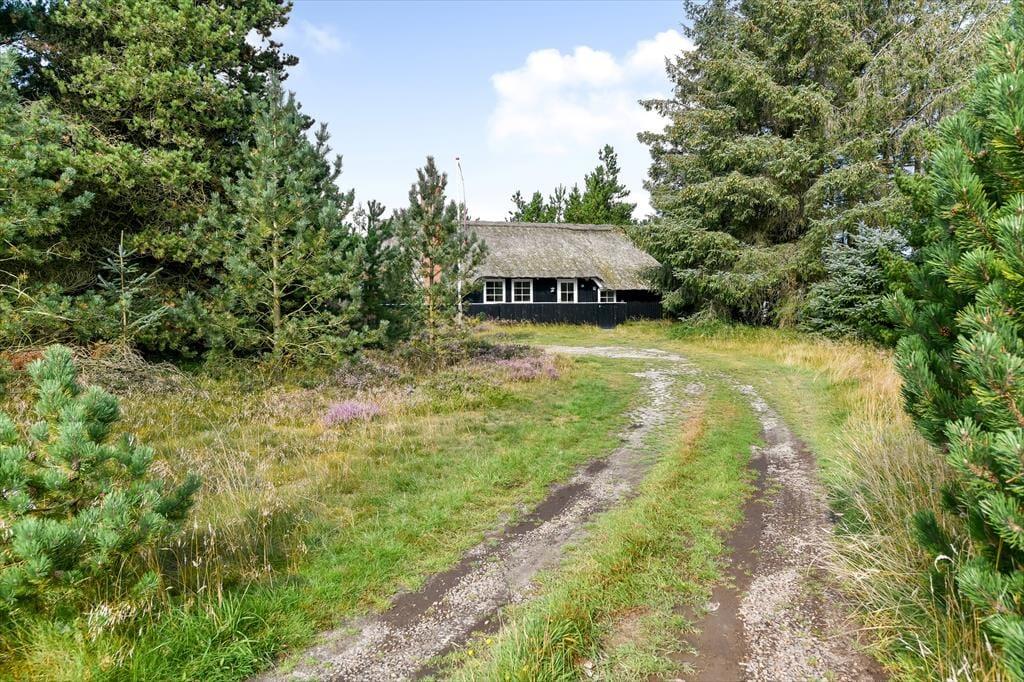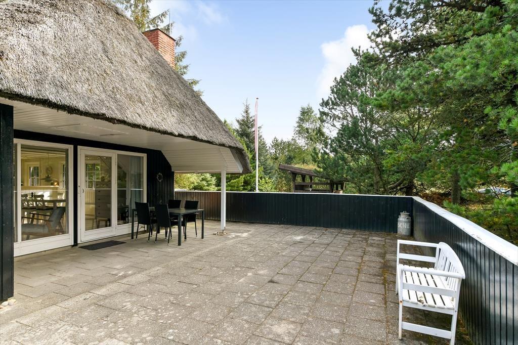 Dette charmerende sommerhus er omgivet af fyrretræer og anden naturskøn bevoksning, og med sit stråtag passer det perfekt ind i ferieidyllen. Atmosfæren er tilsvarende god inden døre – og så hjælper det selvfølgelig også, at både Oksbøl Plantage og Blåvand by ligger inden for bekvem rækkevidde.