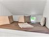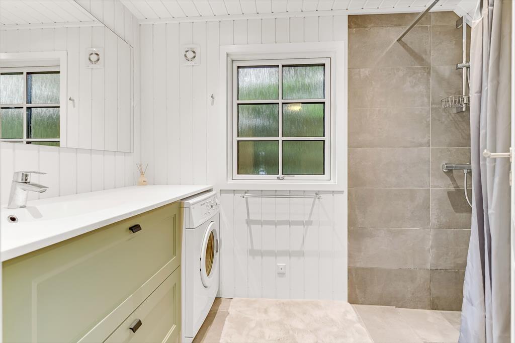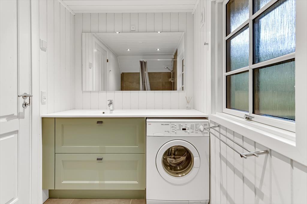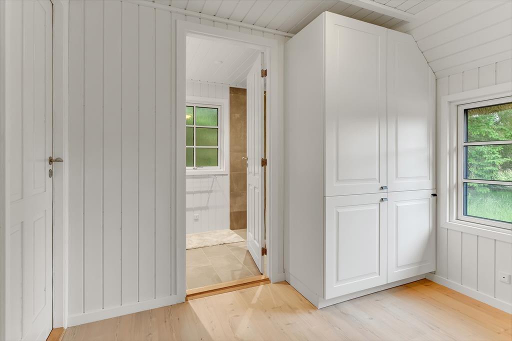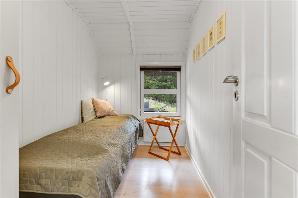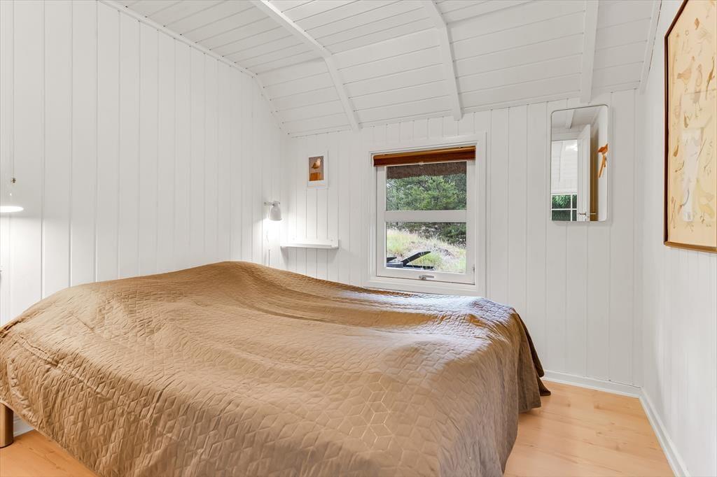 Sommerhuset er indrettet med lyse farvetoner og møblement, der har en køn og klassisk stil, og det er selvfølgelig med til at skrue op for hyggestemningen inden døre. Det er også rart, at der er en brændeovn inden døre – især på en mørk aften, hvor I vil hygge jer i stuen med strikketøj, gode bøger eller brætspil. Hvis du ikke vil være eneansvarlig for madlavningen, kan du sikkert overtale nogle af de andre til at hjælpe dig med madlavningen i det åbne køkken, og hvis du har brug for at slå mave inden desserten, kan du lægge dig et øjeblik i stuens hyggelige alkove.