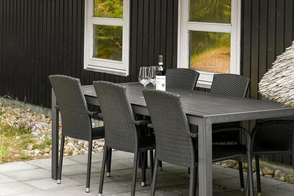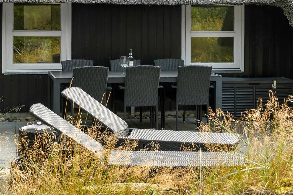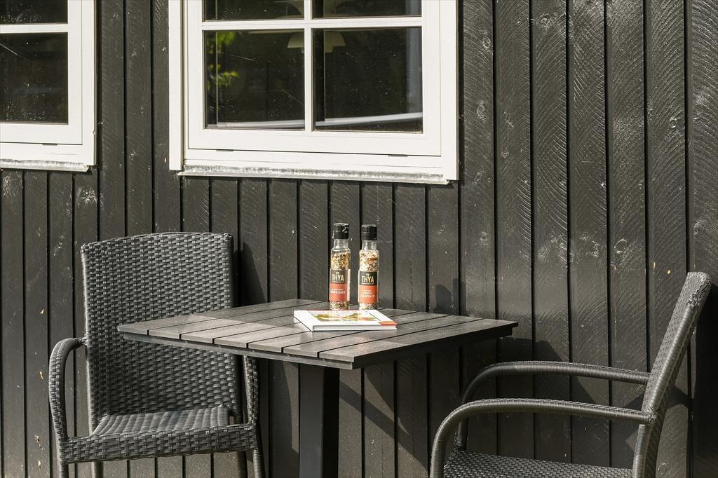 En dejlig terrasse breder sig rundt om huset, og takket være hegnet og naturgrundens træer føles det ganske ugeneret at sidde her. I forlængelse af stuen er der et overdækket areal, mens resten af opholdsarealet er åbent, og der er selvfølgelig havemøbler og liggestole til rådighed foruden en grill, hvor I kan tilberede aftensmaden. Morgenkaffen kan du passende drikke i dagens første solstråler på det østvendte terrasseareal, der ligger ud for køkkenet.